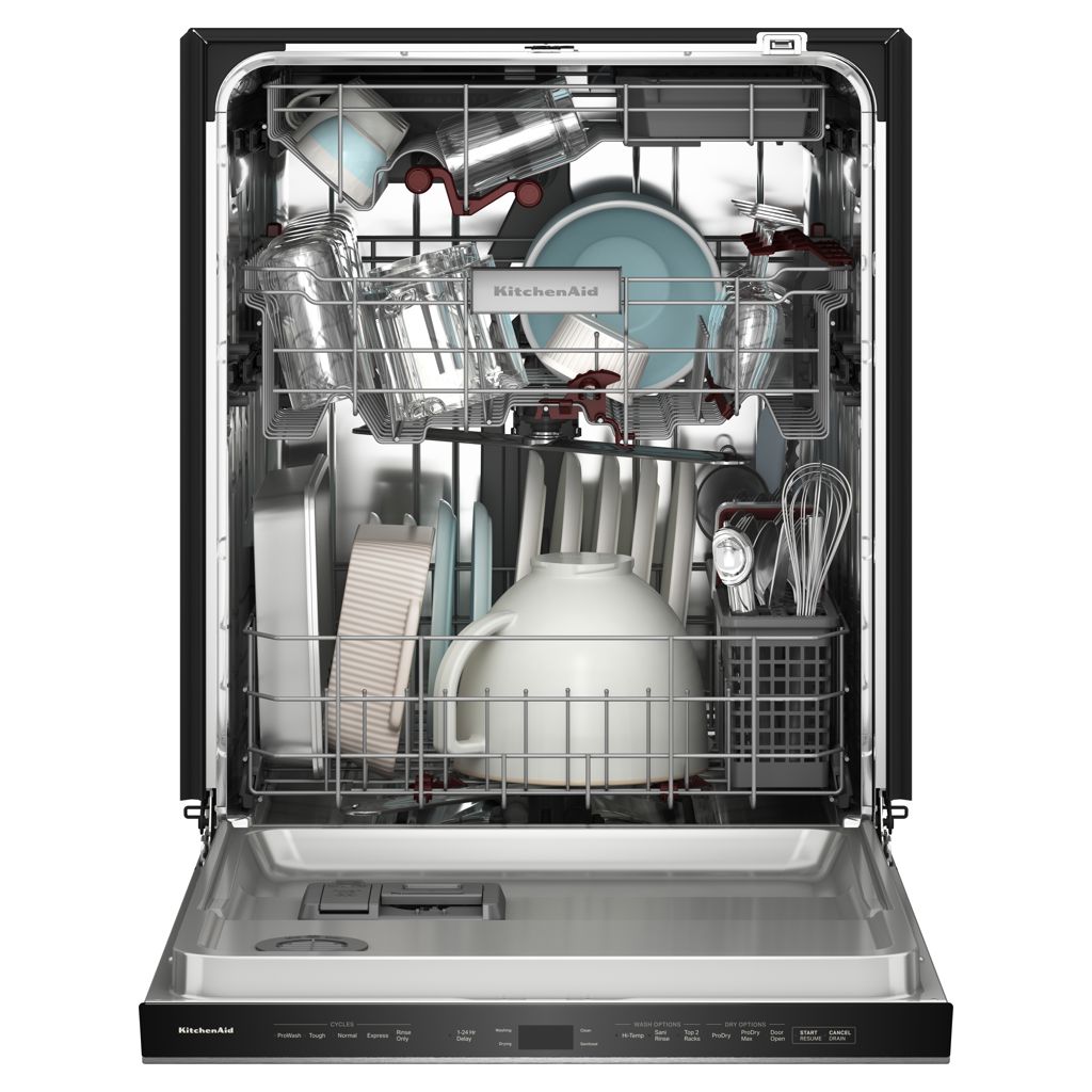 Le panier de troisième niveau avec lavage à jets peut accueillir des tasses supplémentaires et 3 bols, sans compromettre l’espace en dessous. Le panier intermédiaire réglable peut accueillir des articles hauts comme un bol de batteur sur socle. Et le panier inférieur peut accueillir des articles volumineux et surdimensionnés comme les plats à gratin et les grandes plaques de cuisson.