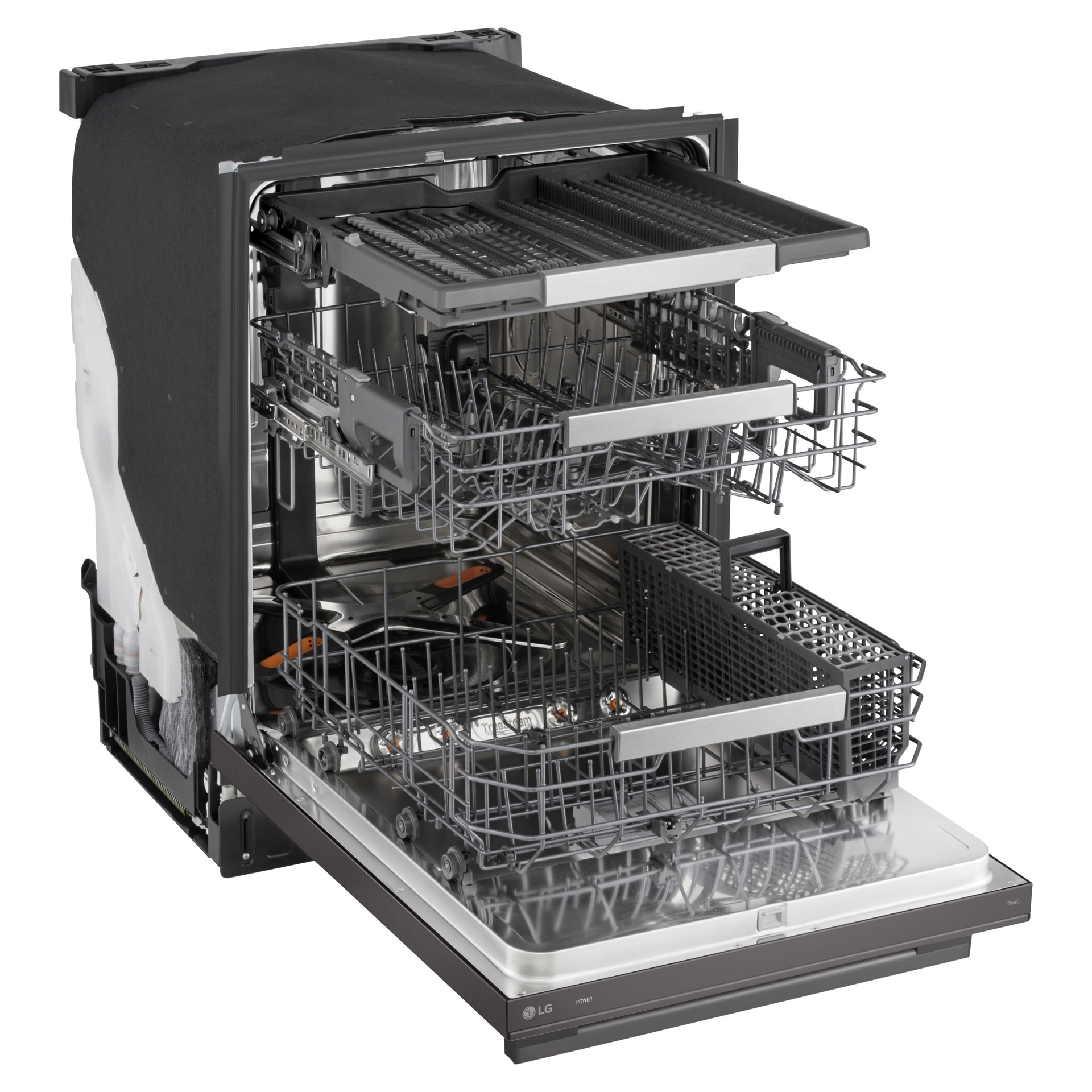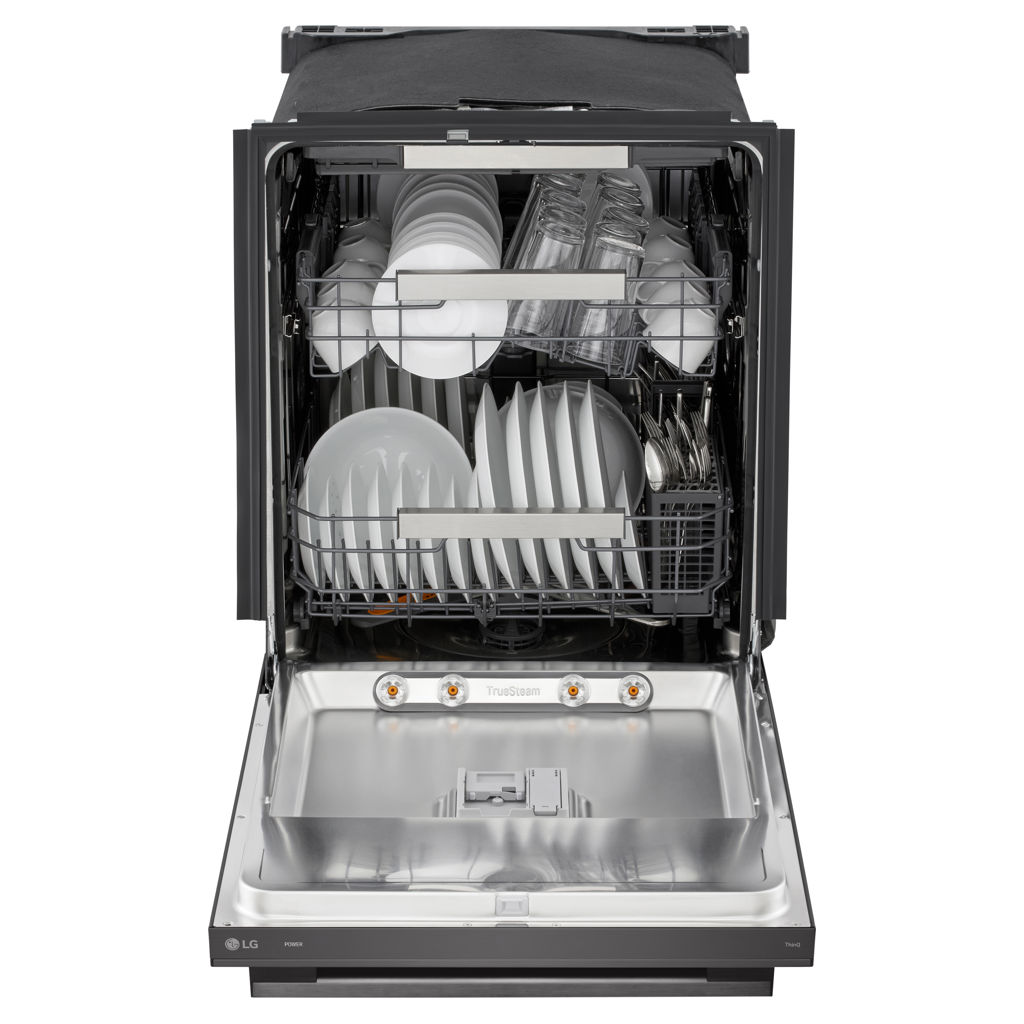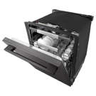 La technologie TrueSteam® utilise la puissance de la vapeur pour pénétrer les résidus alimentaires et éliminer les traces d’eau jusqu’à 60%*. Tous les lave-vaisselle de LG sont homologués par la National Sanitization Foundation (NSF) et éliminent 99,999% des bactéries présentes sur la vaisselle en atteignant une température de rinçage final supérieure à 150°F lorsqu’ils fonctionnent avec le cycle de vapeur**.