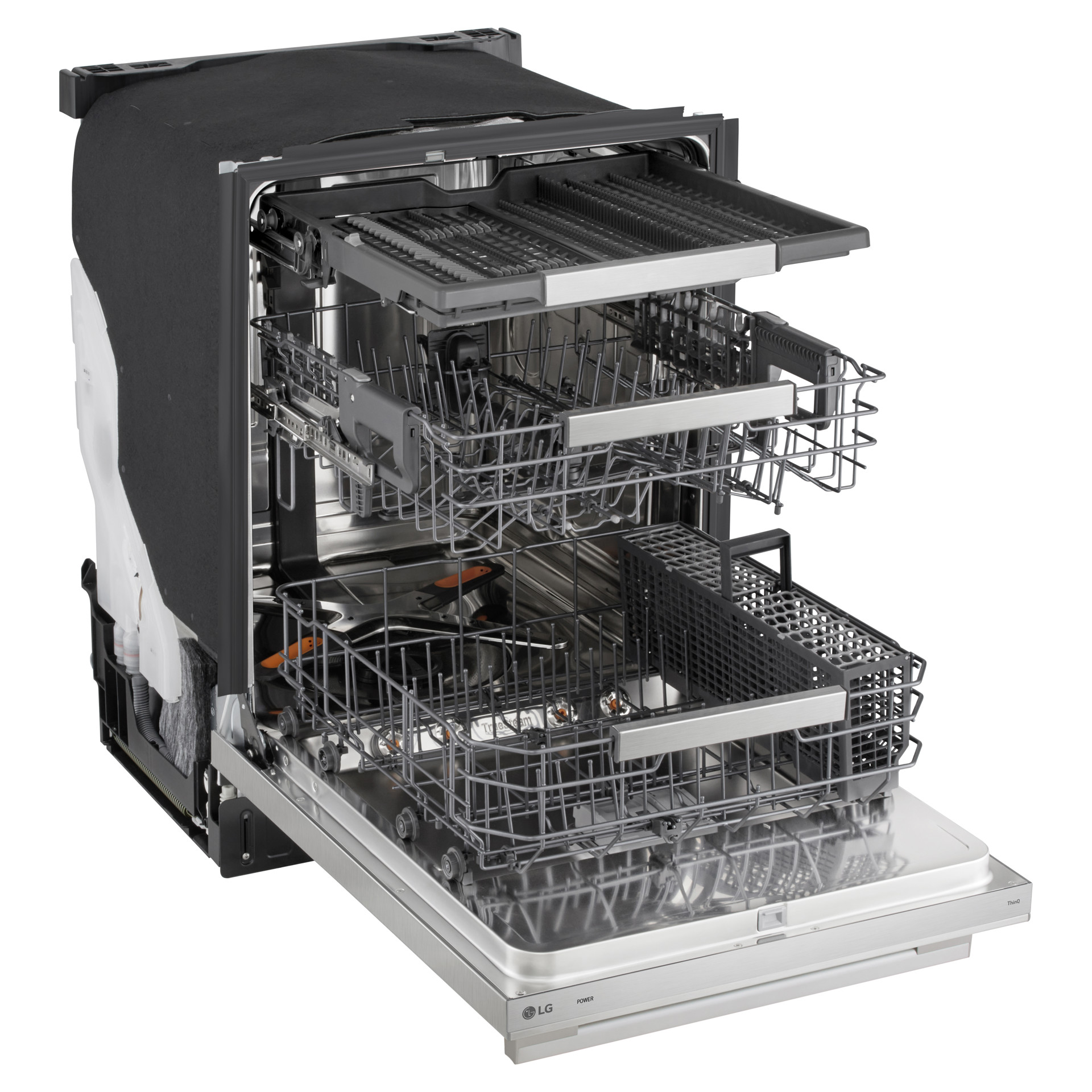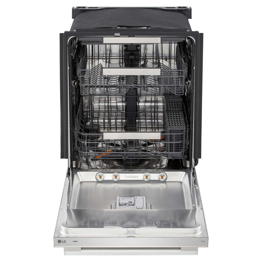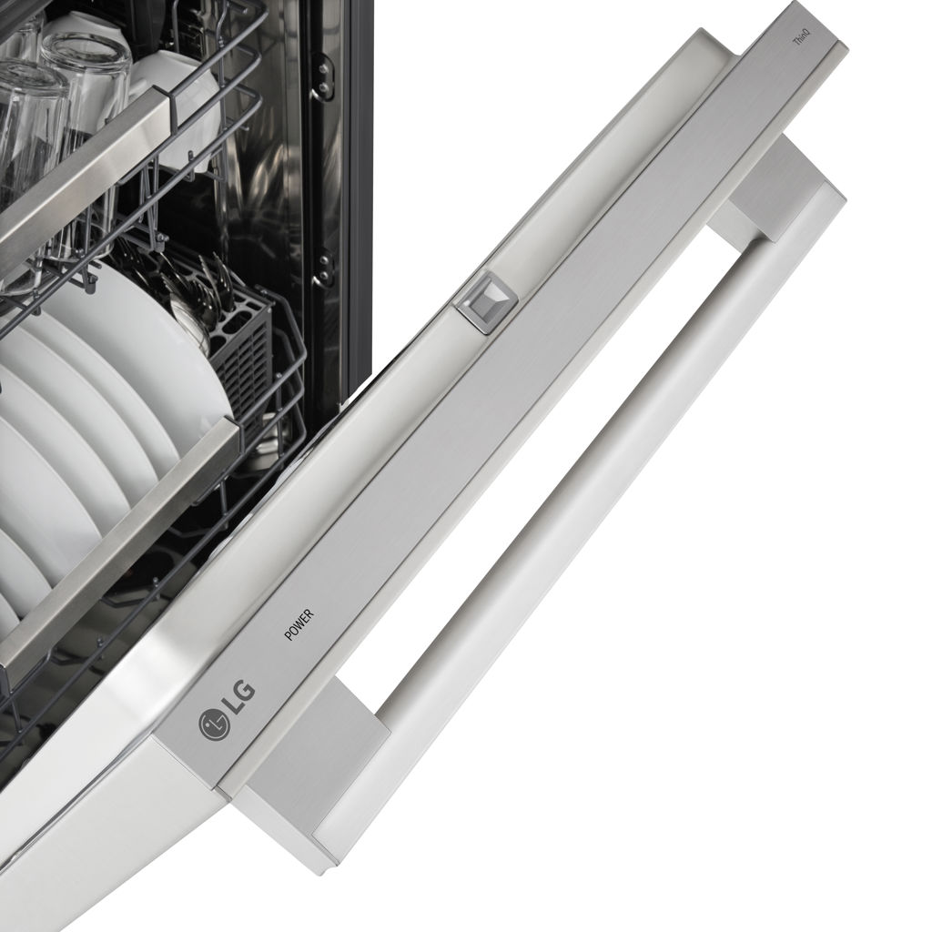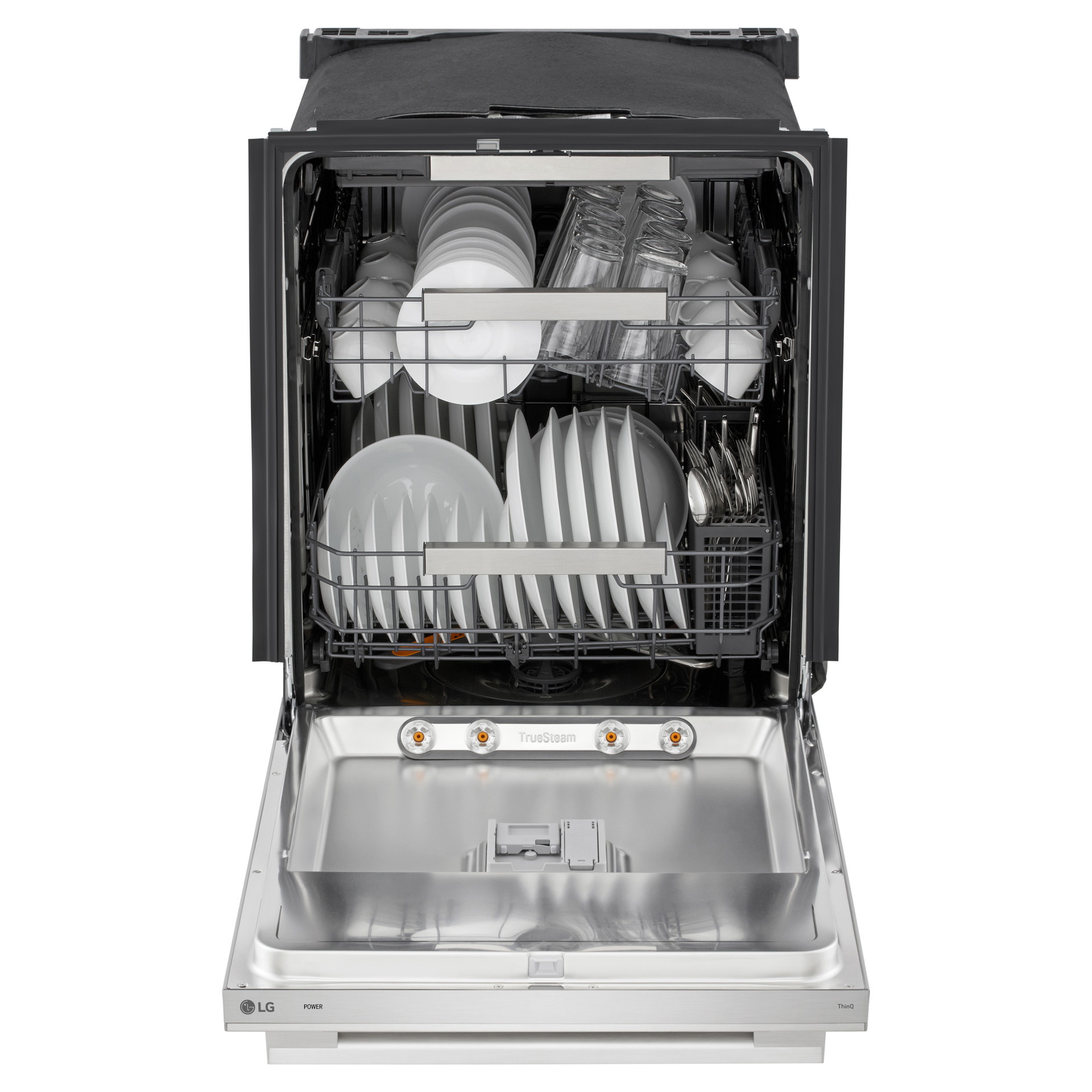 La technologie TrueSteam® utilise la puissance de la vapeur pour pénétrer les résidus alimentaires et éliminer les traces d’eau jusqu’à 60%*. Tous les lave-vaisselle de LG sont homologués par la National Sanitization Foundation (NSF) et éliminent 99,999% des bactéries présentes sur la vaisselle en atteignant une température de rinçage final supérieure à 150°F lorsqu’ils fonctionnent avec le cycle de vapeur**.