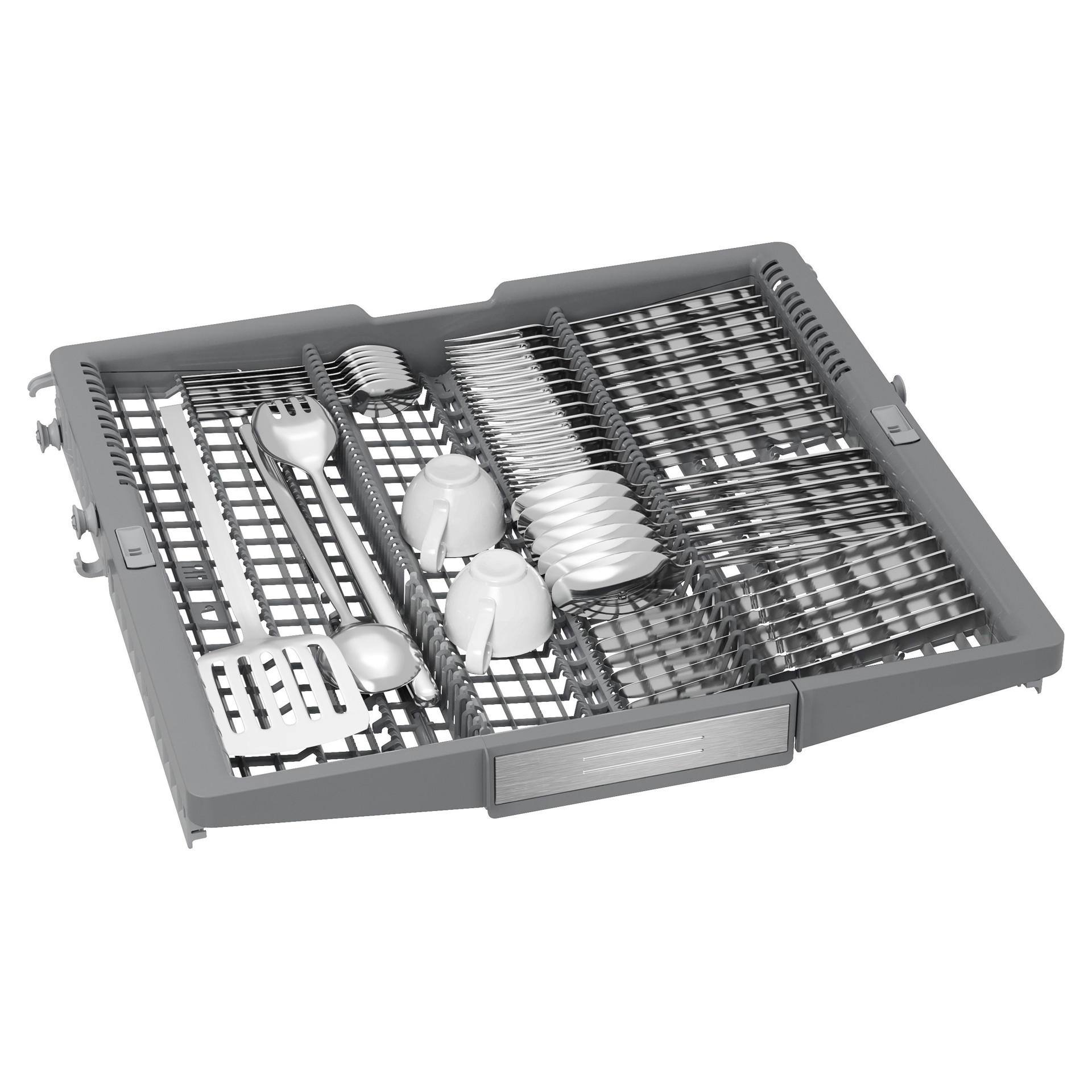 Le 3e panier flexible est doté d'ailes extensibles qui s'abaissent facilement pour accueillir davantage d'articles plus profonds. Les dents réglables vous permettent de personnaliser l'espace de chargement du casier pour accueillir les ustensiles encombrants ou difficiles à manipuler.