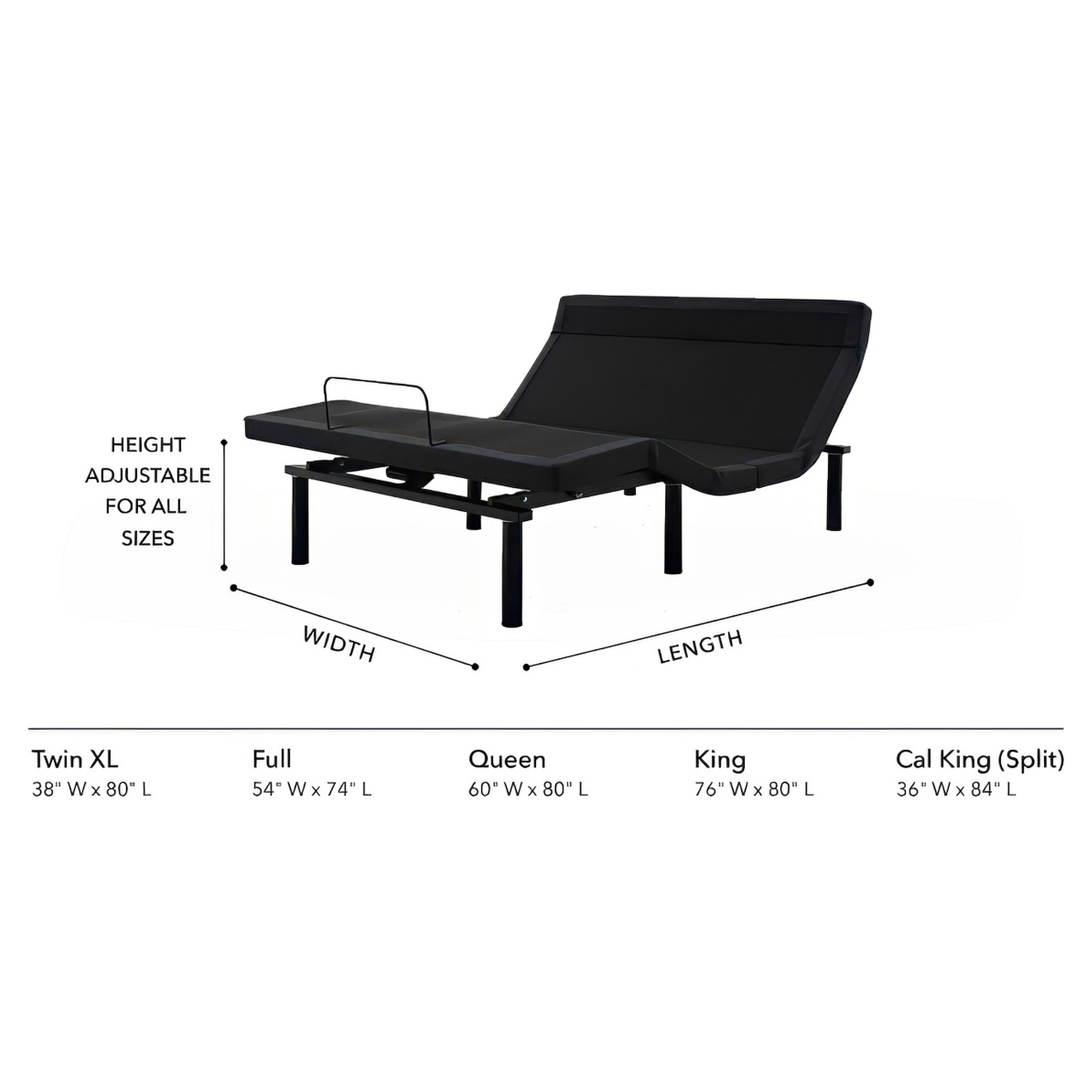 • Pattes ajustables de 4po, 8po et 12po pour s'adapter facilement à la plupart des lits.