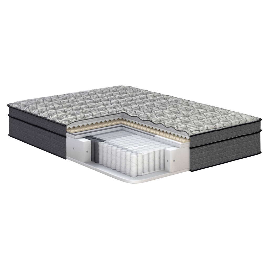 • Euro-top combiné de mousse confort 0,5po à base de latex, mousse mémoire 0,5po infusée de gel rafraîchissant et mousse de soutien 1po