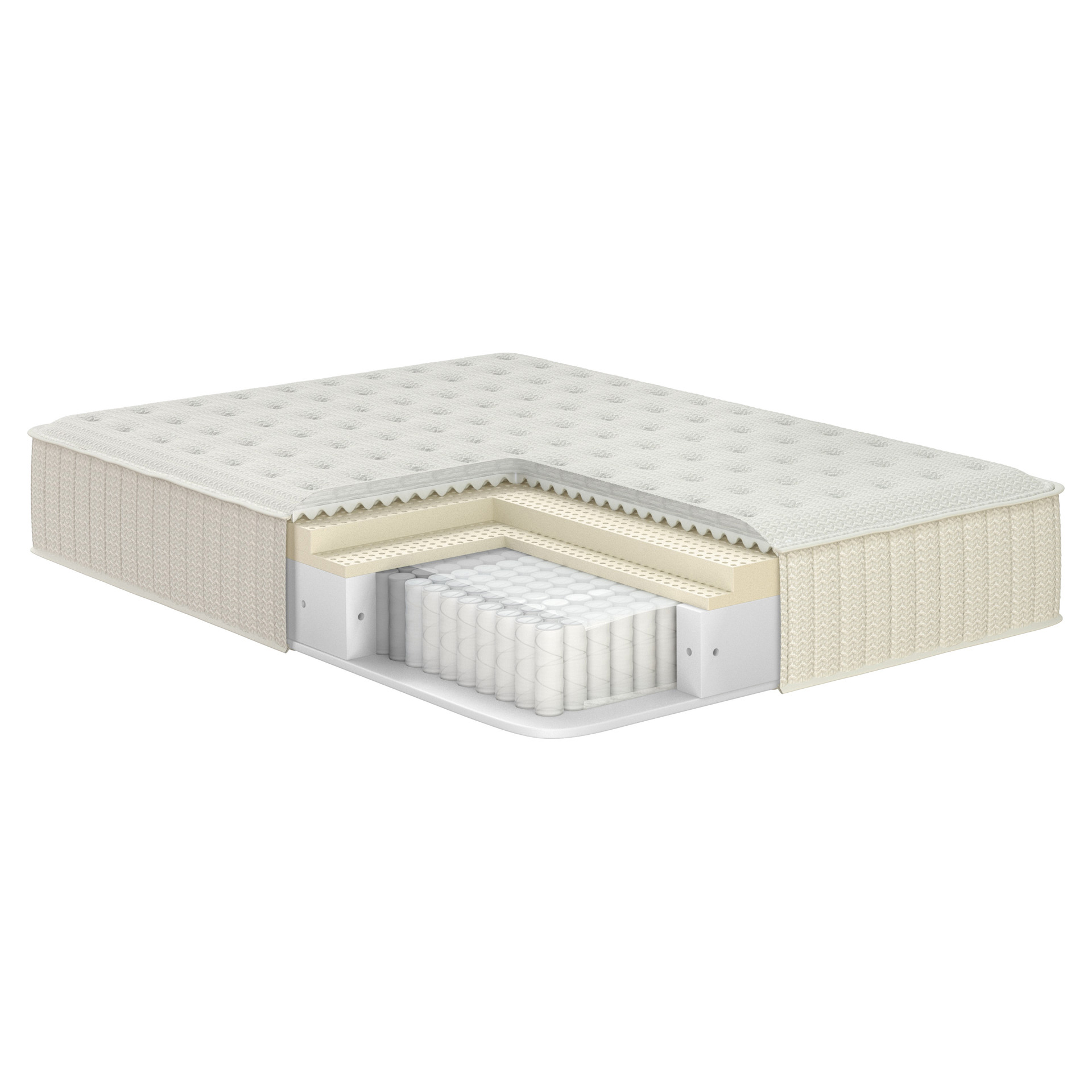 Matelassé de laine de mouton et latex naturel : Cette combinaison unique offre un confort moelleux tout en régulant naturellement la température de votre corps. La laine respire, le latex épouse vos formes.