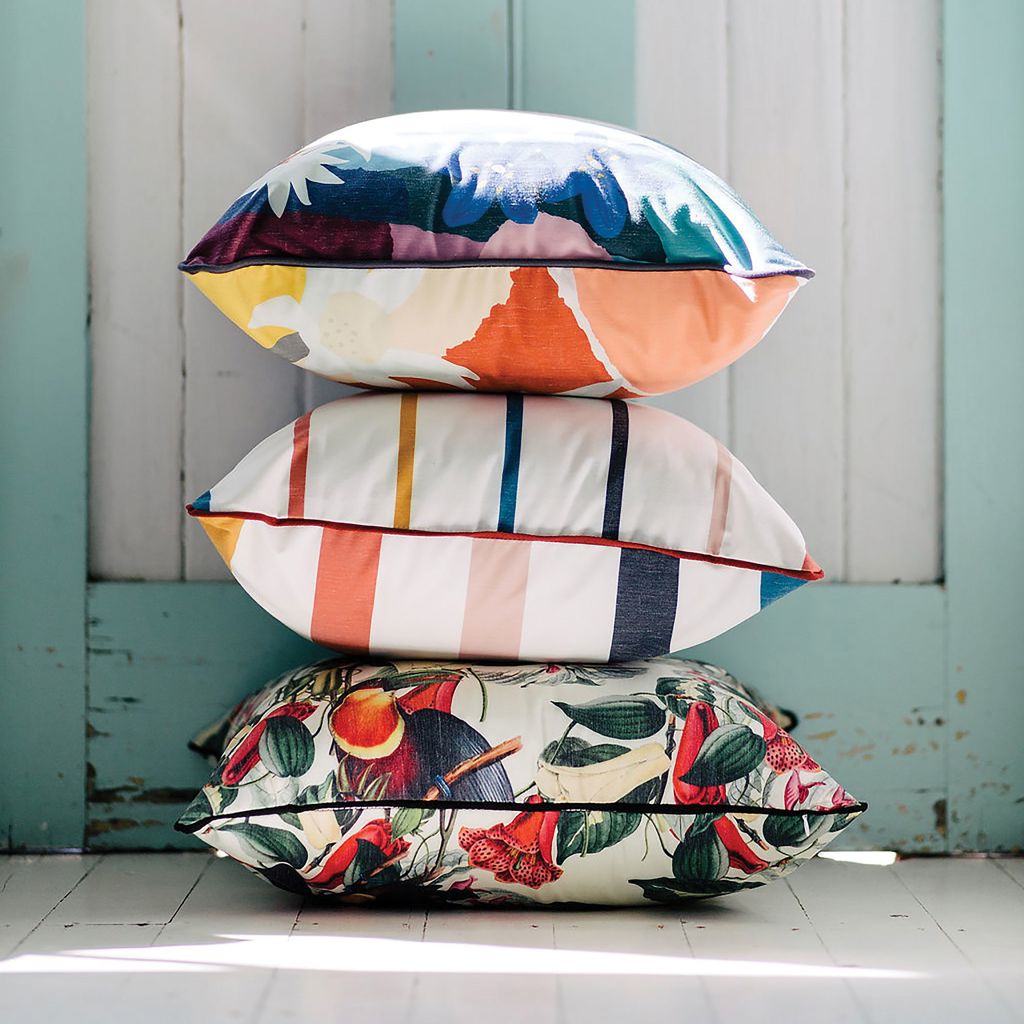 Embellissez votre espace extérieur avec ces magnifiques coussins d'intérieur/extérieur de Basil Bangs.