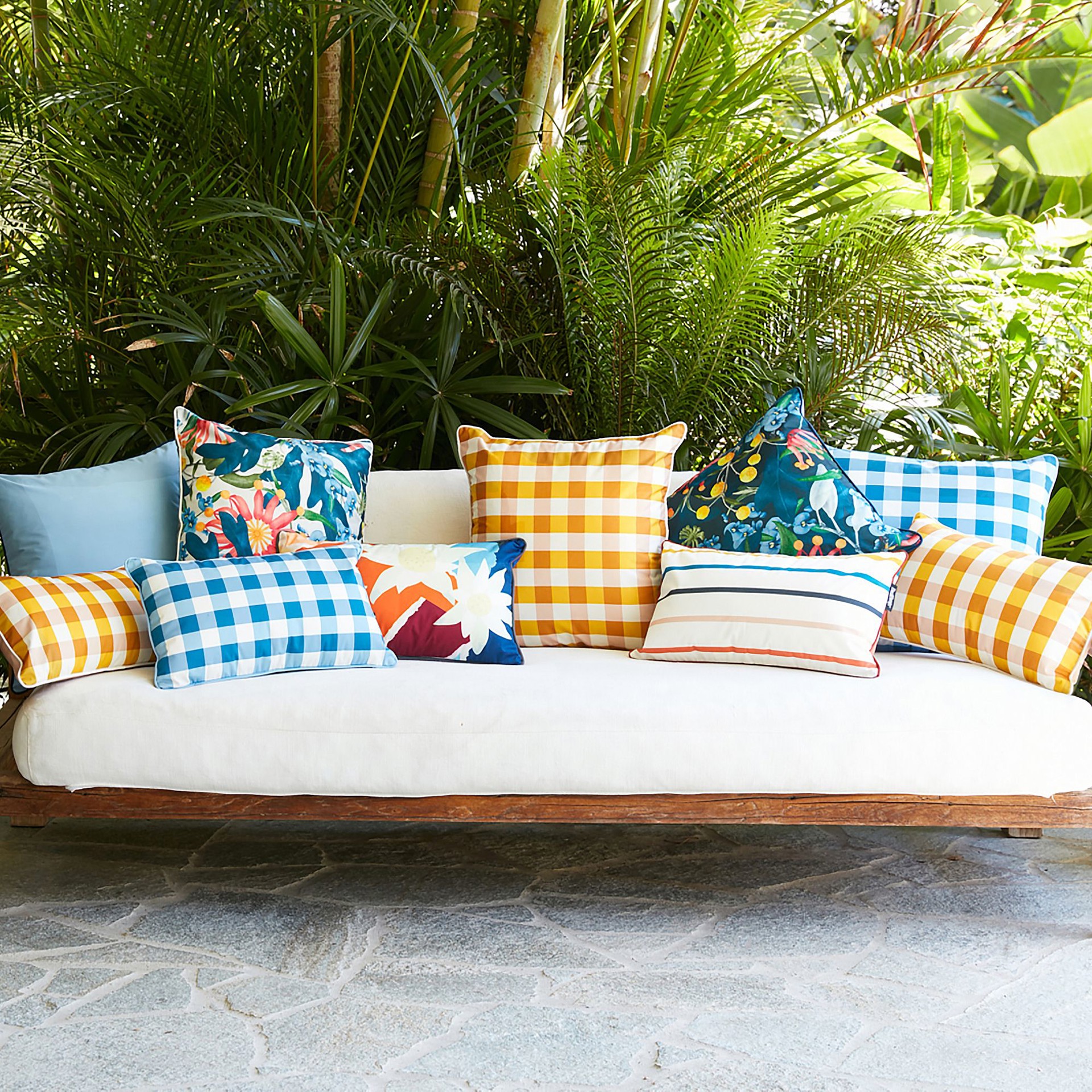 Embellissez votre espace extérieur avec ces magnifiques coussins d'intérieur/extérieur de Basil Bangs.