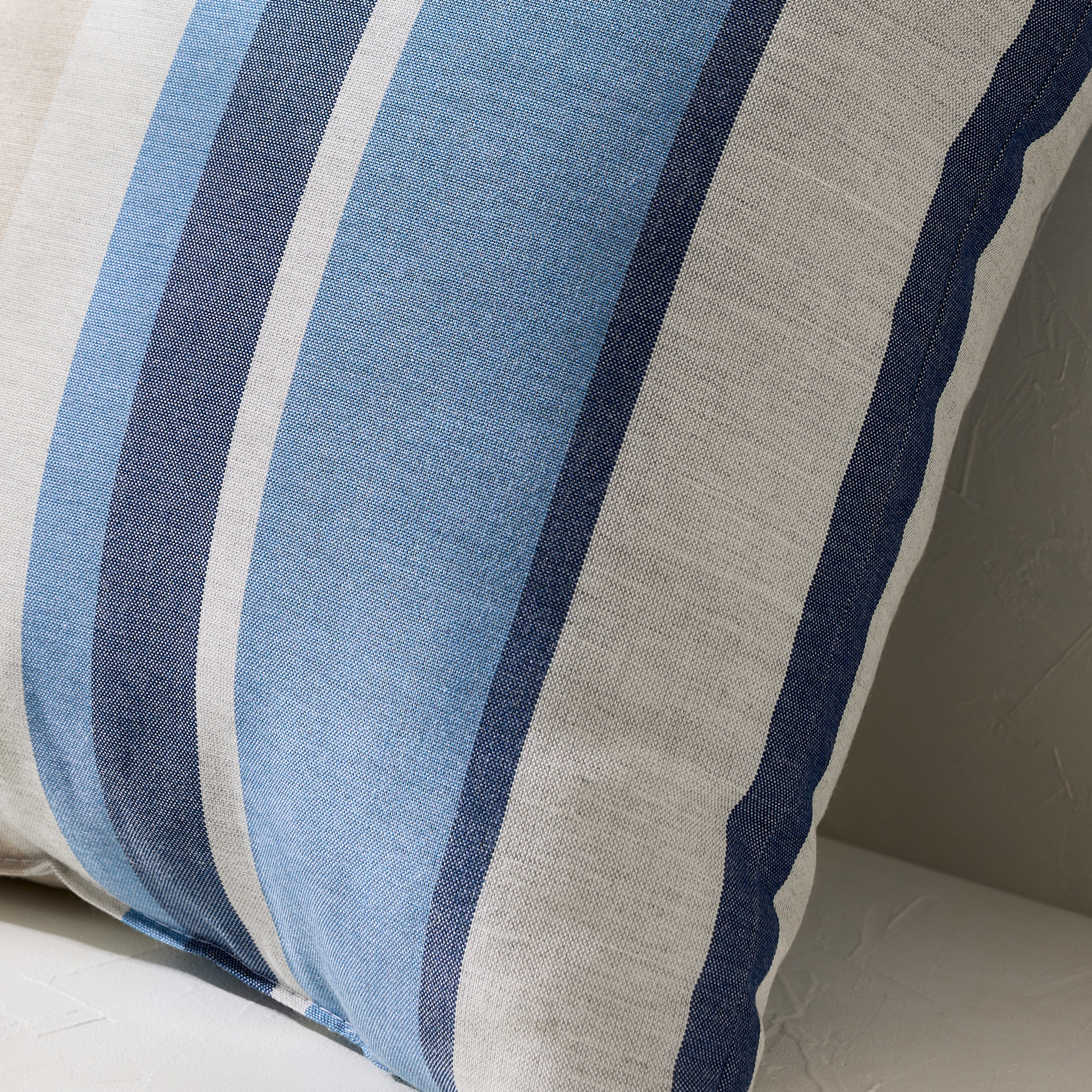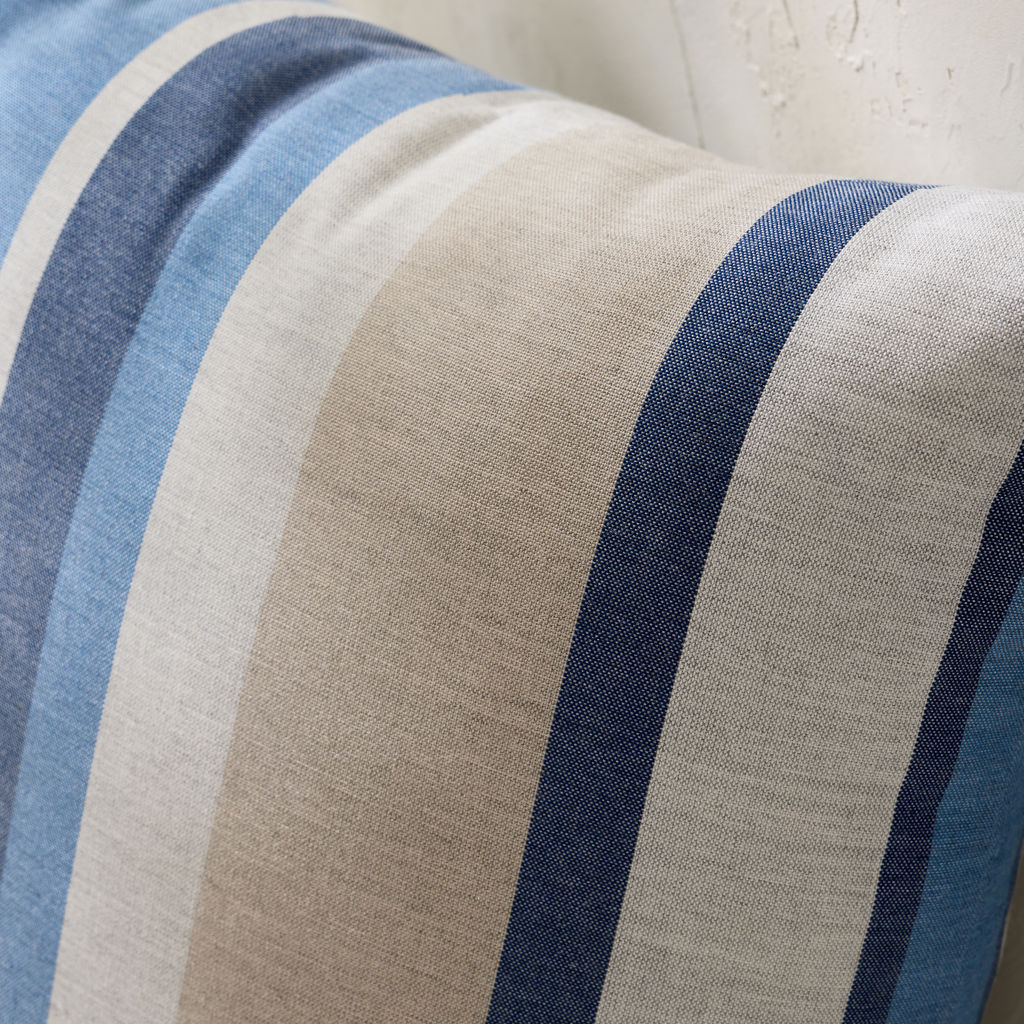 Avec ses rayures dans les teintes de beiges et bleu, son tissu luxueux et de qualité exceptionnelle, le coussin Rayures bord de mer apporte une touche classique et intemporelle à votre espace extérieur.