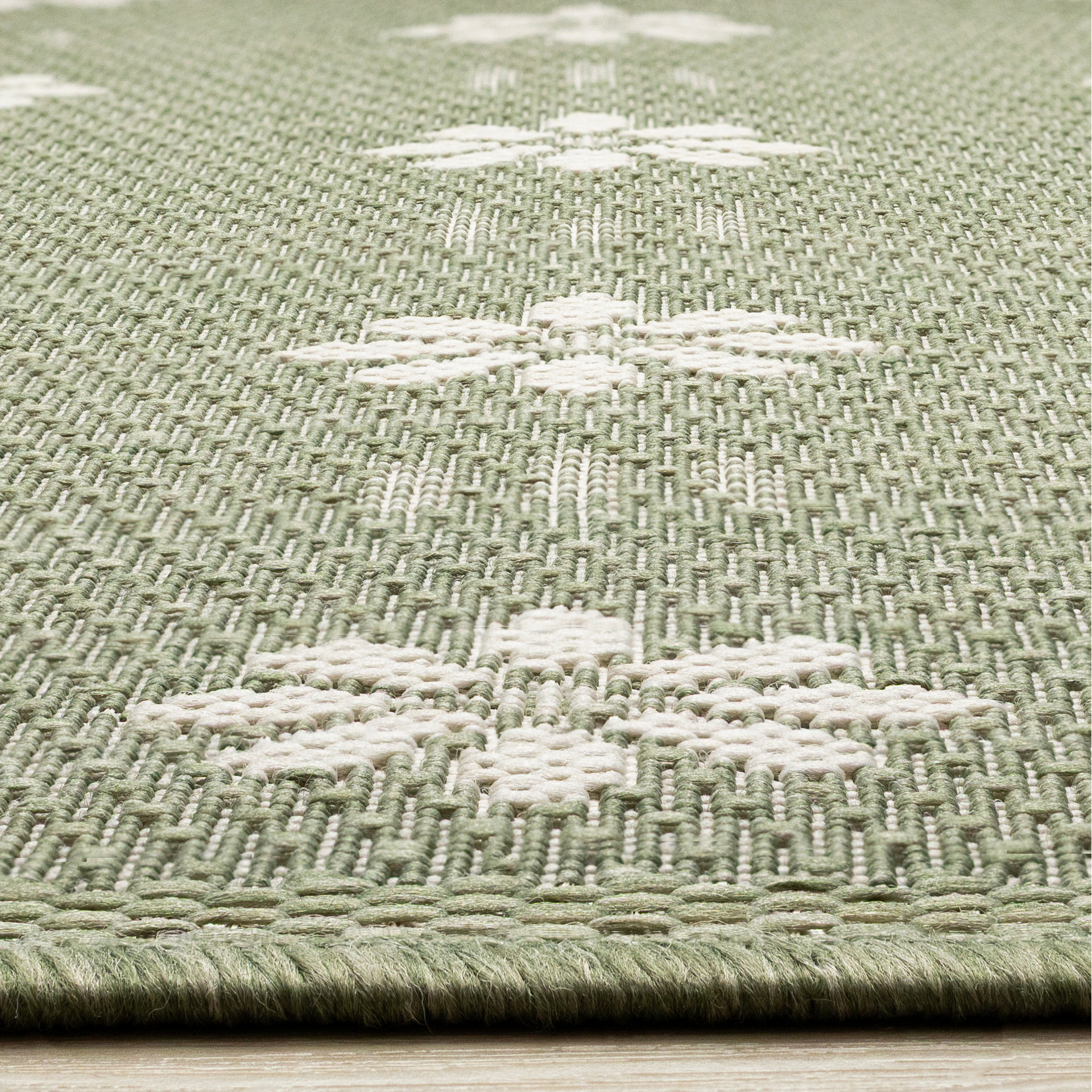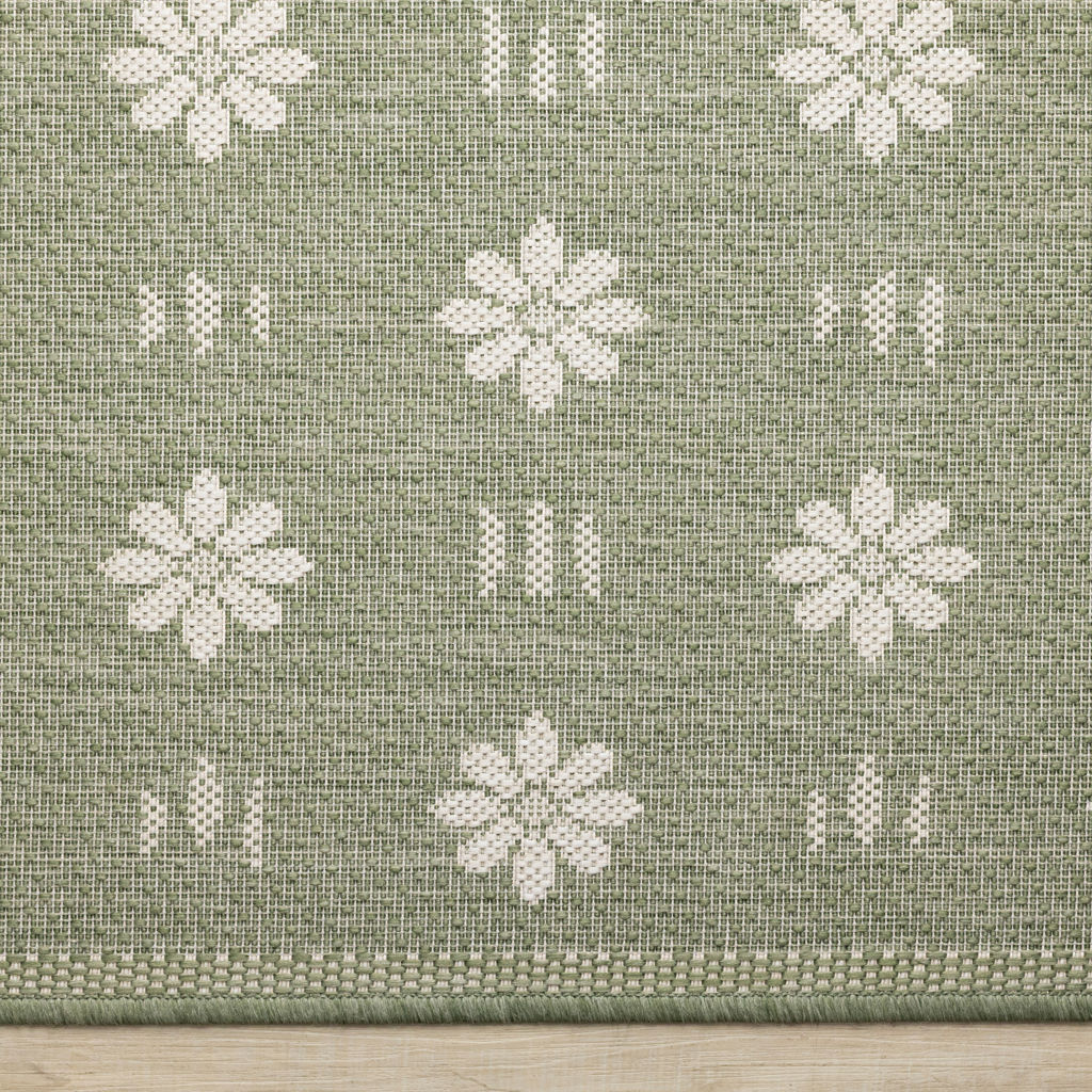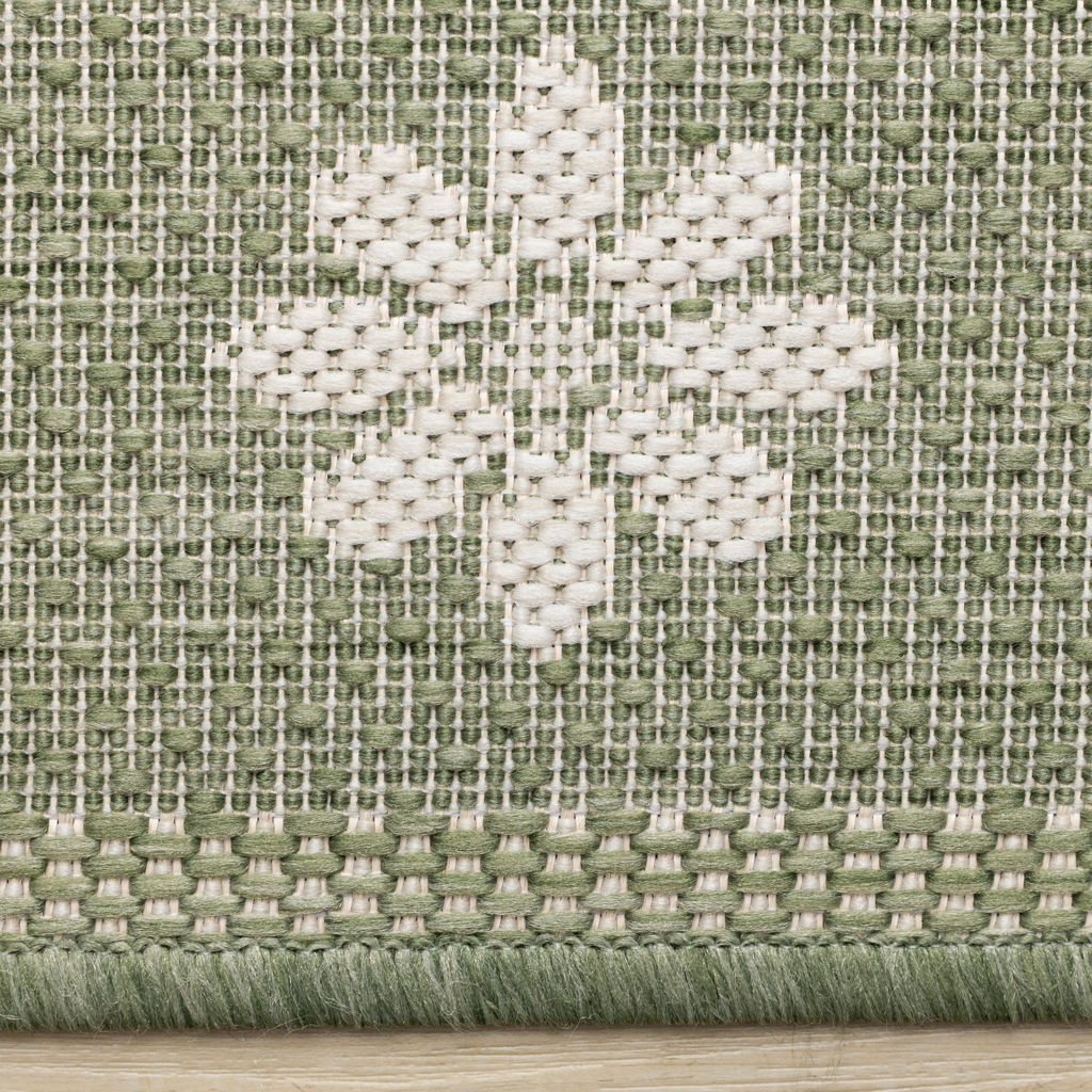 Fabriquée en polypropylène, les couleurs neutres vert et crème font de cette collection une combinaison attrayante avec la plupart des éléments de décor et des meubles.