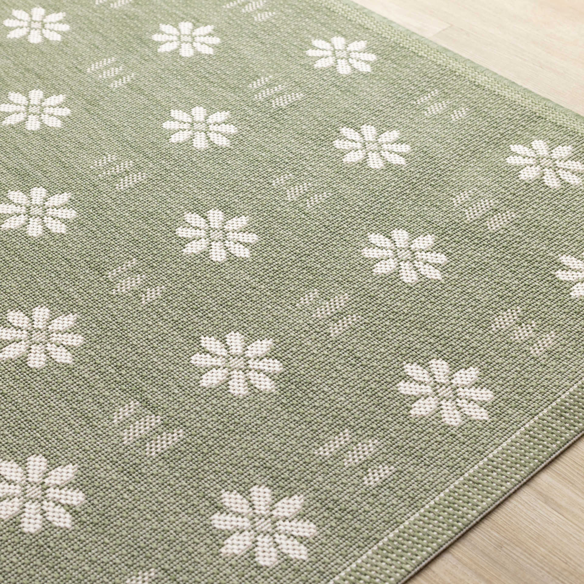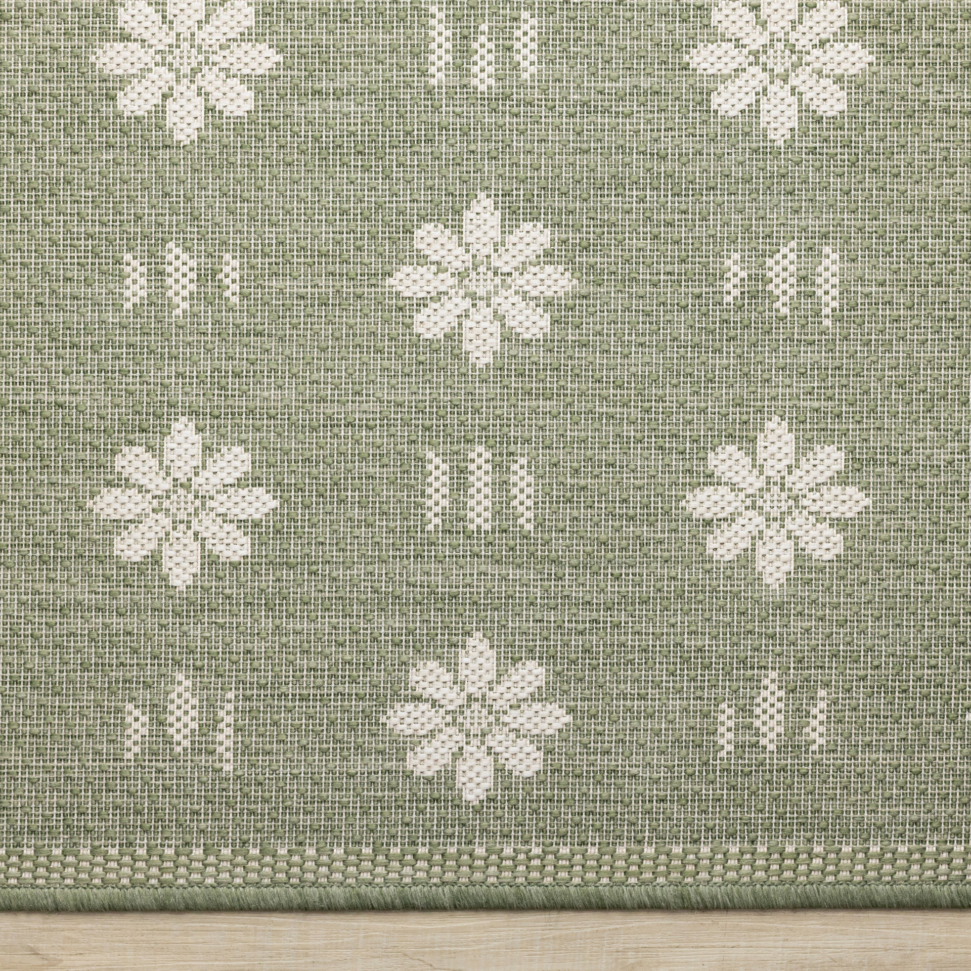 Fabriquée en polypropylène, les couleurs neutres vert et crème font de cette collection une combinaison attrayante avec la plupart des éléments de décor et des meubles.