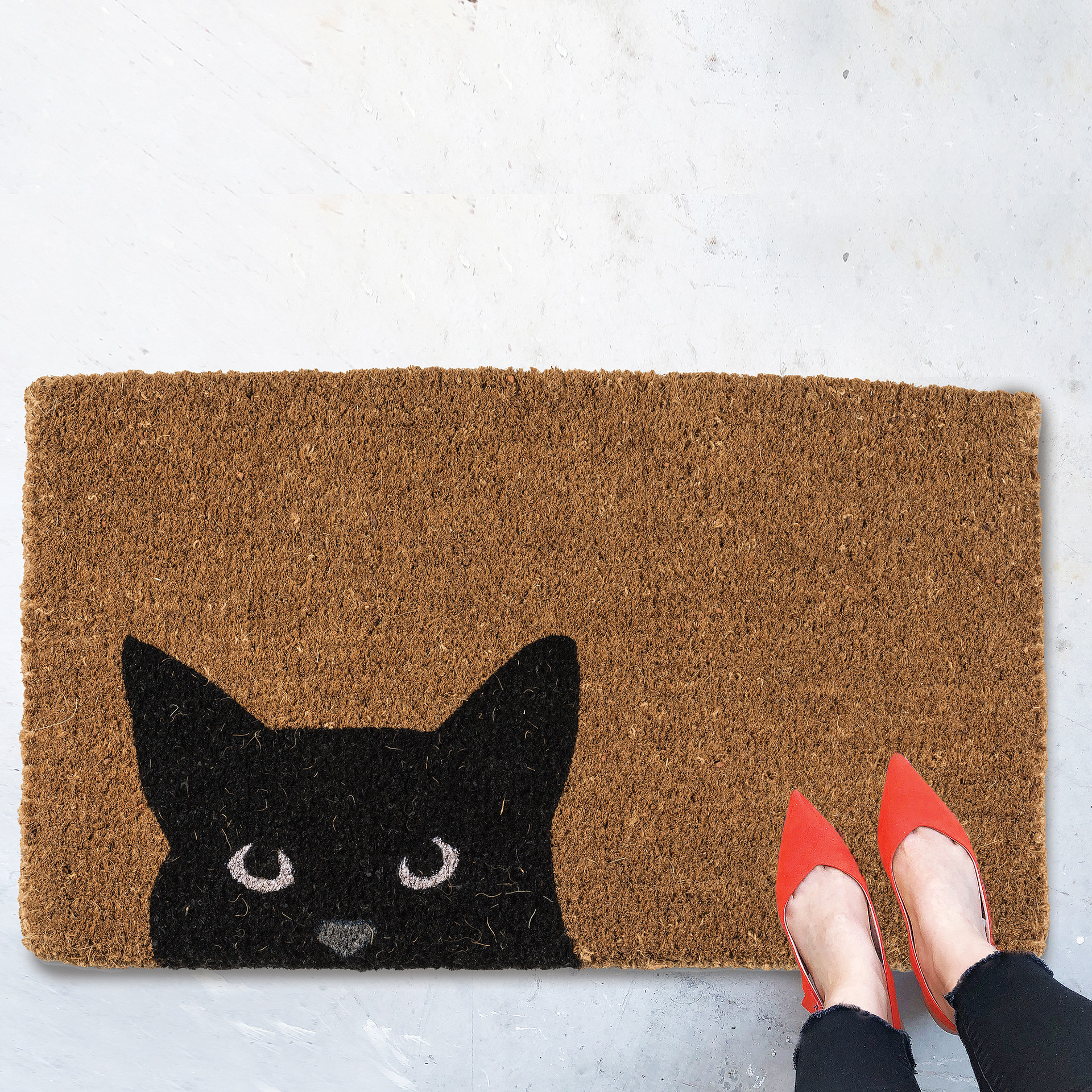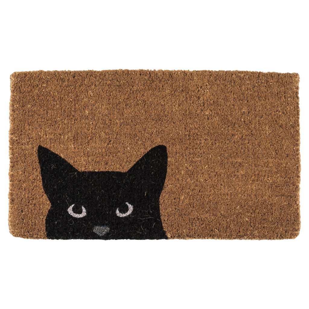 Parfait comme cadeau de pendaison de crémaillère pour tout amateur de chats, il est fabriqué en fibre de coco durable et présente un chat noir qui jette un regard espiègle vers le bas.