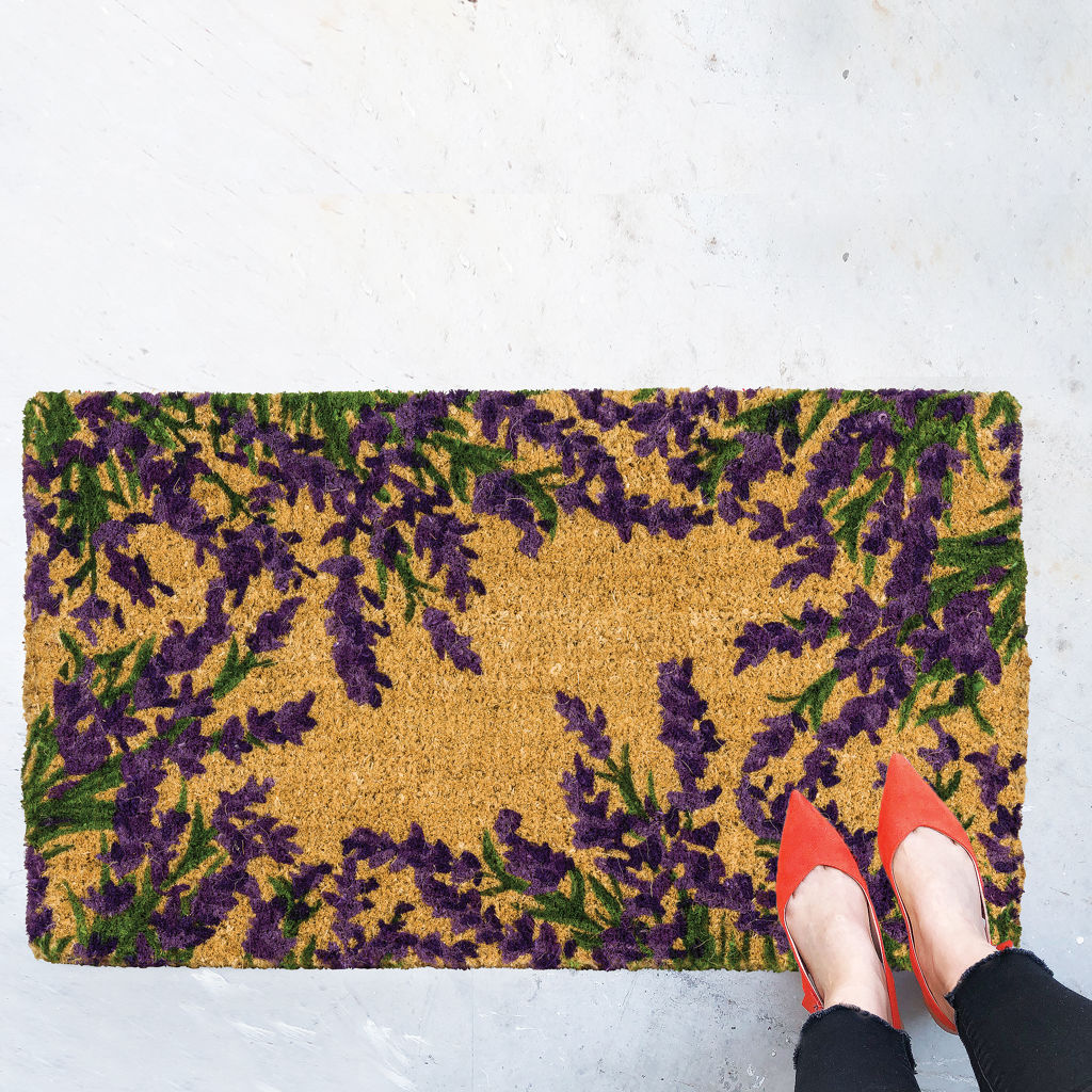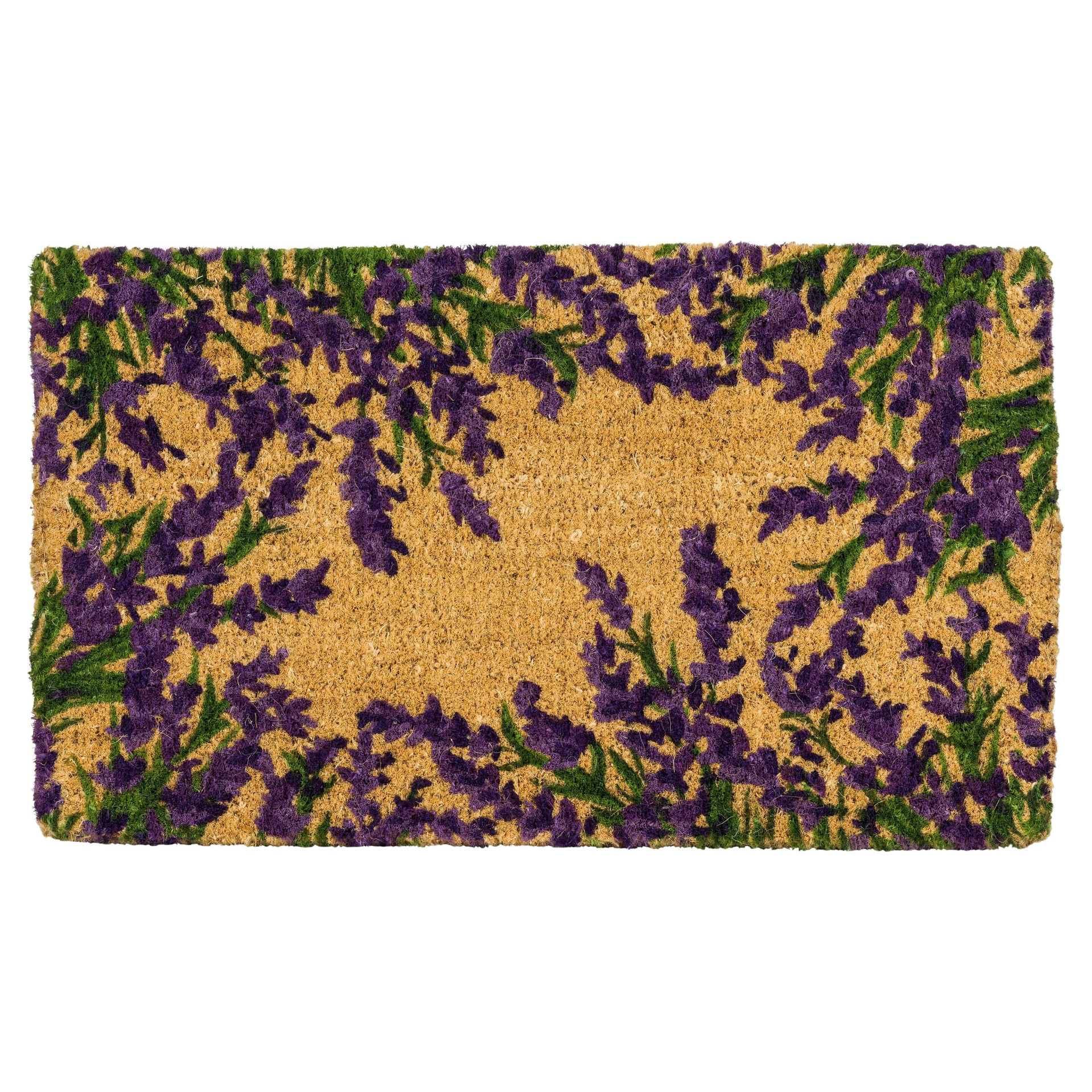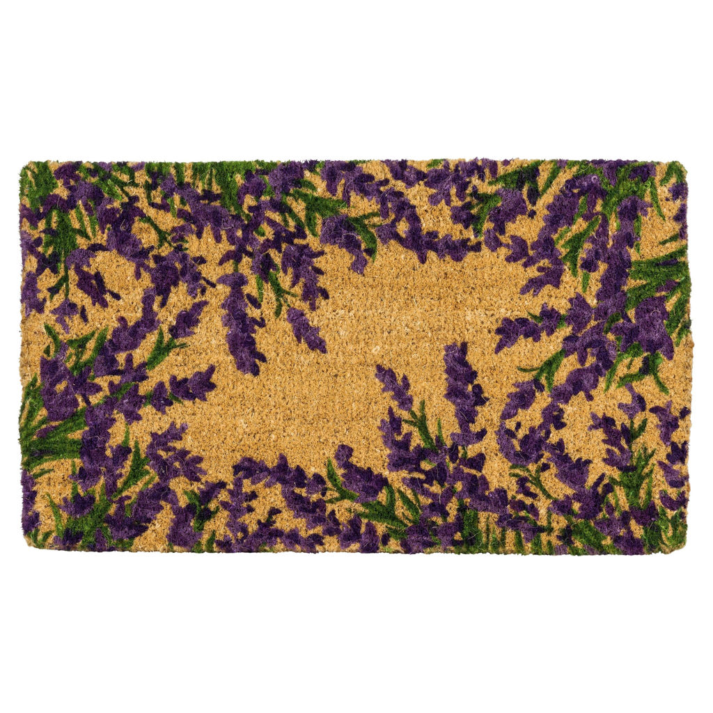 Fabriqué en fibre de coco durable pour résister aux conditions météorologiques les plus difficiles, ce paillasson de couleur naturelle est accentué d'une bordure vibrante en fleur de lavande qui ne manquera pas d'égayer n'importe quelle porte.