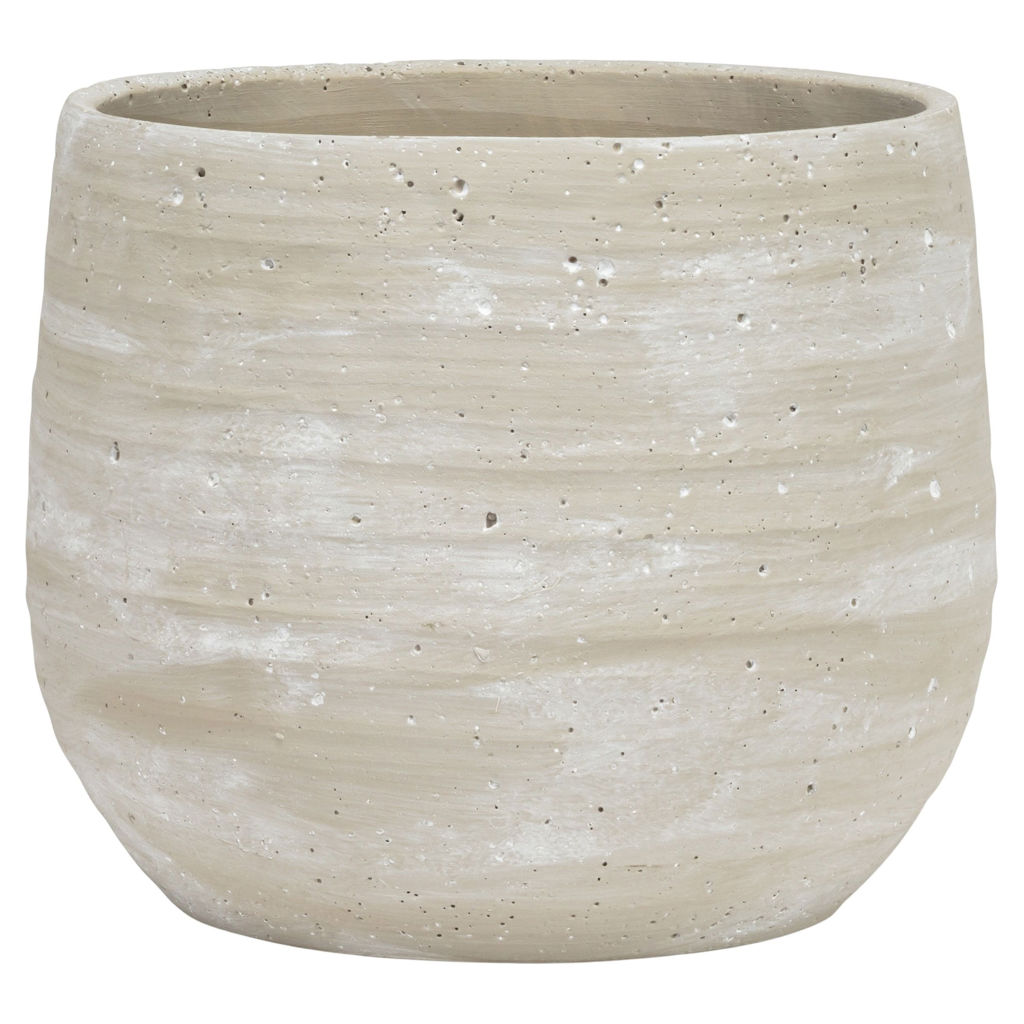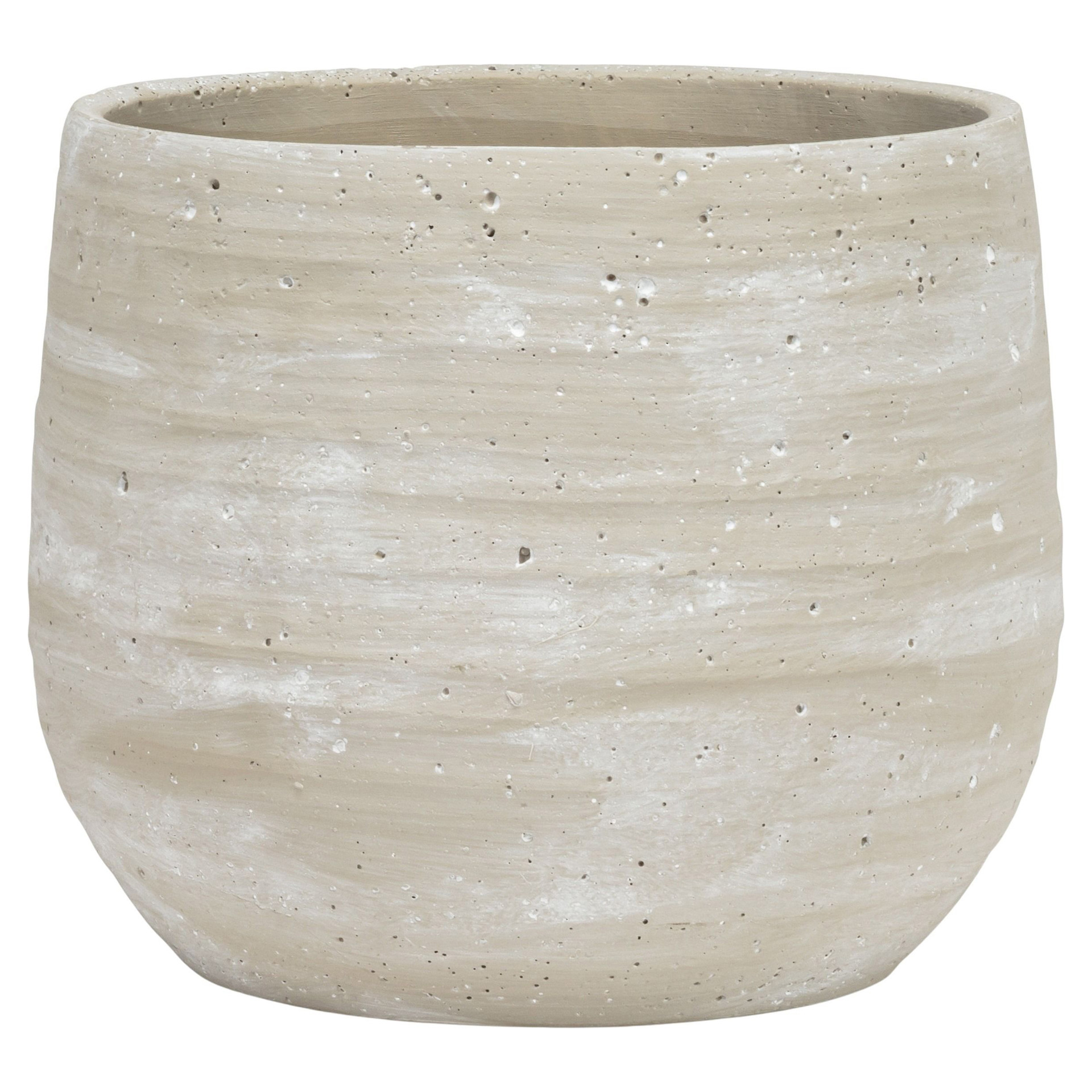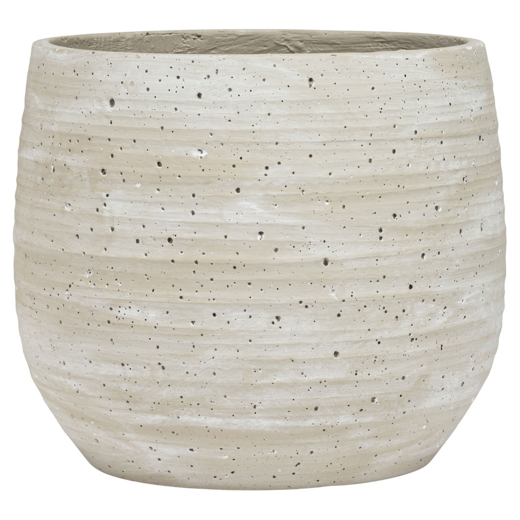 Cet ensemble de jardinières extra-larges à texture nervurée est fabriqué à partir d'un mélange durable de ciment et de fibre de verre et présente un motif nervuré ondulé qui apporte une touche moderne et tactile à n'importe quel espace.
