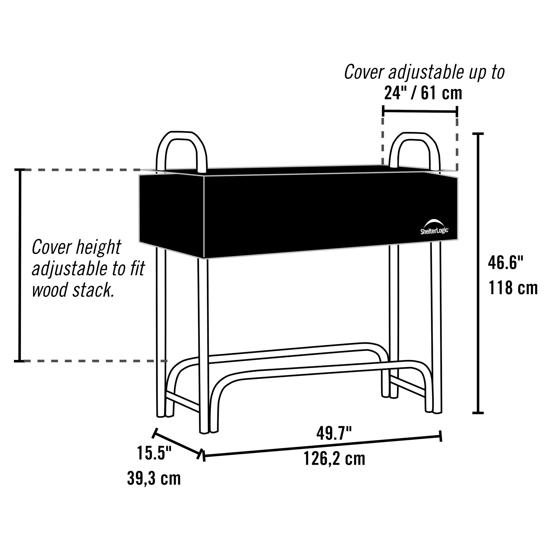 La housse en polyester incluse peut être ajustée pour s'adapter à des longueurs allant jusqu'à 24 po de bois fendu et se déplace de haut en bas du support à bois de chauffage avec le niveau du bois, permettant un accès rapide et facile.