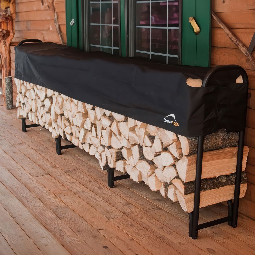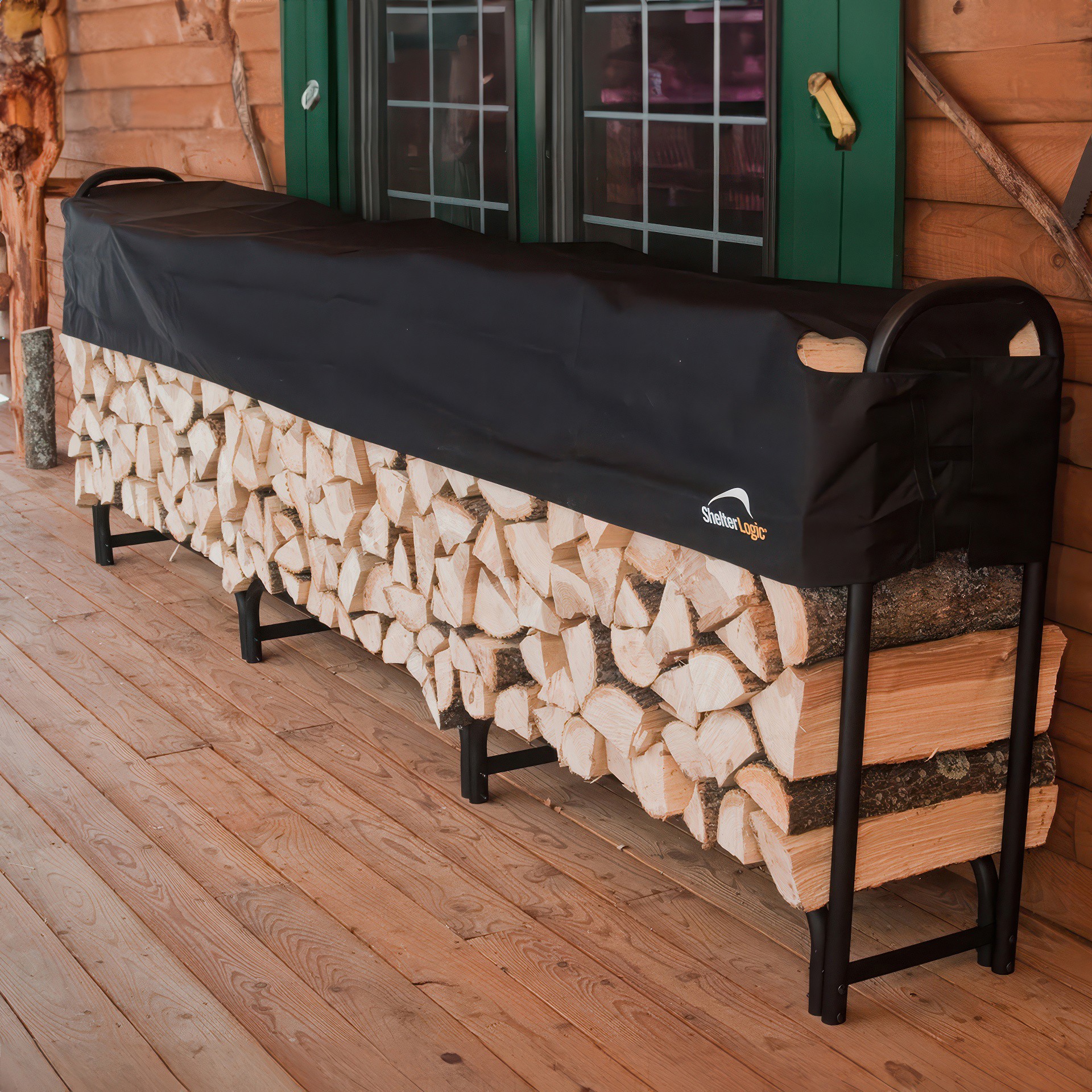 La housse en polyester incluse peut être ajustée pour s'adapter à des longueurs allant jusqu'à 24 po de bois fendu et se déplace de haut en bas du support à bois de chauffage avec le niveau du bois, permettant un accès rapide et facile.