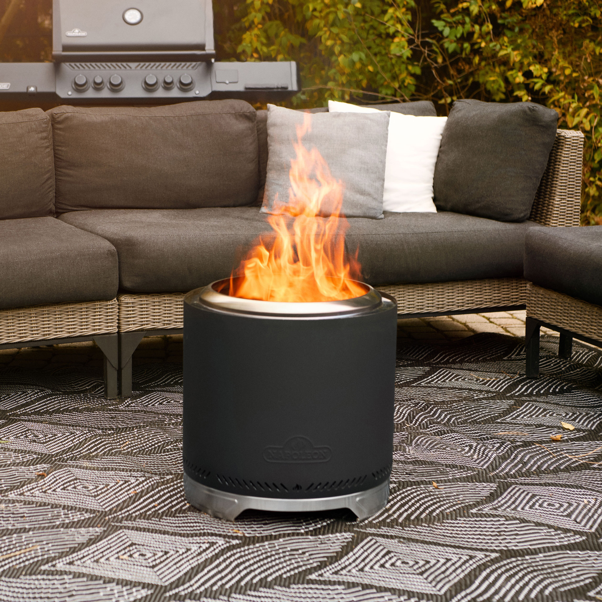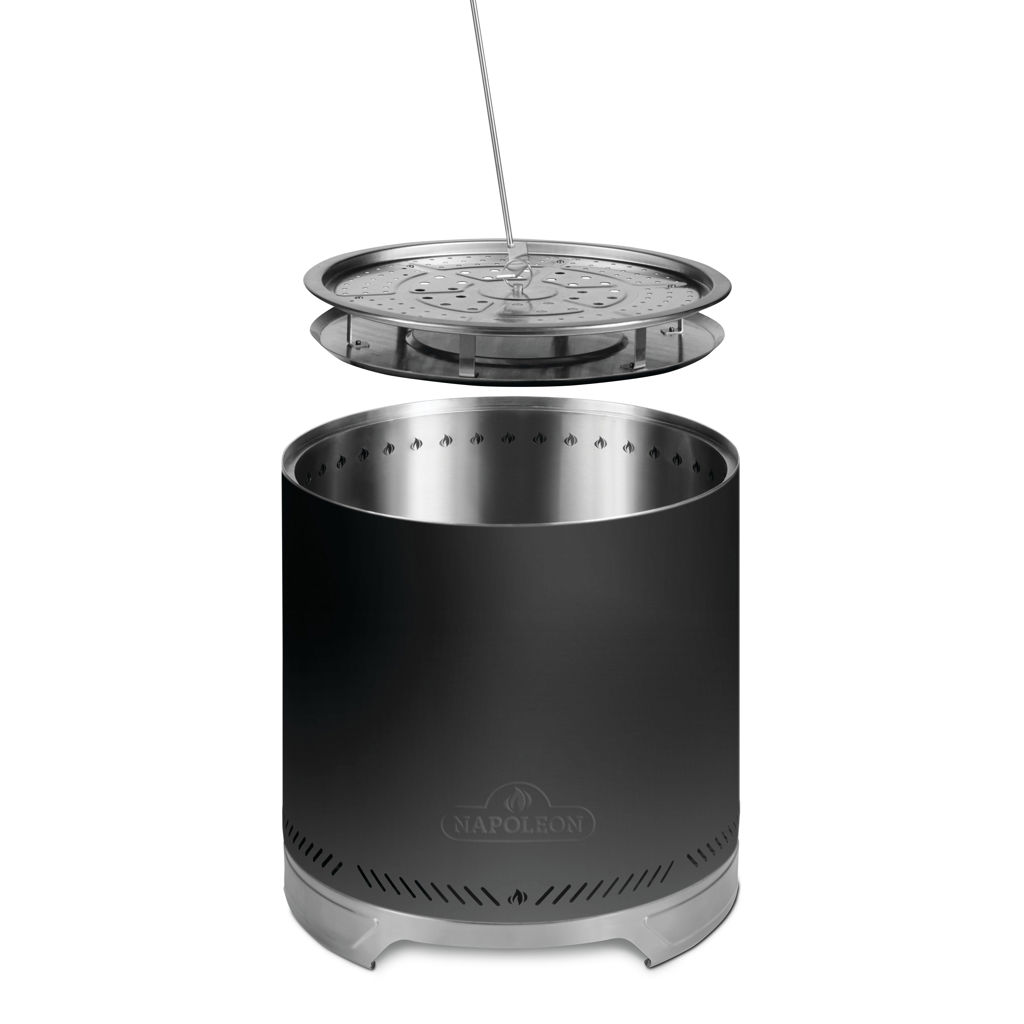 Doté du même fini noir mat élégant que nos grils Napoleon, vous rehausserez votre cour avec un style, une qualité et une fonctionnalité homogènes. Le foyer sans fumée Timberwolf® offre qualité, facilité d'utilisation et haute performance, afin que vos moments mémorables en plein air soient parfaits.
