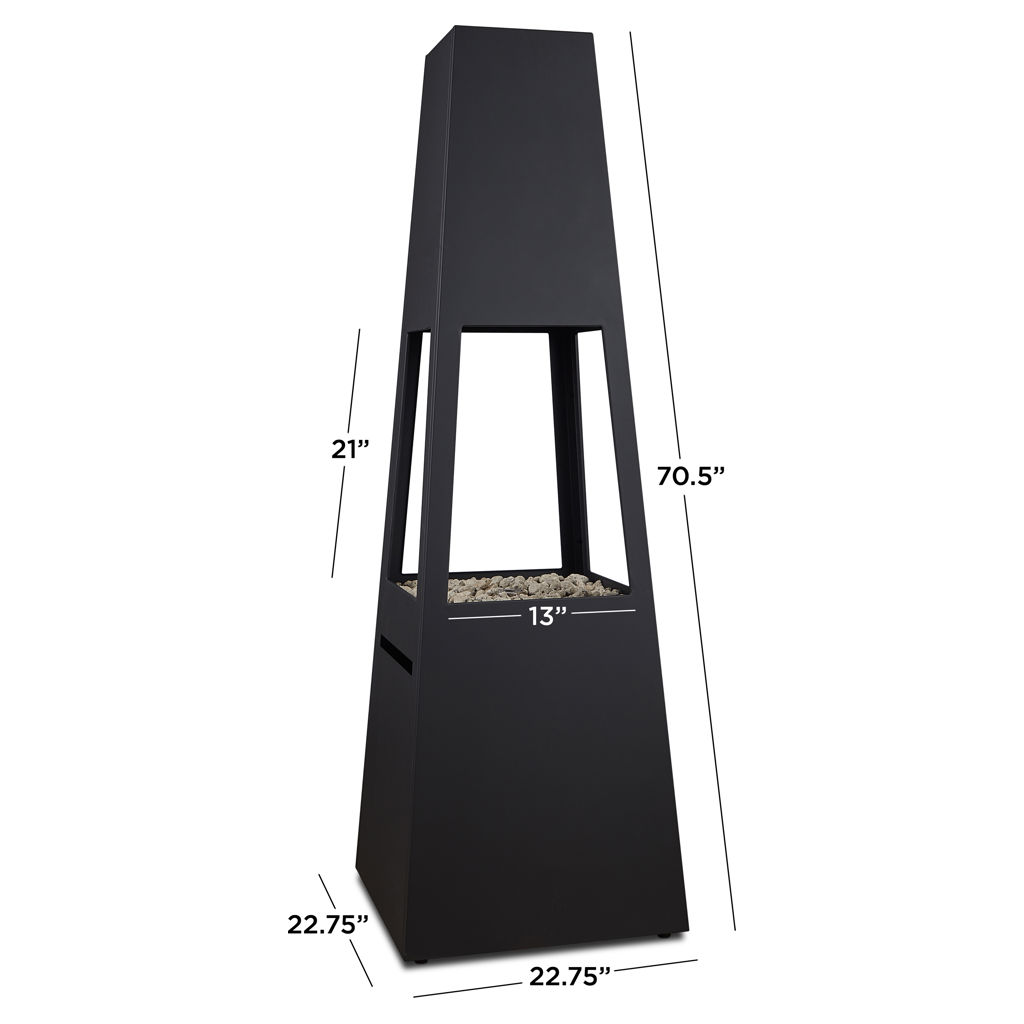 Offrant une puissance de 50 000 BTU et fabriqué en acier épais et durable, ce foyer extérieur moderne possède une base large pouvant dissimuler une bonbonne de propane de 9 kg. Vous conservez ainsi une esthétique épurée sans tuyau ni source de gaz apparents.