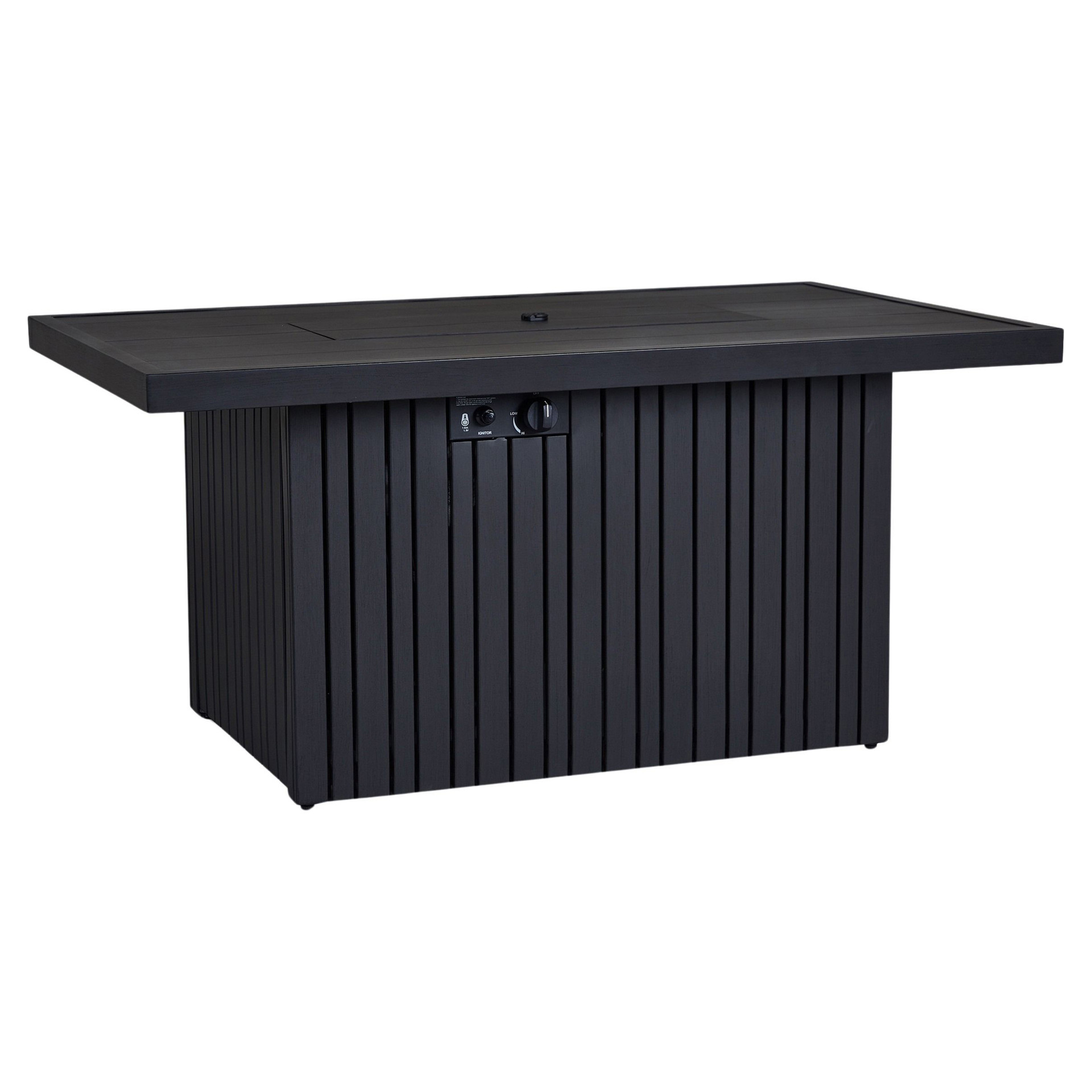 Fabriqué en aluminium durable avec une texture légèrement brossée, ce foyer moderne possède un large plateau et une base substantielle suffisamment grande pour dissimuler une bonbonne de propane de 20 lb.