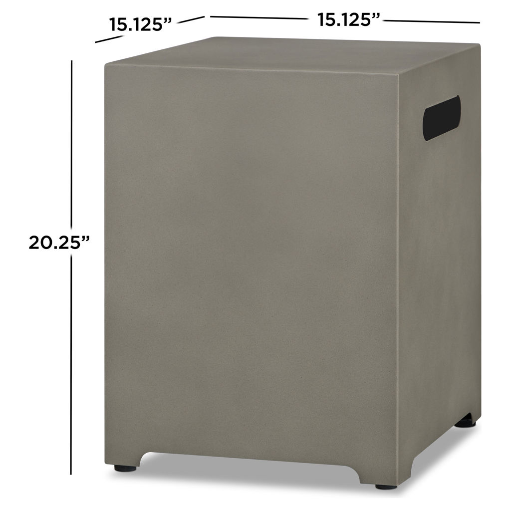 Compatible avec une grande variété de foyers et tables foyers, ce cache-bouteille moderne dissimule une bonbonne de propane de 20 lb et peut également servir de table d'appoint élégante.