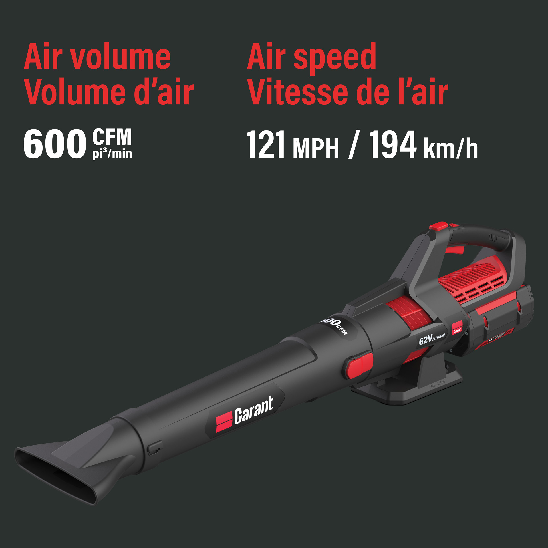 Puissant et léger, ce souffleur sans fil 62V offre un débit d'air de 600 pi3/min et une vitesse maximale de 194 km/h, vous permettant de nettoyer rapidement allées, patios et pelouses.