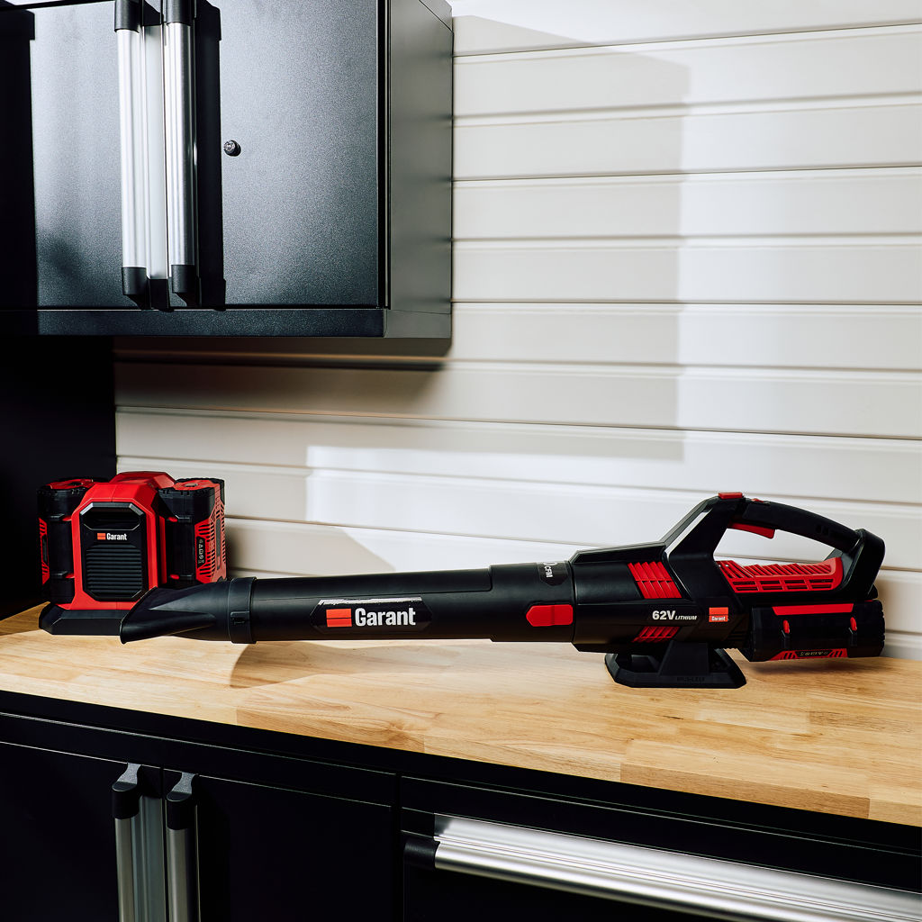 Puissant et léger, ce souffleur sans fil 62V Garant offre un débit d'air de 600 pi3/min et une vitesse maximale de 121 mi/h (194 km/h) pour un nettoyage rapide et efficace.