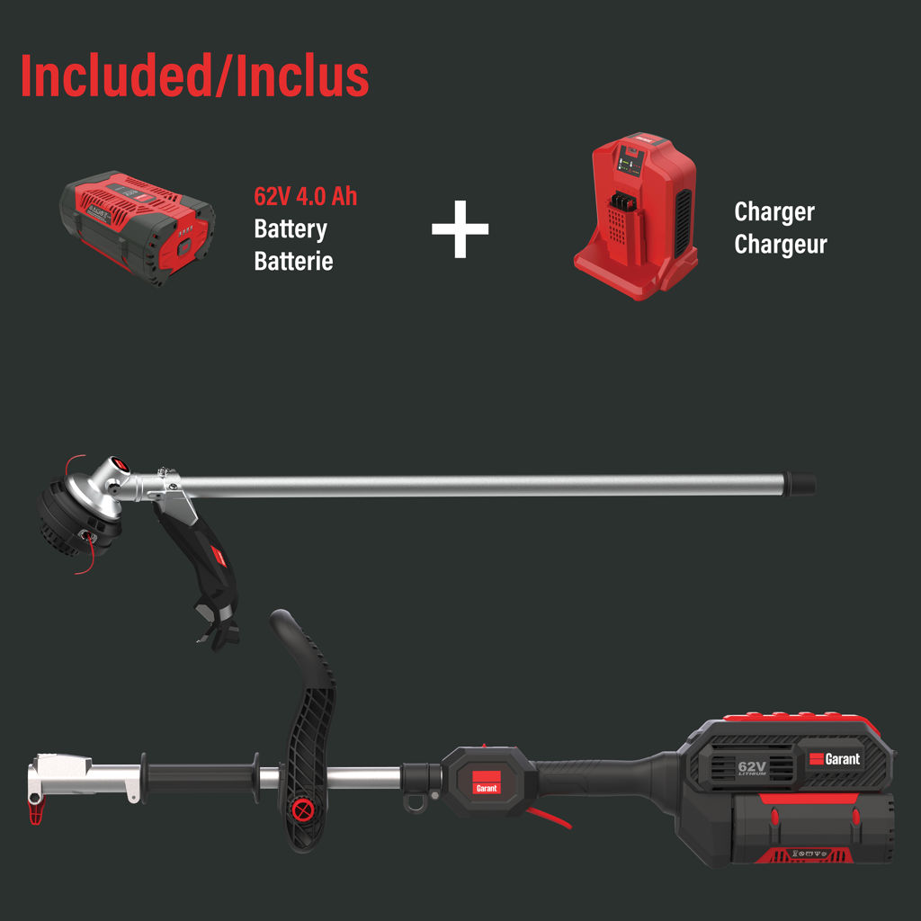 Conçu pour durer, il est alimenté par une batterie 62V 4,0 Ah incluse, offrant jusqu'à 45 minutes d'autonomie et toute la puissance nécessaire pour accomplir vos tâches avec efficacité.