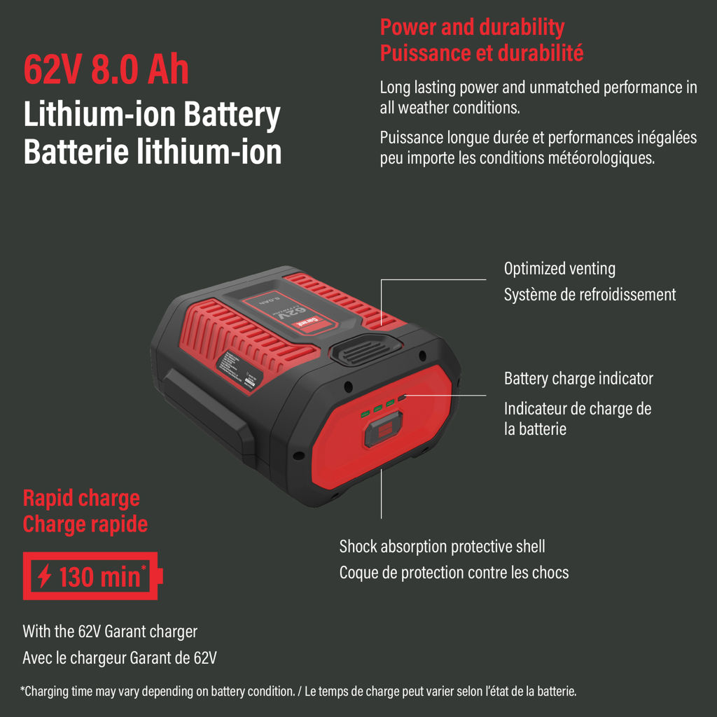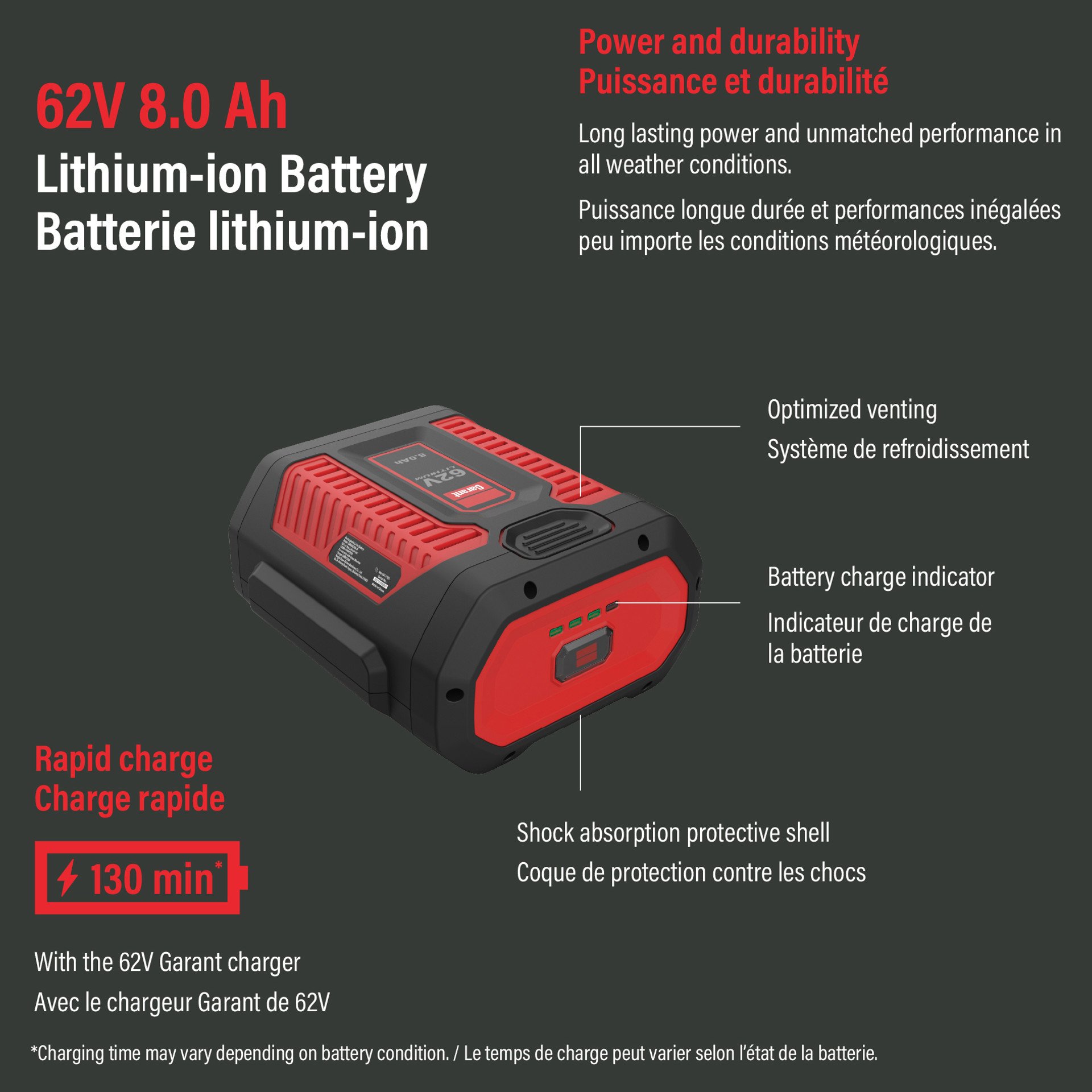 Conçue pour les travaux légers ou en hauteur, la batterie lithium-ion 62V 8 Ah de Garant offre une performance fiable dans un format ultra-compact.
