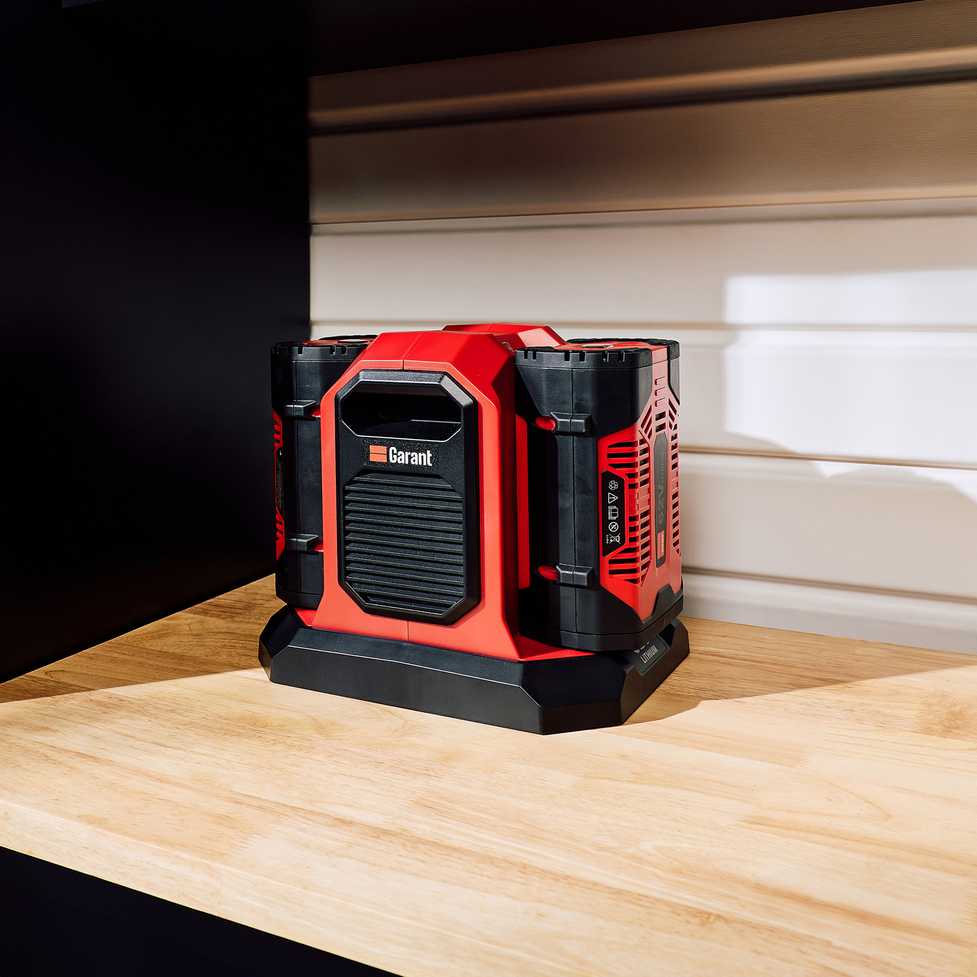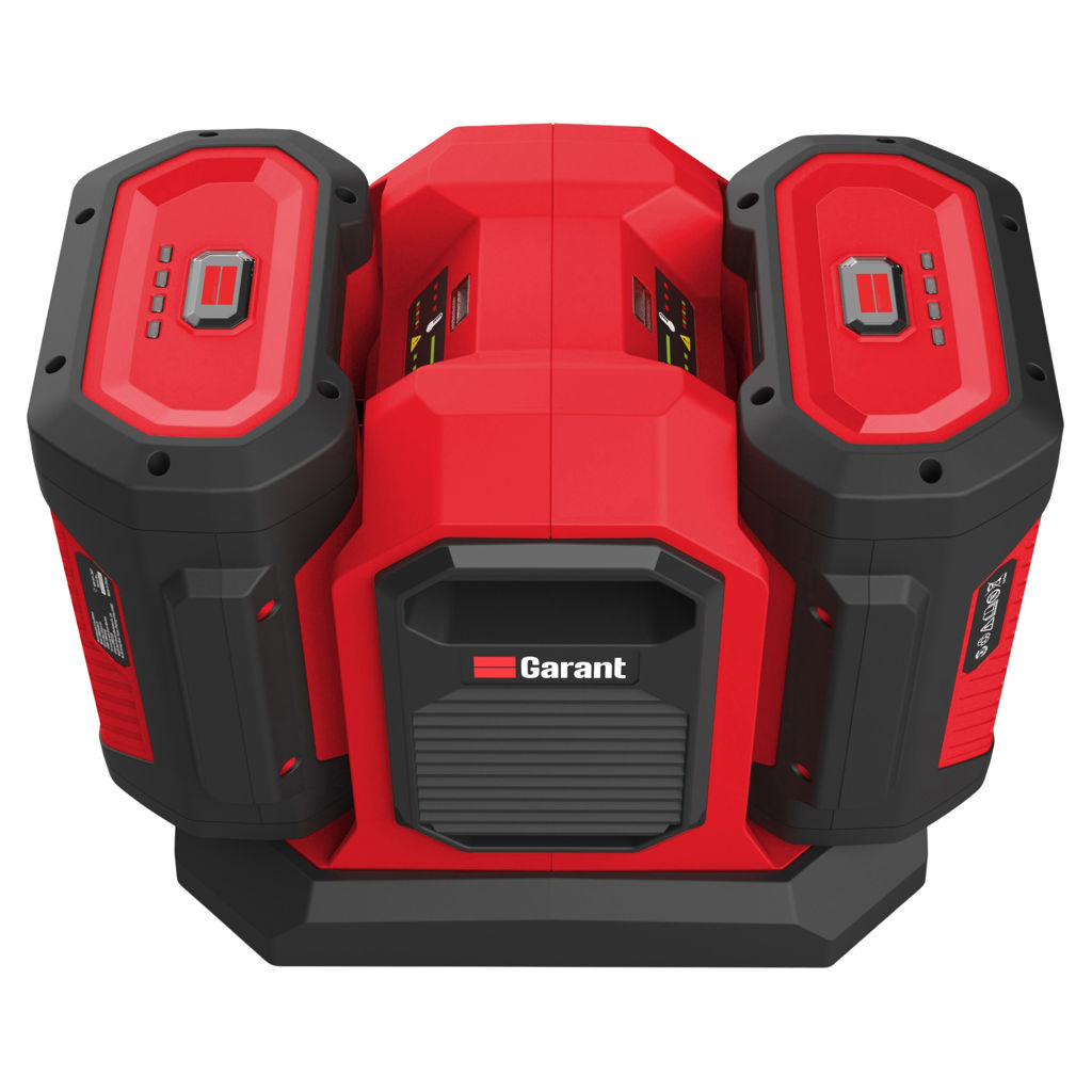 Rechargez deux batteries en même temps avec le chargeur double 62V 600W de Garant, conçu pour réduire les temps d'attente et maximiser l'utilisation de vos outils sans fil.