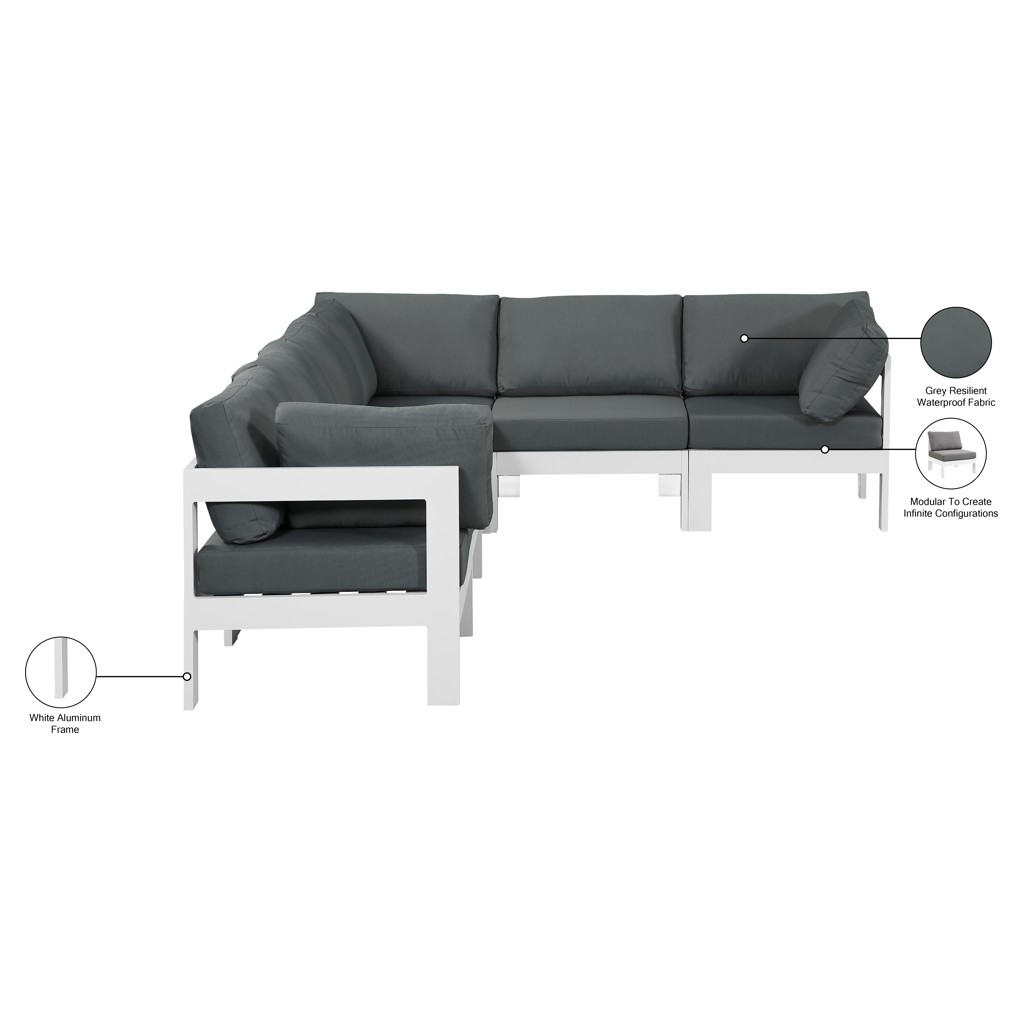 Sectionnel modulaire d'extérieur 6 places Nizuc Meridian Furniture 375GREY-SEC6A