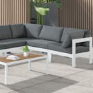 Un cadre en aluminium offre une fiabilité robuste à ce sectionnel, garantissant sa performance durable et sa beauté impeccable. Les coussins moelleux sont recouverts d'un tissu résistant à l'eau pour conserver leur apparence luxueuse pour les saisons à venir.
