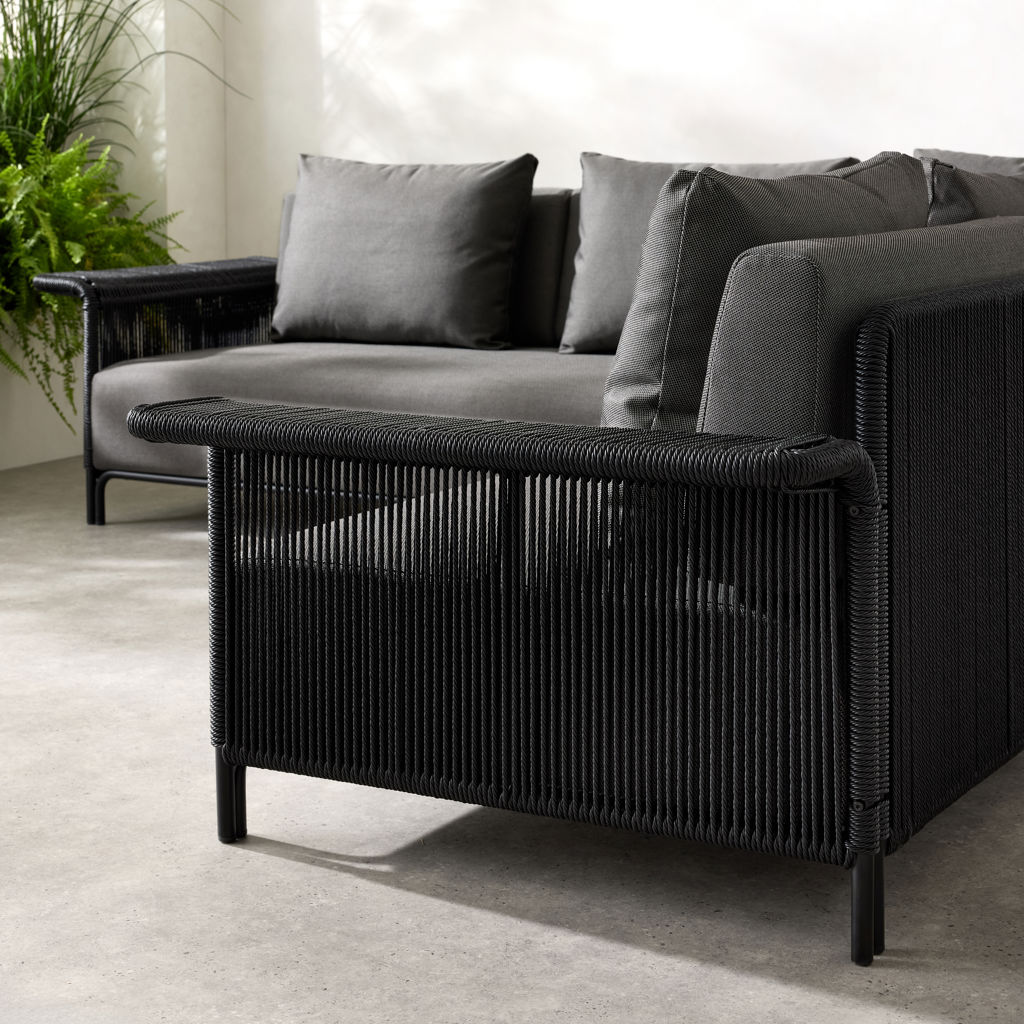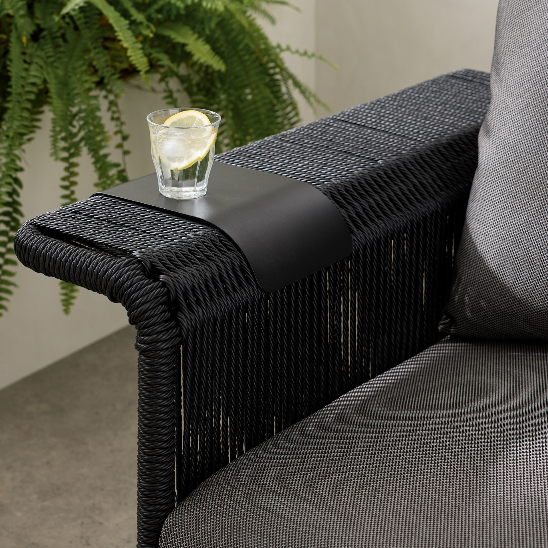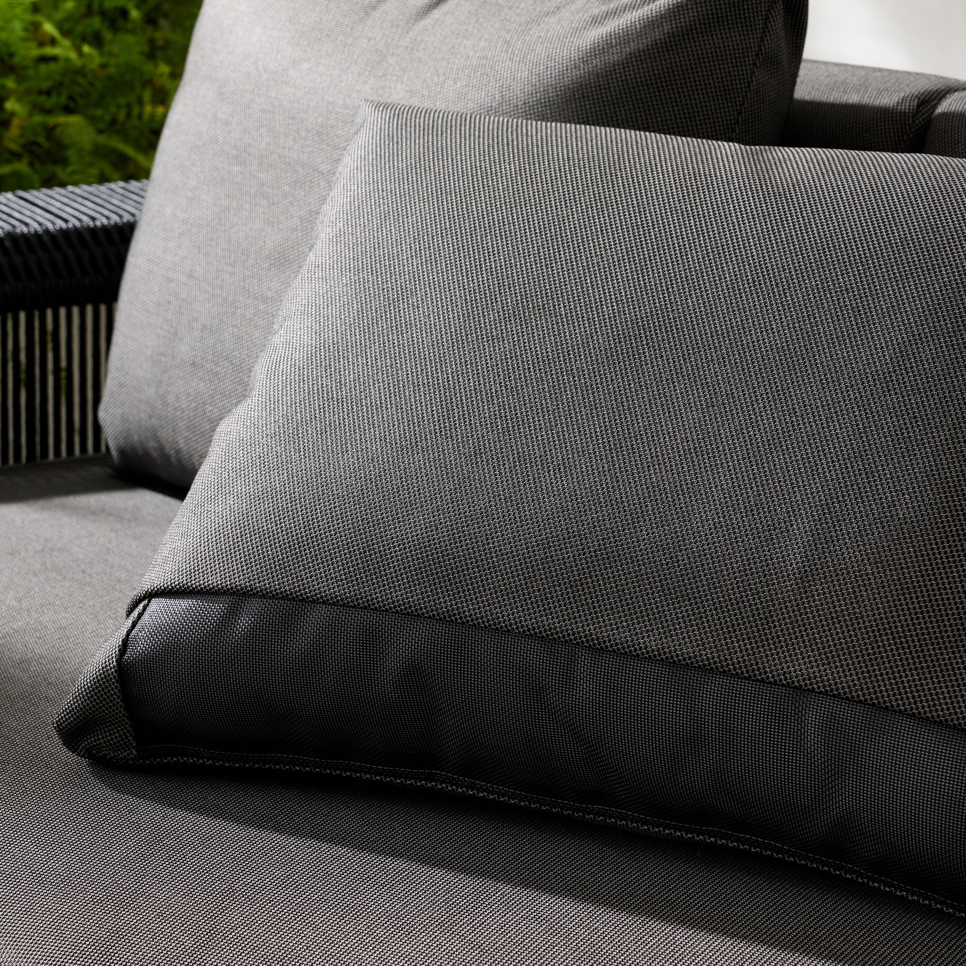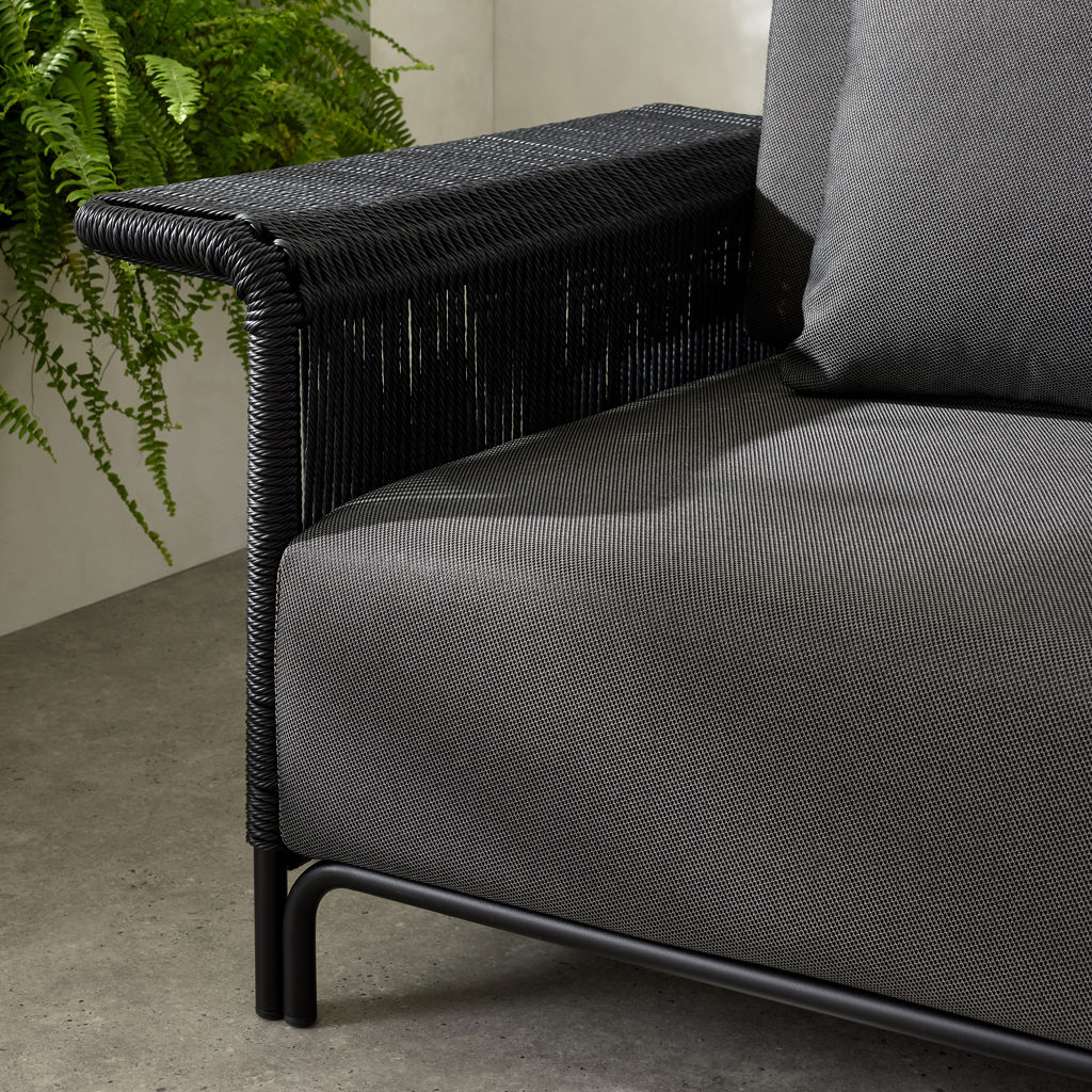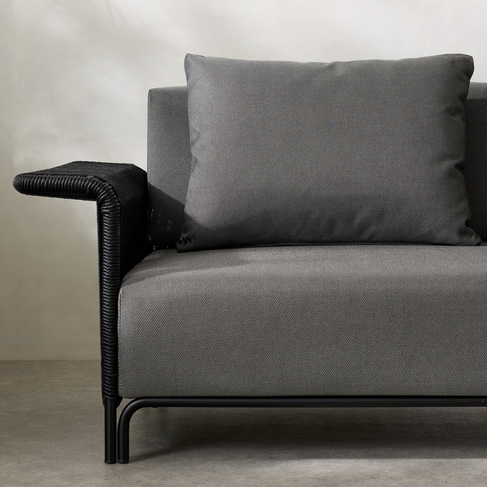 Il offre un grand espace d'accoudoir. Les coussins résistants aux intempéries offrent un confort douillet. Un savoir-faire de qualité, des formes fortes et décisives et un style urbain garantissent un look époustouflant et percutant dans tout espace intérieur ou extérieur.