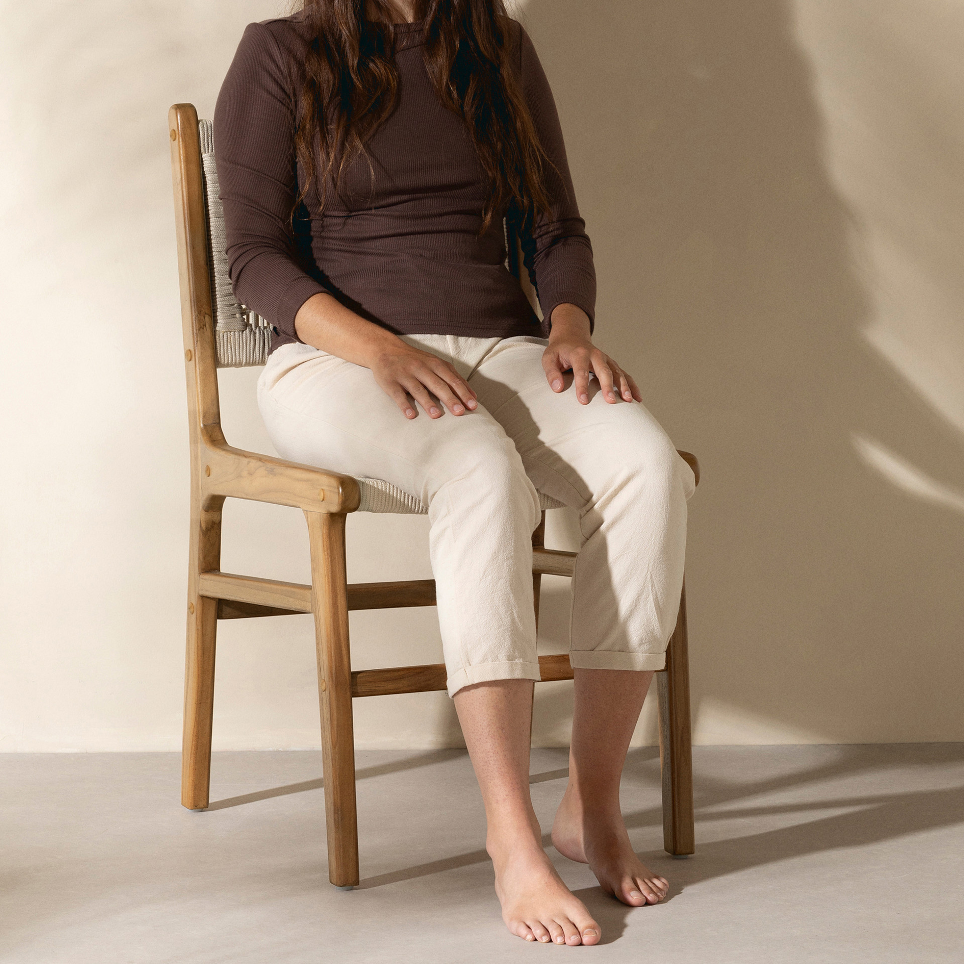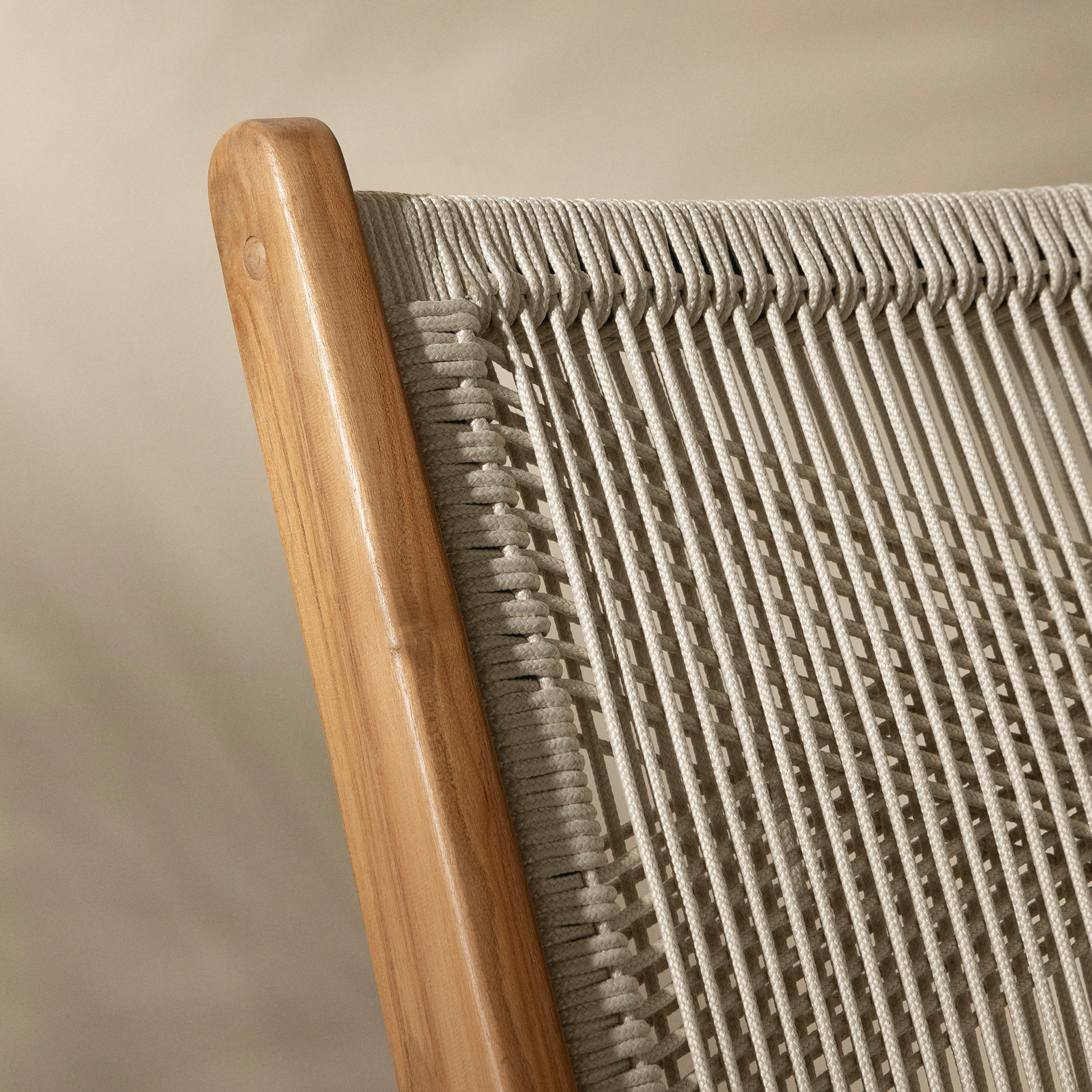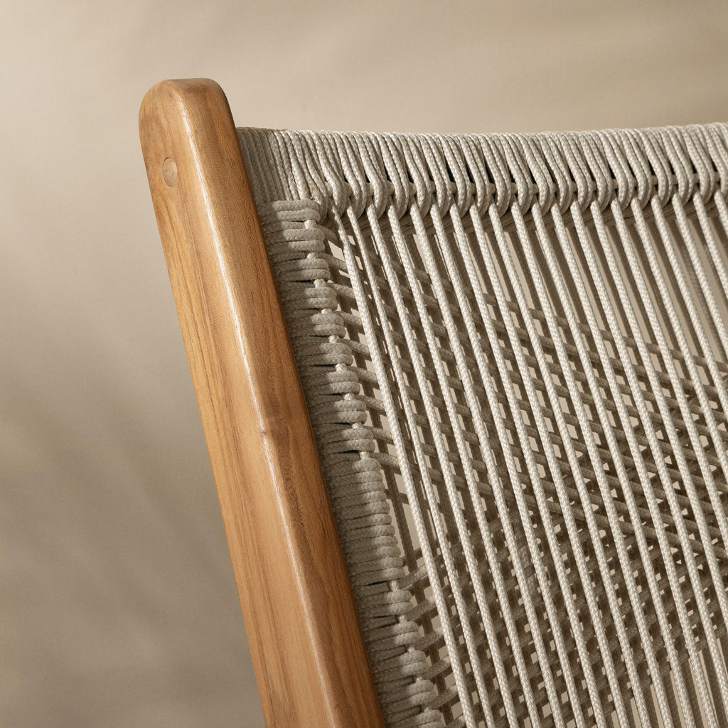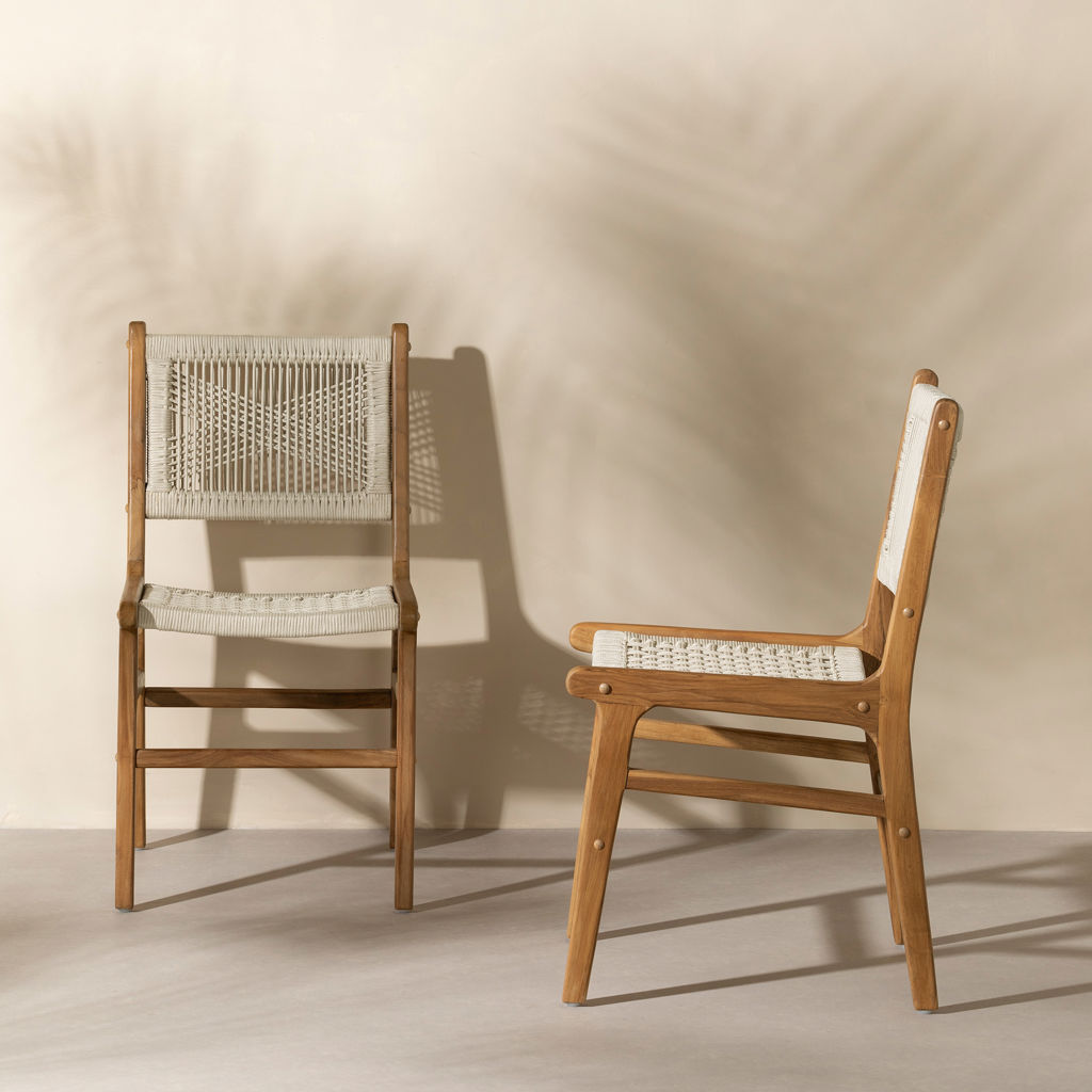 Optez pour ces 2 chaises d´extérieur conçues pour s´adapter à des conditions météorologiques variées. La corde d´oléfine est extrêmement solide. Il s´agit d´une fibre synthétique imperméable prisée dans l´industrie du mobilier de jardin. Le bois de teck quant à lui se démarque par sa haute résistance à l´humidité et aux chocs. Enduisez-le d´une huile protectrice chaque année pour être assuré de préserver sa couleur d´origine. Cette sélection de matières n´est pas anodine! Elle vous permettra de profiter de vos nouveaux meubles des années durant!
