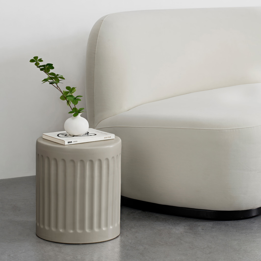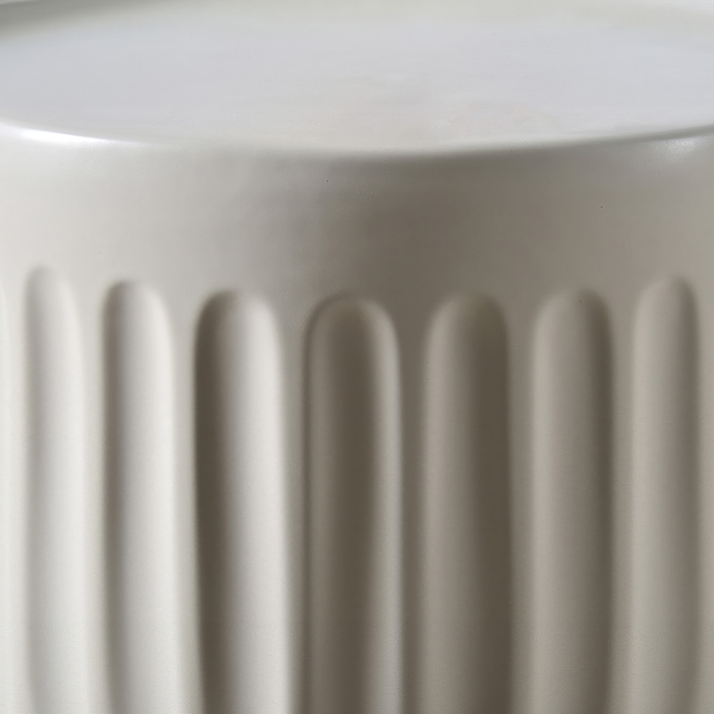 Rappelant des colonnes imposantes, cette table d'extérieur présente une esthétique inspirée de l'architecture dans son armature en céramique. Ses garnitures lisses lui permettent de créer une ambiance accueillante dans l'espace de vie extérieur. La palette de tons de blanc mat et un fini scintillant sauront attirer le regard, surtout si elle est posée de manière à capturer la lumière du soleil.