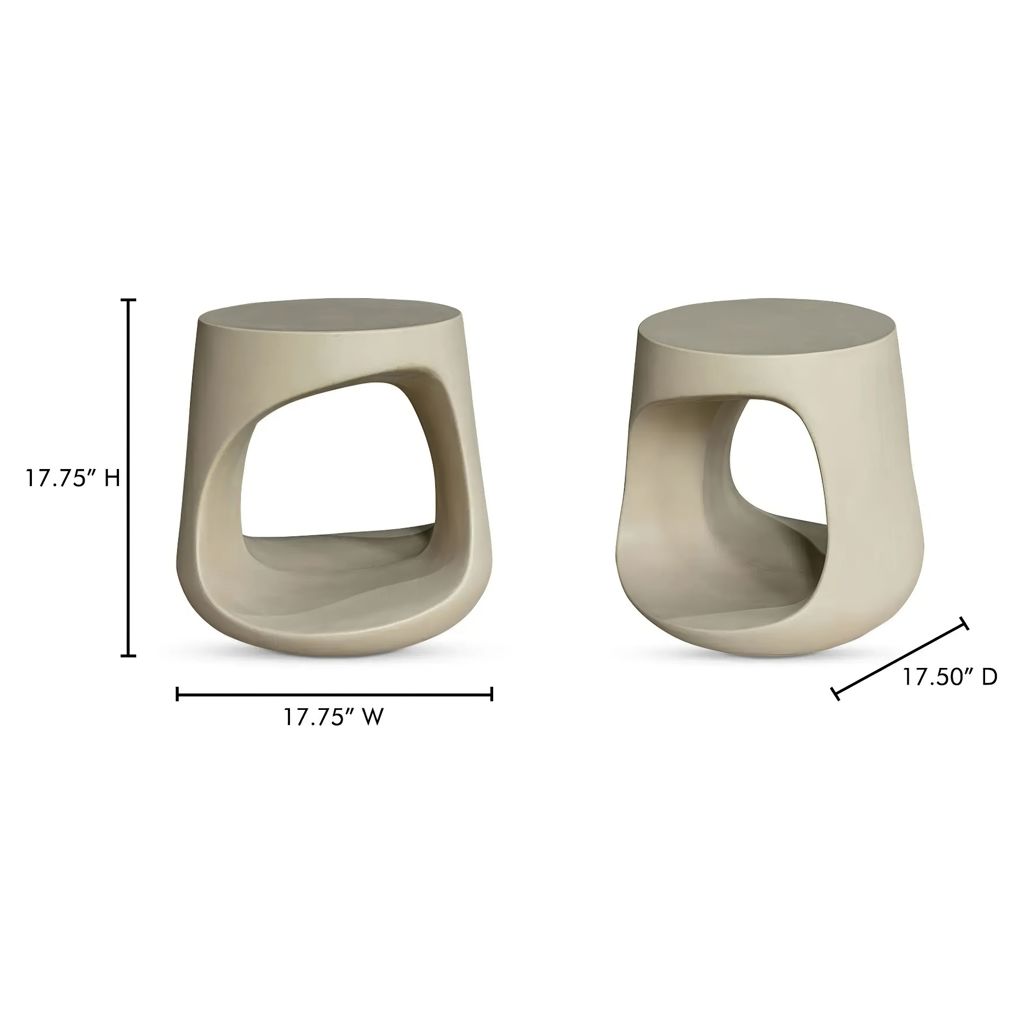 Ce tabouret monolithique d'intérieur ou d'extérieur est une oeuvre d'art, prête à s'intégrer dans un jardin organique ou à être placée à côté de la douceur de votre canapé en tant que table d'appoint.