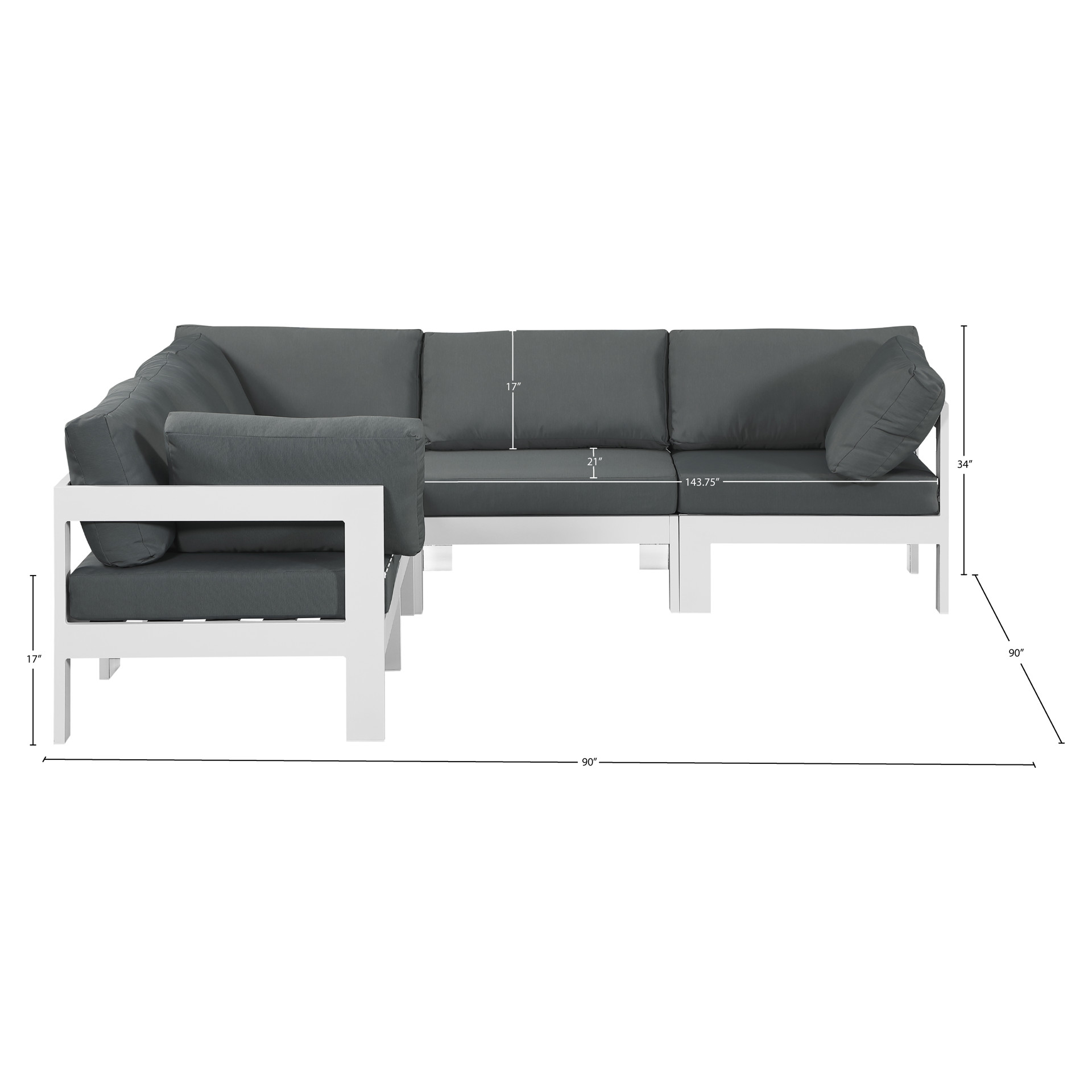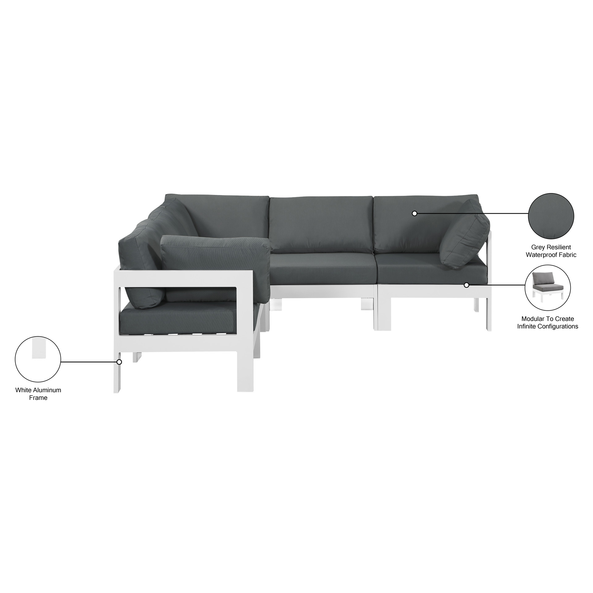 Sectionnel modulaire d'extérieur Meridian Furniture 375GREY-SEC5B