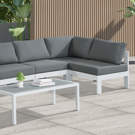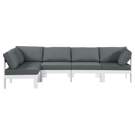 Un cadre en aluminium offre une fiabilité robuste à ce sectionnel, garantissant sa performance durable et sa beauté impeccable. Les coussins moelleux sont recouverts d'un tissu résistant à l'eau pour conserver leur apparence luxueuse pour les saisons à venir.