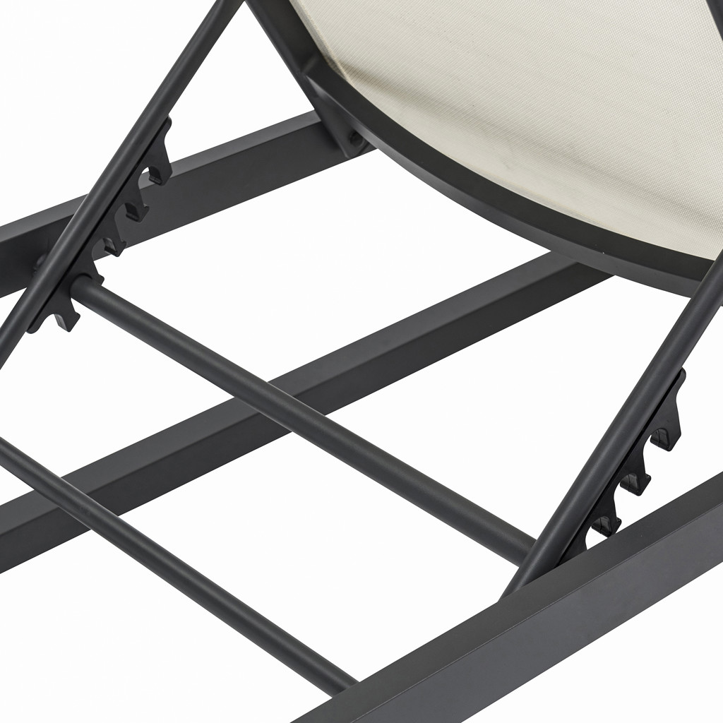 Résiste à l´extérieur sans perdre de temps. Un tissu résistant à l´eau en maille crème vous soutient confortablement pendant que vous vous reposez et vous détendez sous le soleil, tout en ajoutant un attrait de villégiature définitif.