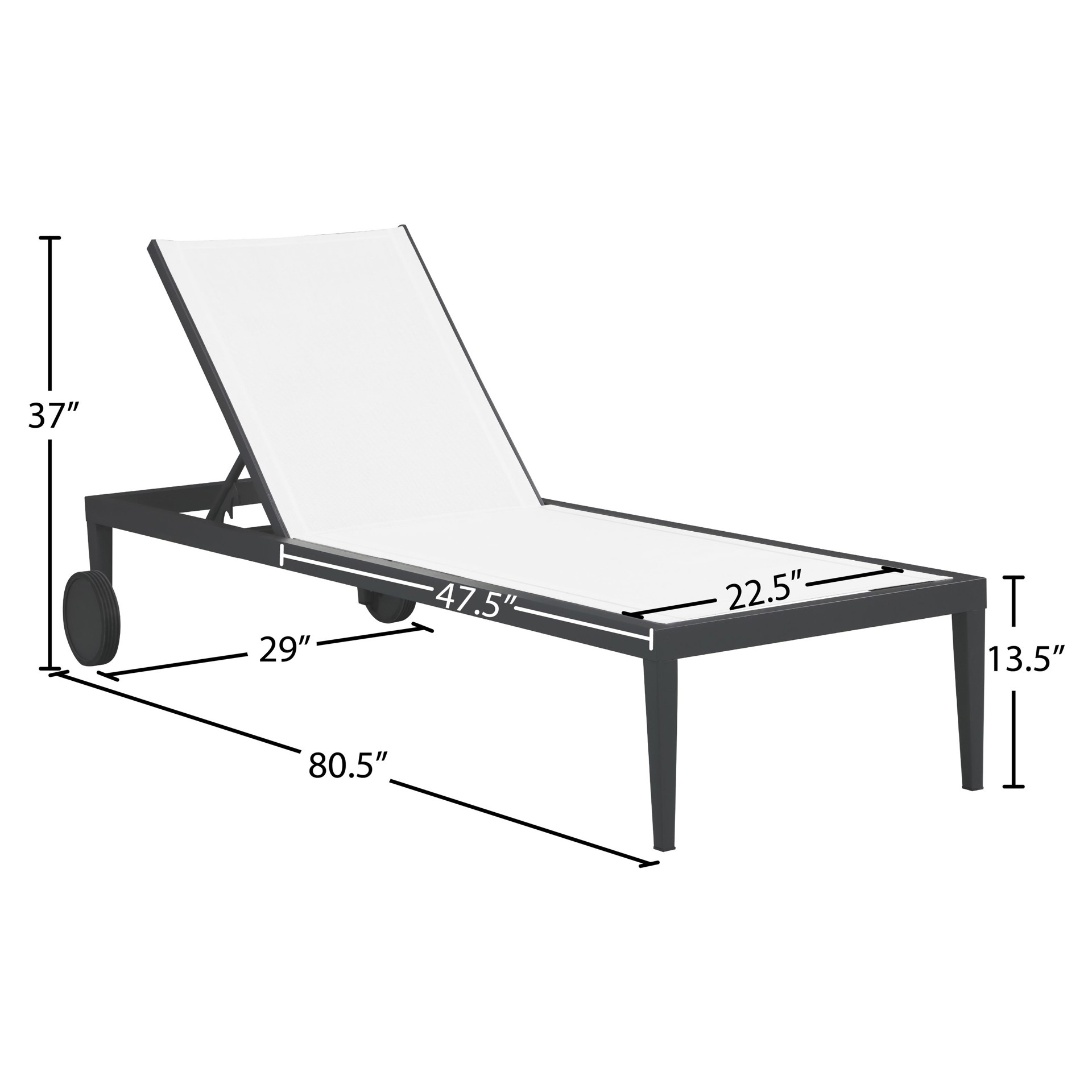 Rendez hommage à l'adorateur du soleil en ramenant à la maison cette chaise longue réglable pour patio extérieur Nizuc. Le cadre en aluminium noir est la vedette du spectacle, lui donnant la résistance dont il a besoin pour résister à l'utilisation et aux abus des amateurs de soleil pendant des années.