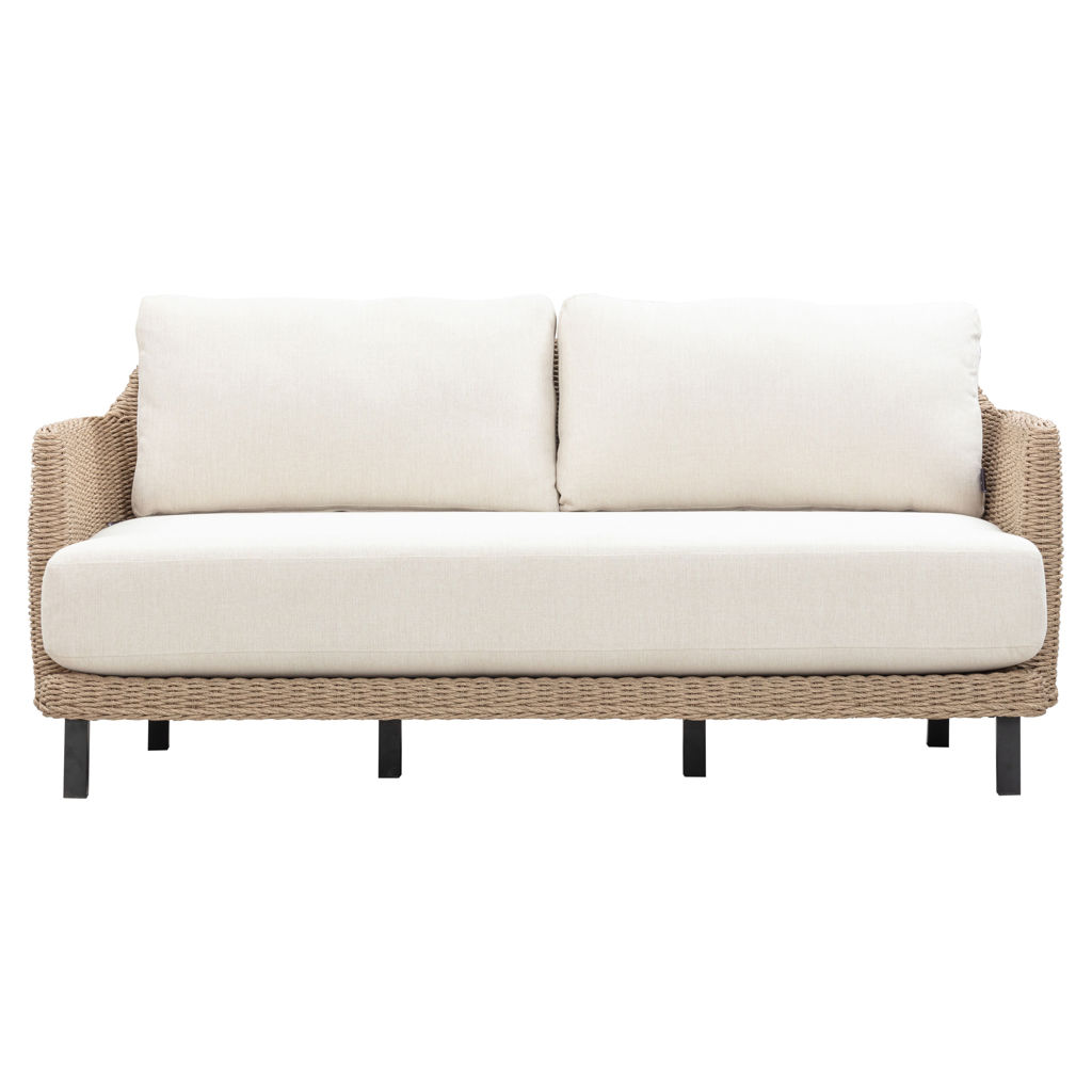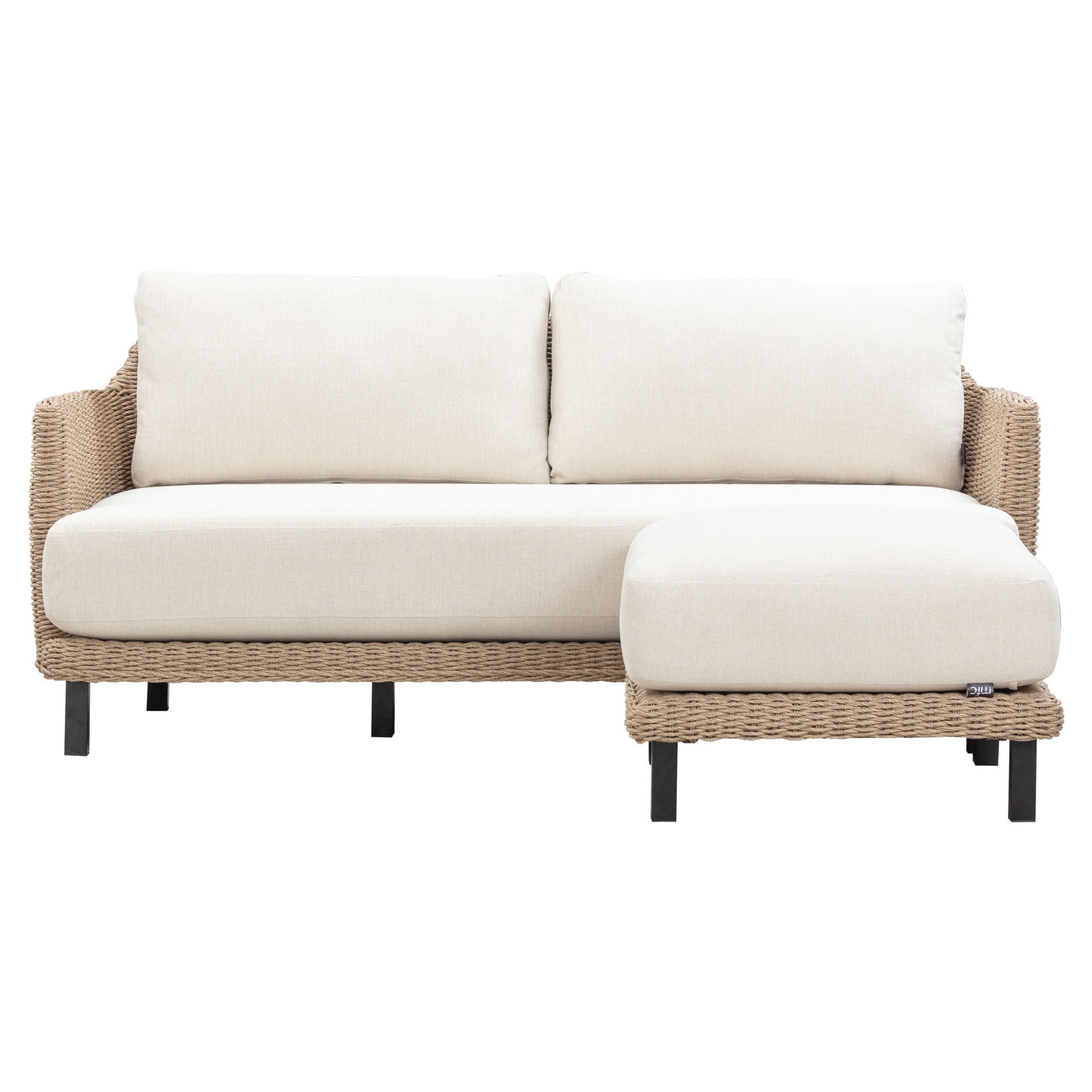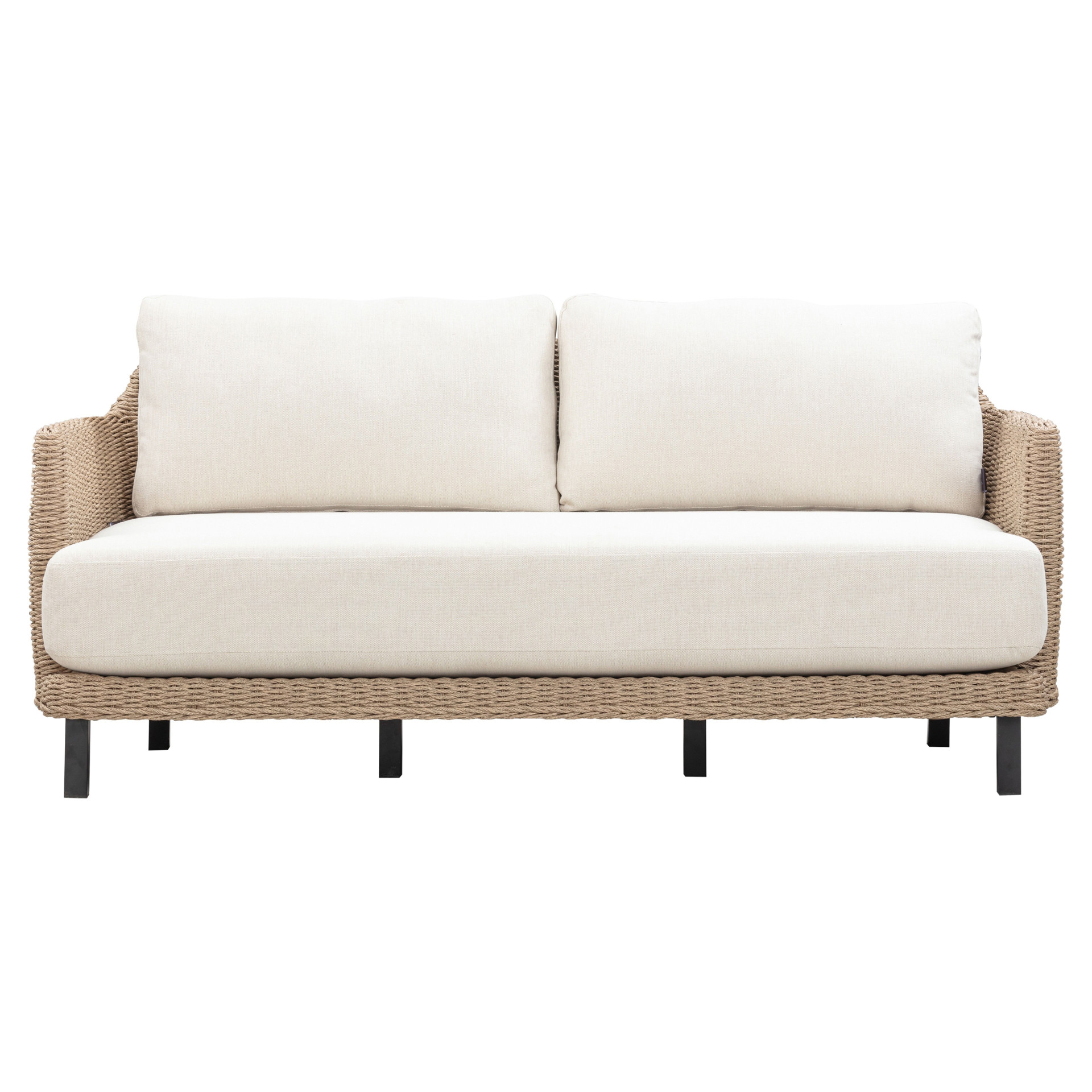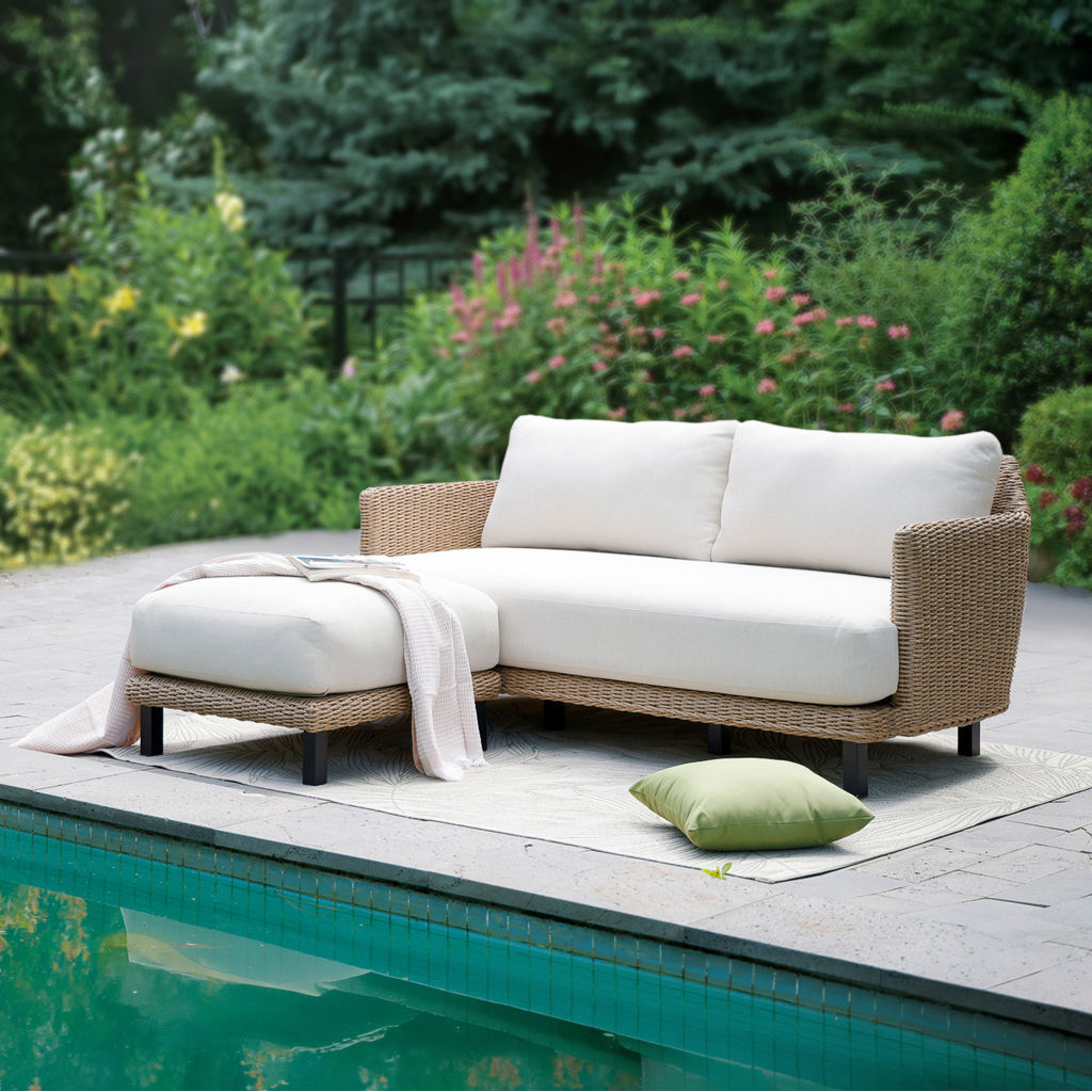 Élégant et chaleureux, il est parfait pour créer un coin détente relaxant sur votre patio, balcon ou terrasse. Cet ensemble comprend un sofa double et un ottoman, tous deux accompagnés de coussins beige en oléfine offrant un confort moelleux et durable.