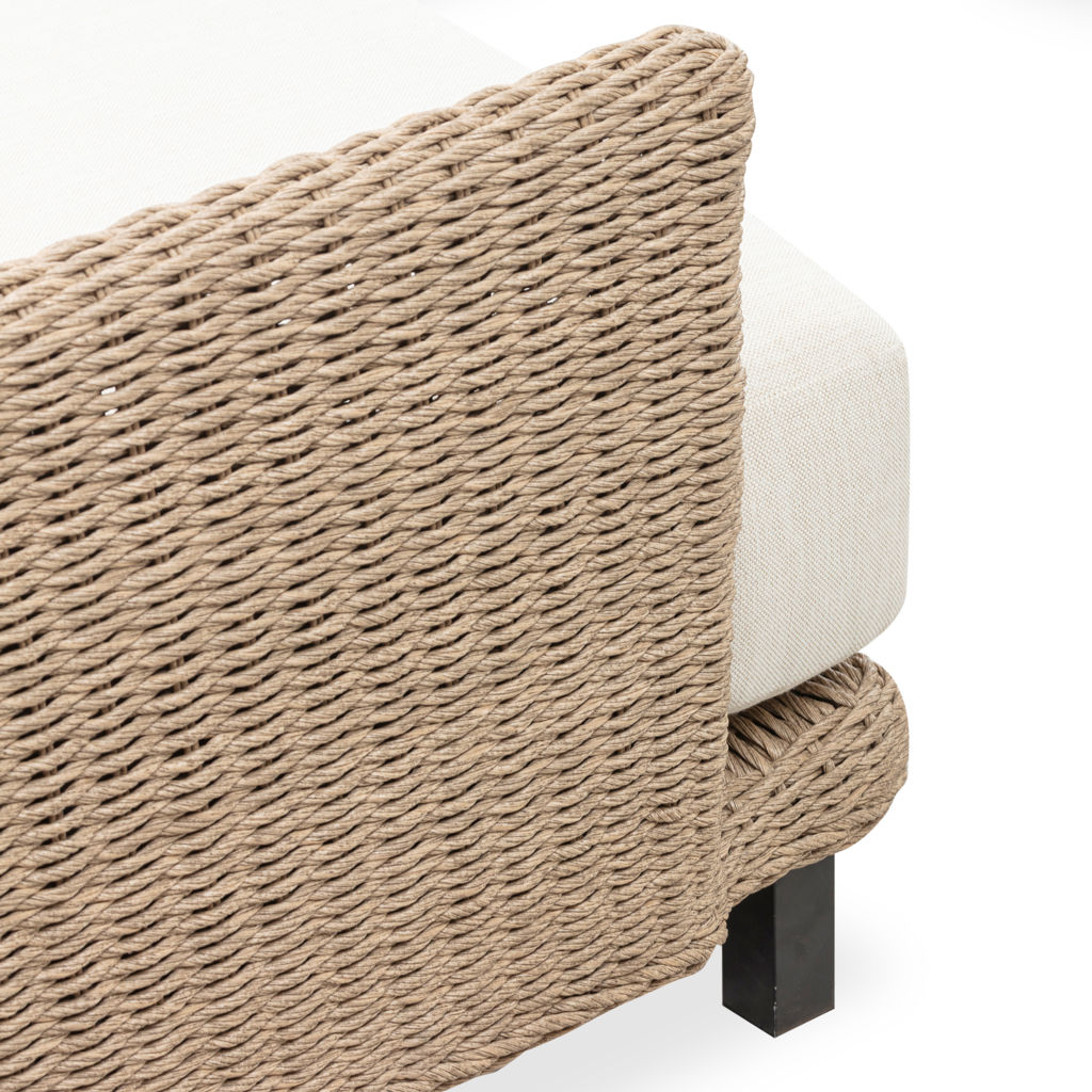 Le rotin torsadé de couleur naturelle ajoute une touche artisanale et contemporaine, tandis que la housse protectrice incluse permet de préserver votre mobilier des intempéries.