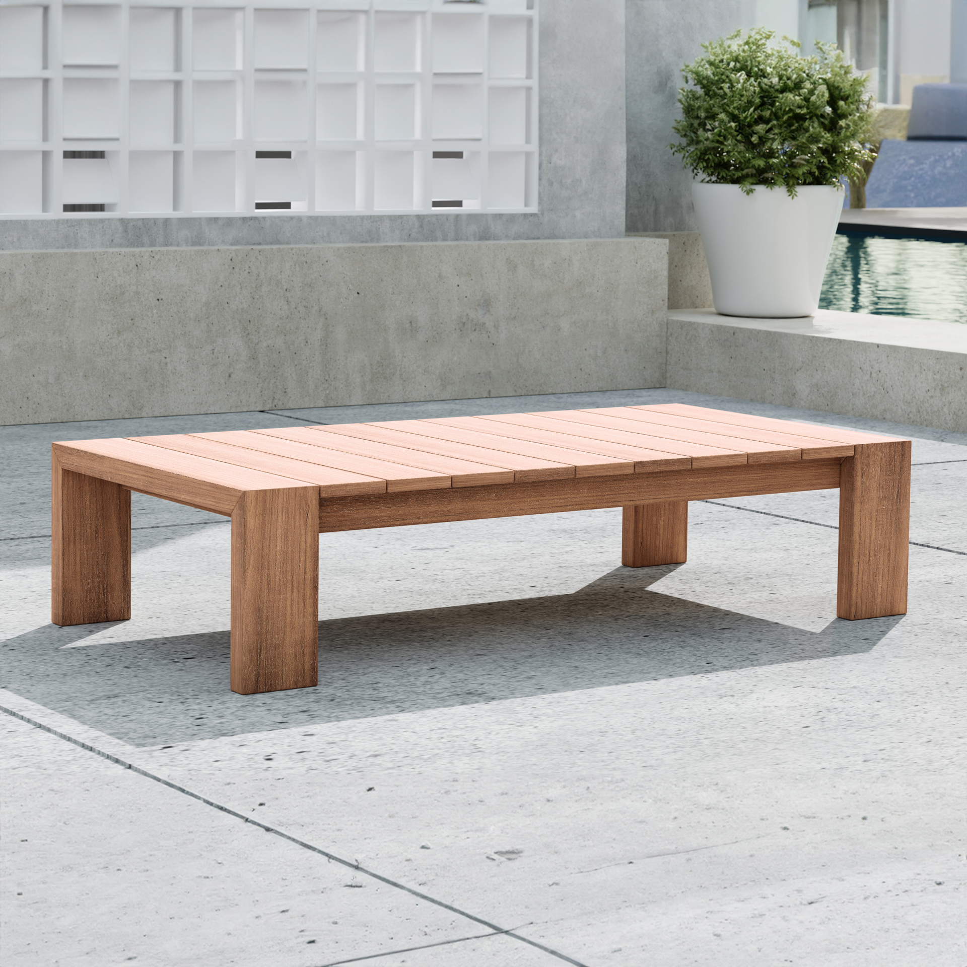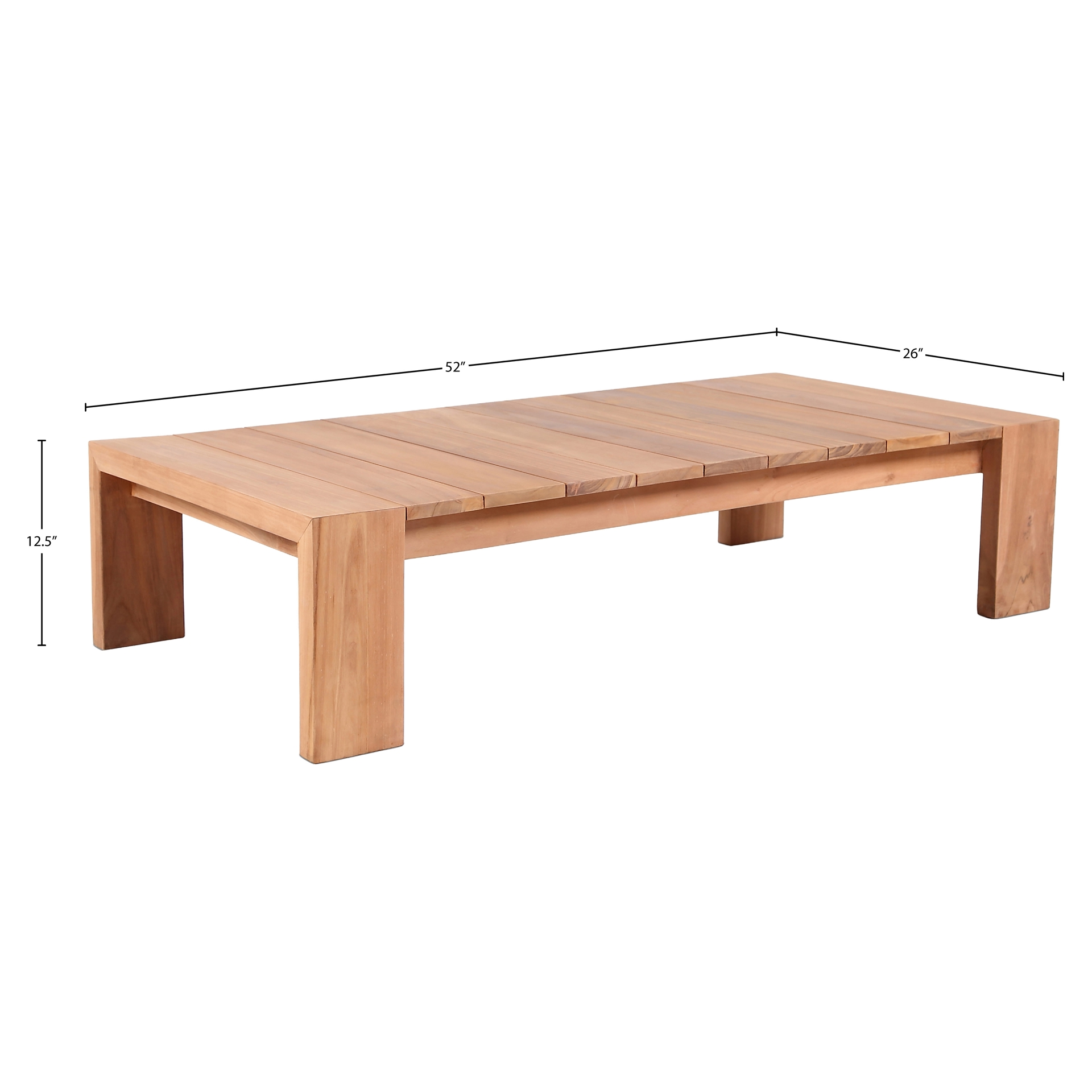 Faites de cette table basse d'extérieur en teck Tulum la pièce maîtresse de votre espace de divertissement extérieur. Cette jolie table est l'endroit idéal pour poser votre tasse de café pendant que vous admirez le lever du soleil ou pour contenir des boissons glacées pendant que vous vous divertissez en plein air.