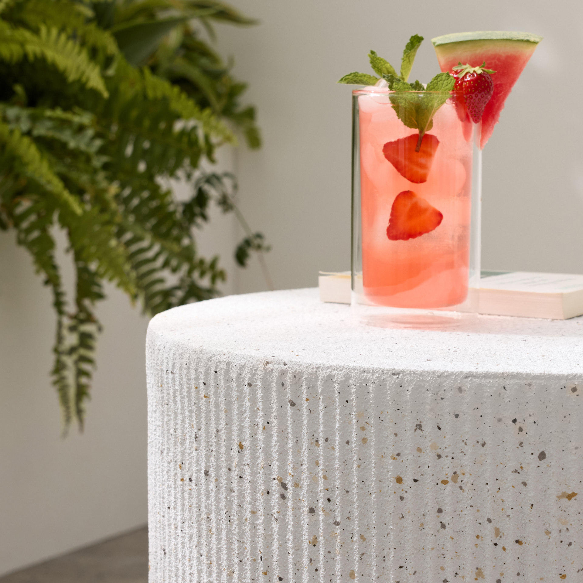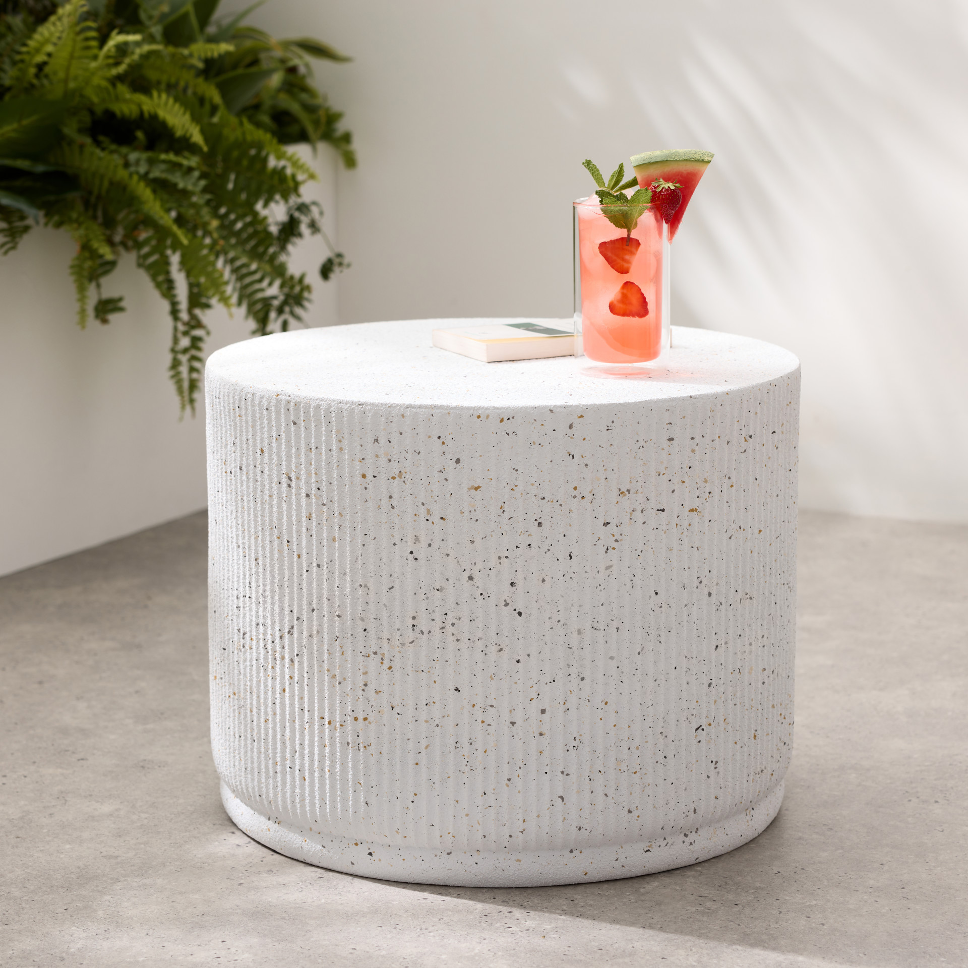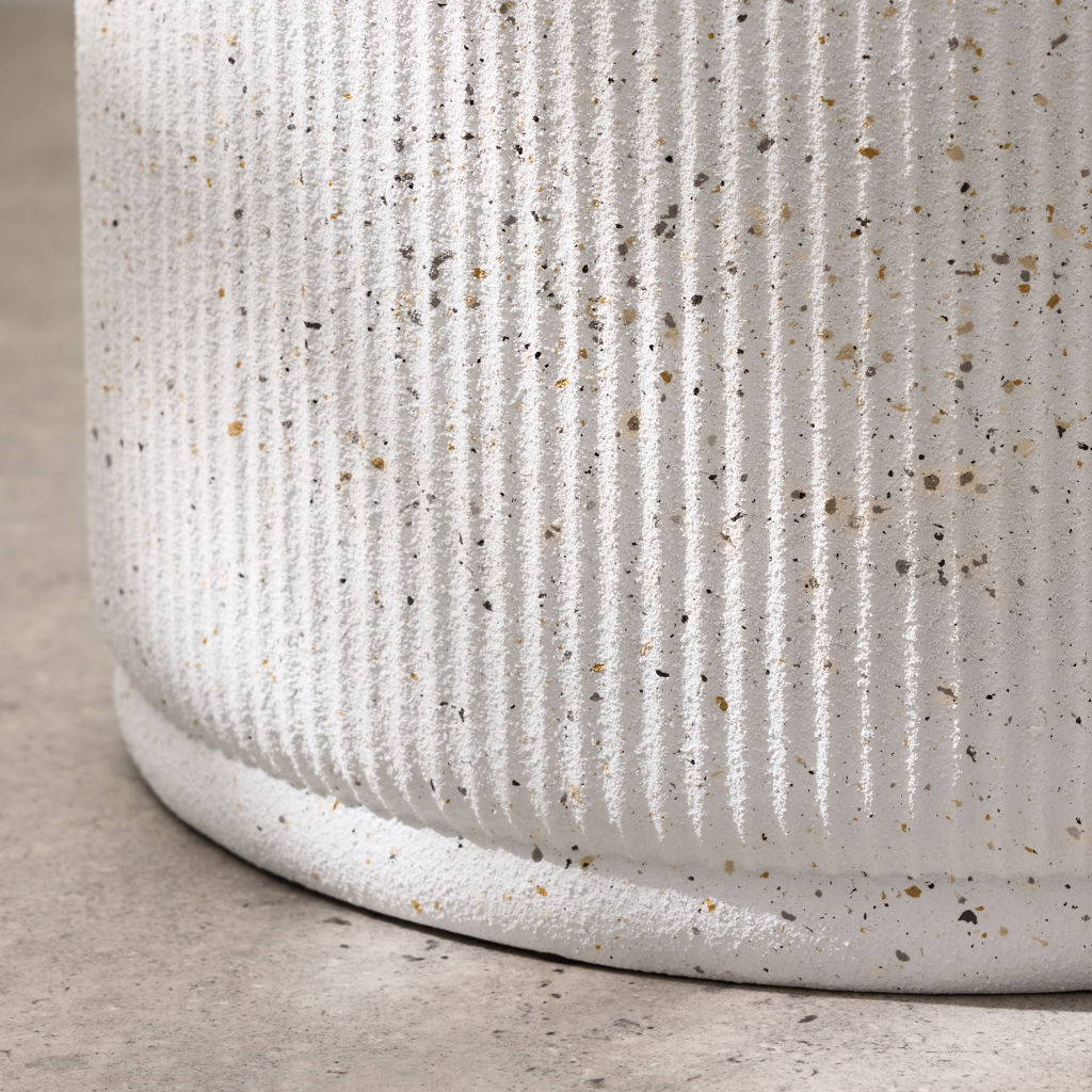 Table basse en céramique blanche avec des rainures