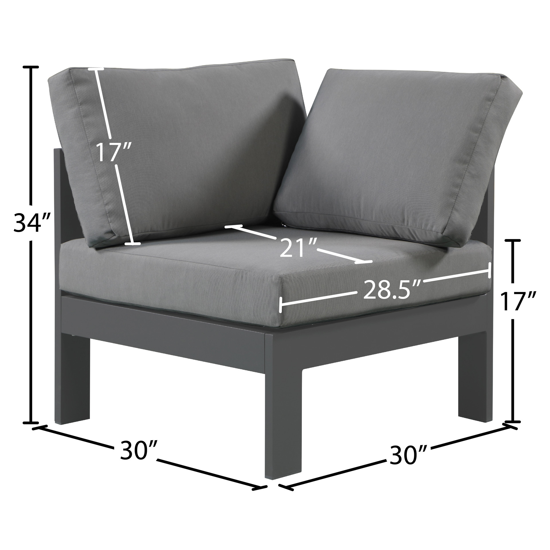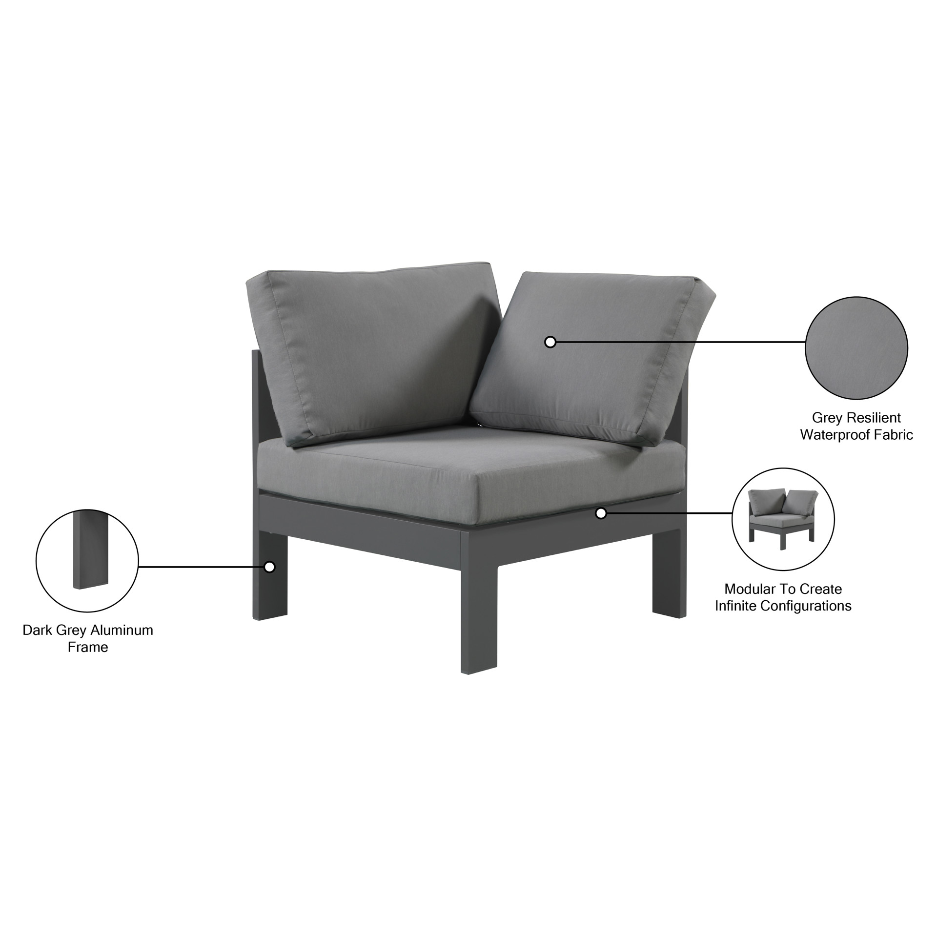 Chaise en coin d'extérieur Meridian Furniture 376GREY-CORNER