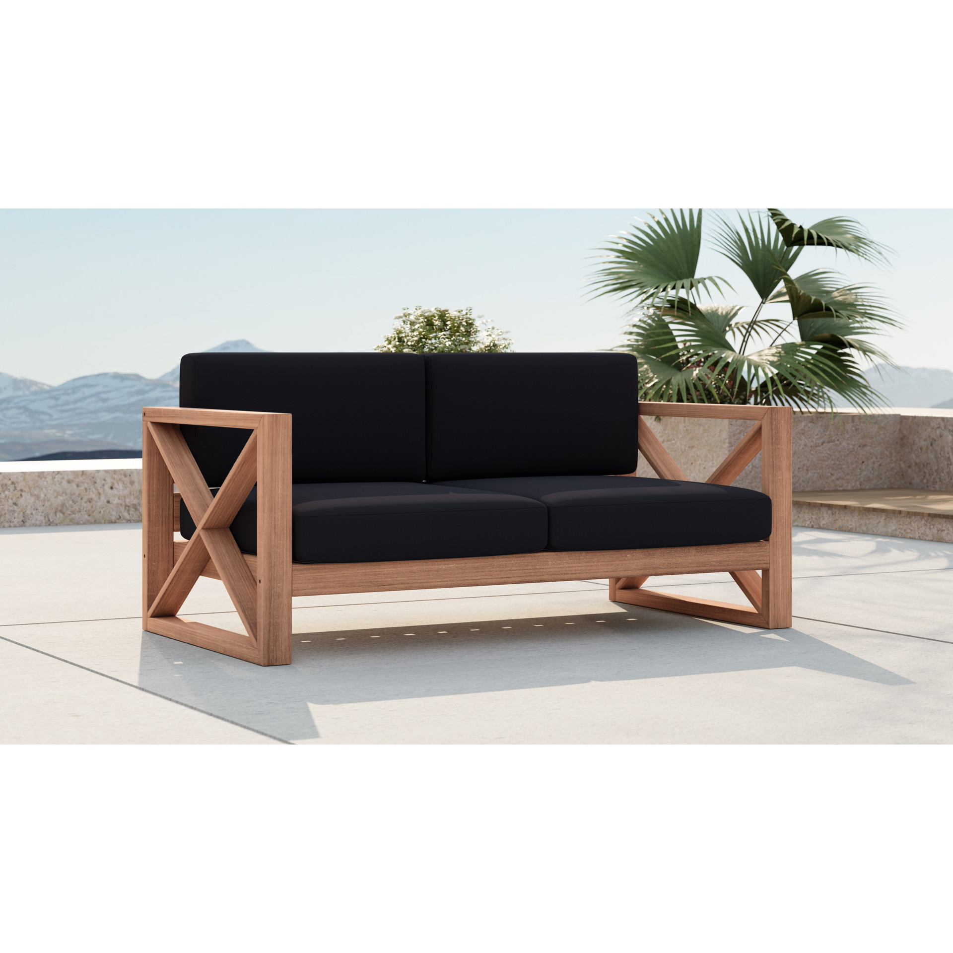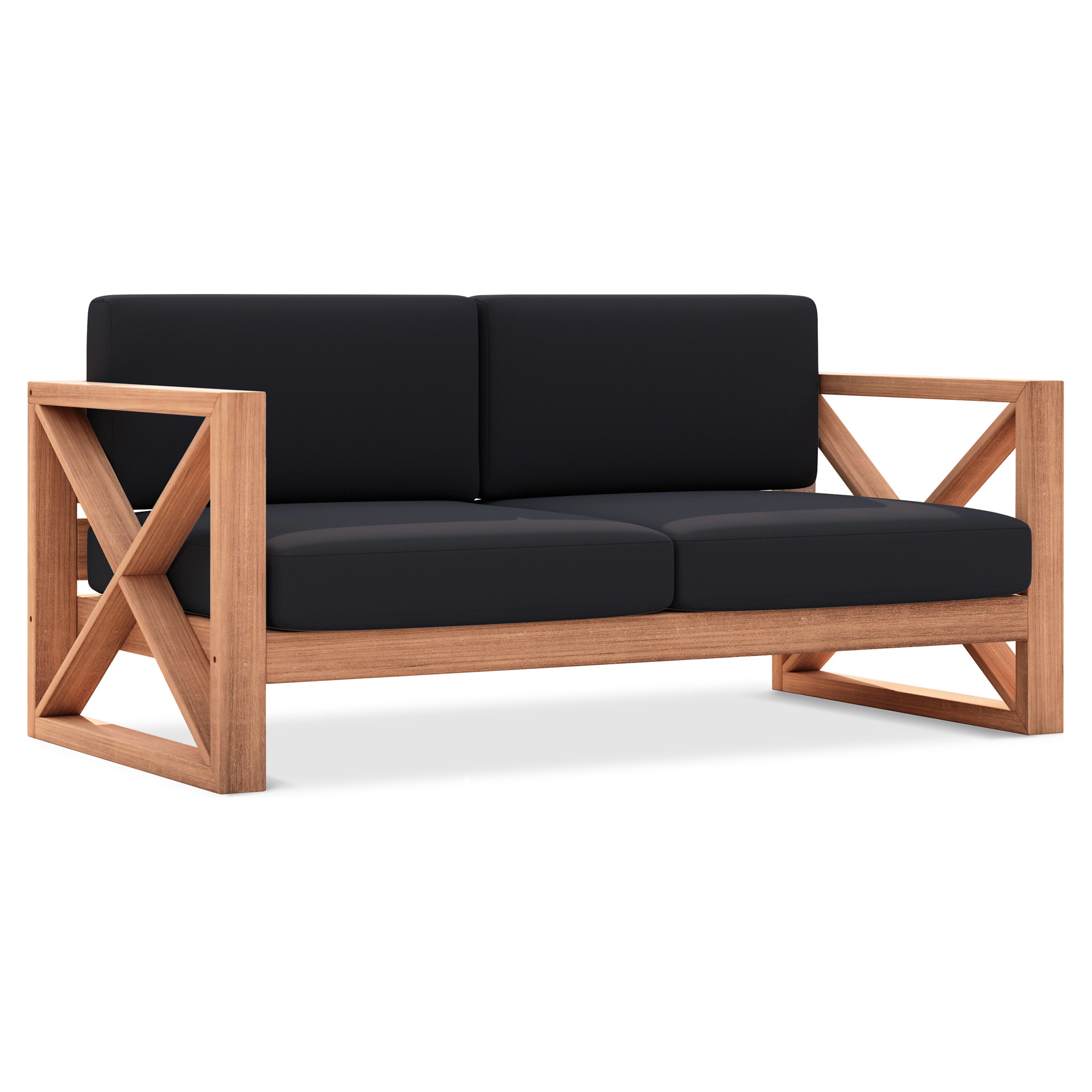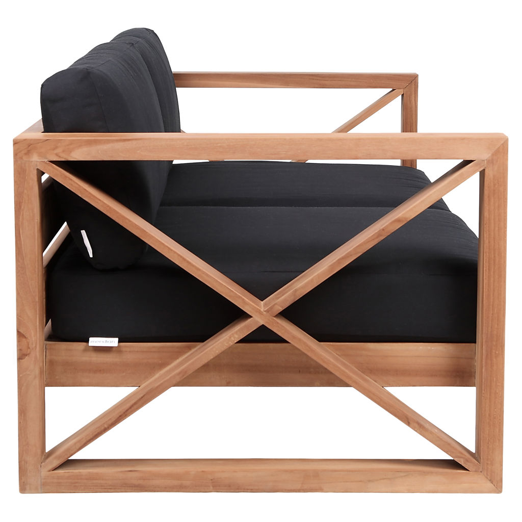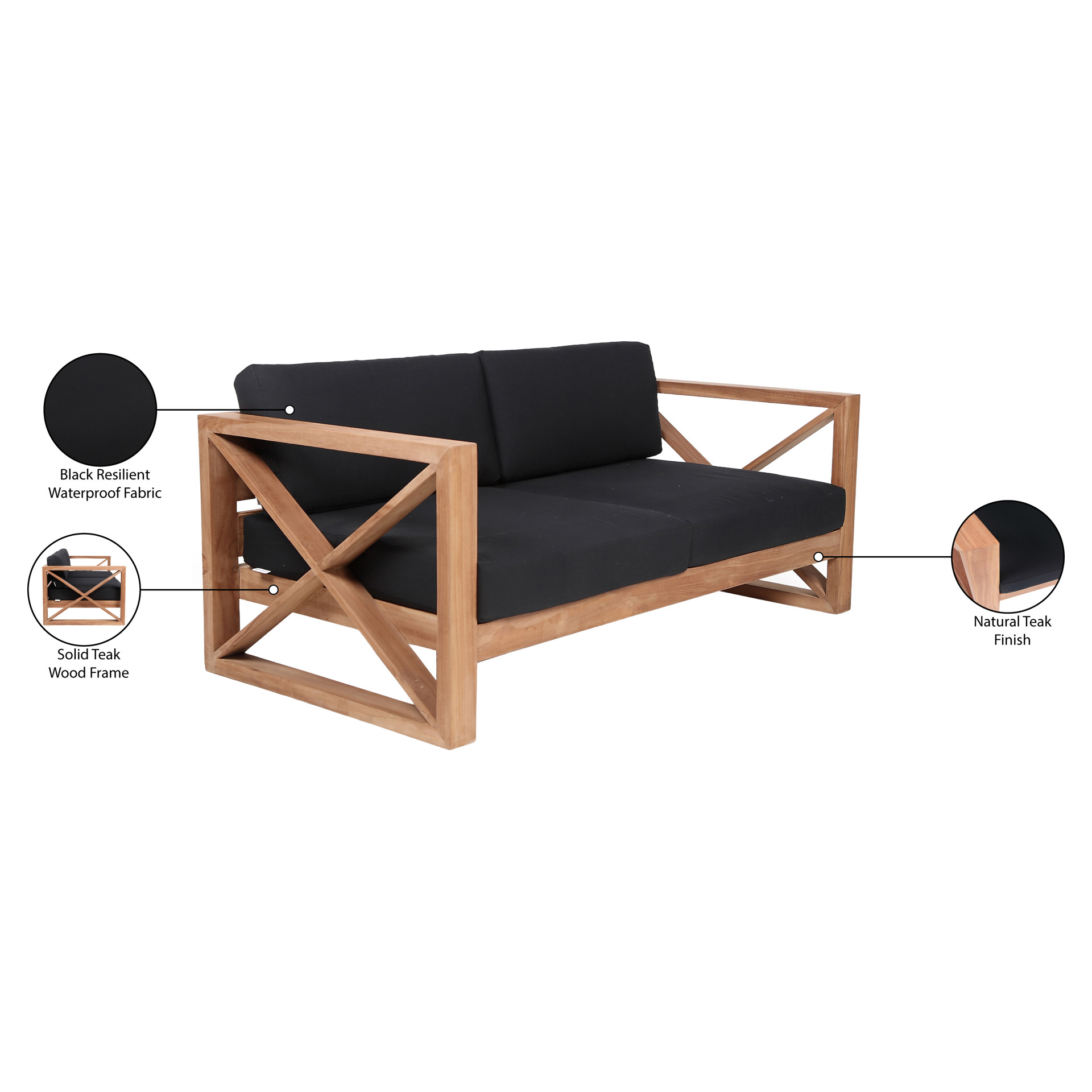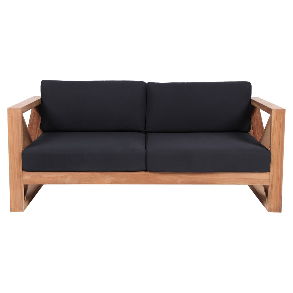 Fabriquée à partir de teck avec une finition naturelle et un tissu noir résistant à l'eau, cette causeuse résiste à la pourriture et aux parasites, de sorte qu'elle résiste facilement à l'extérieur.