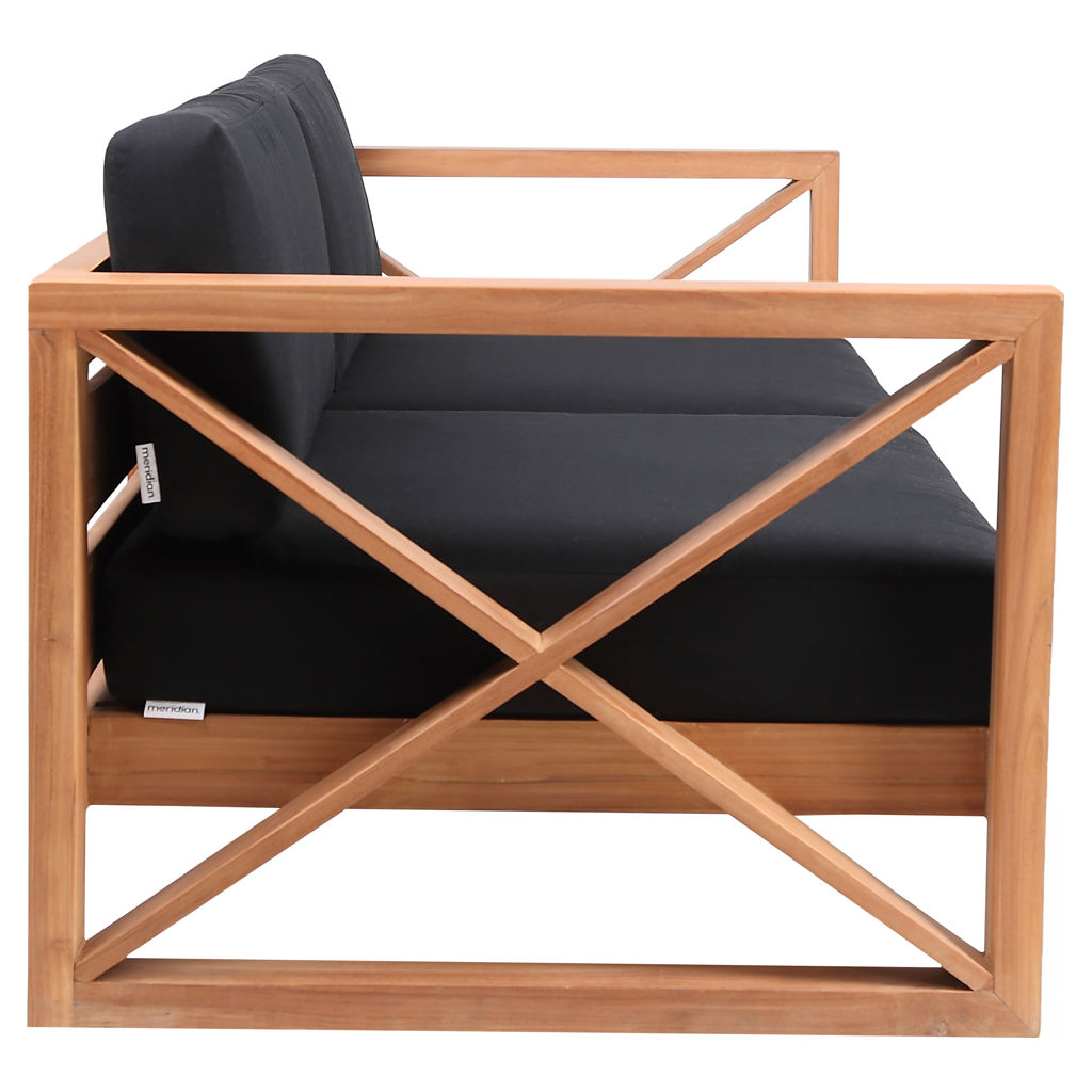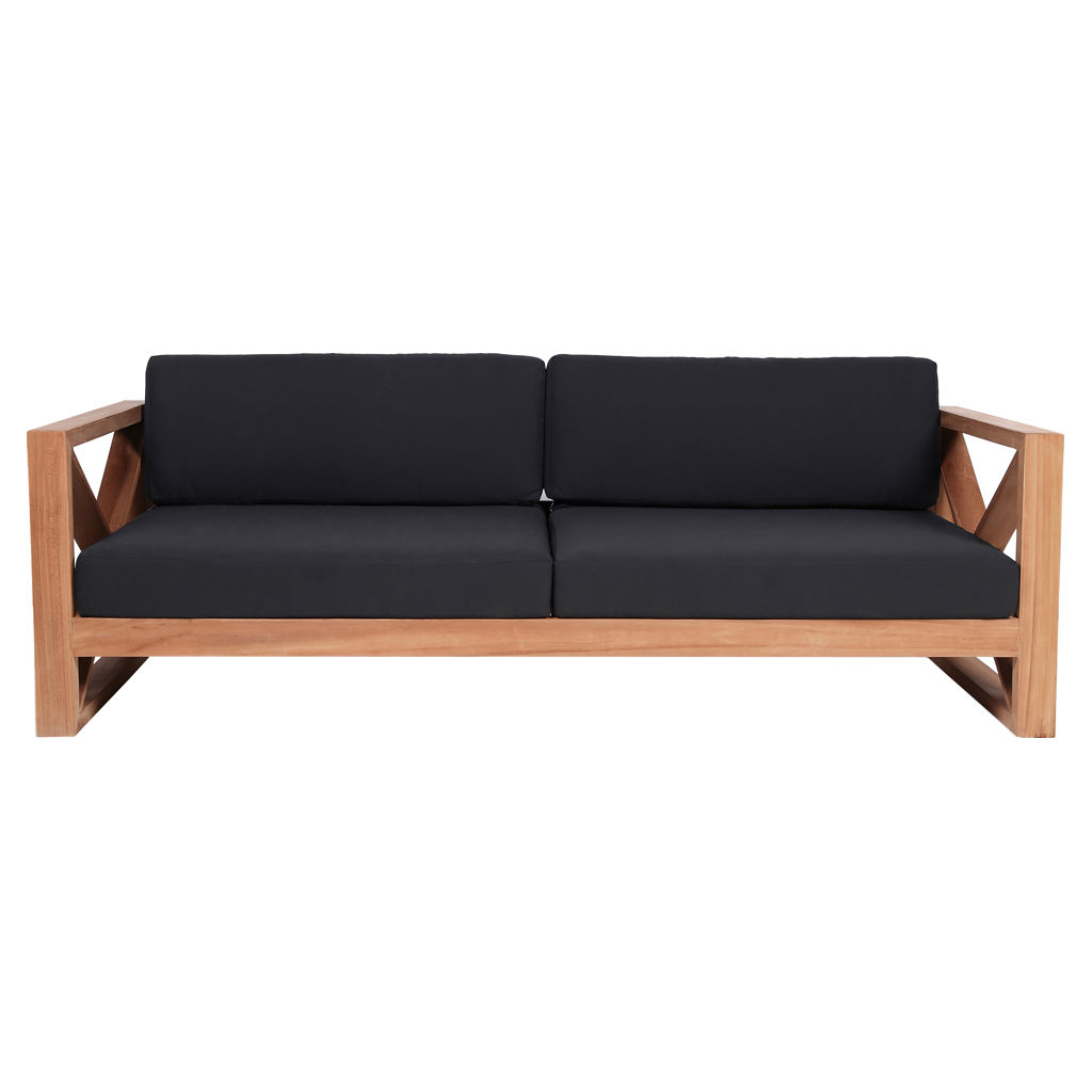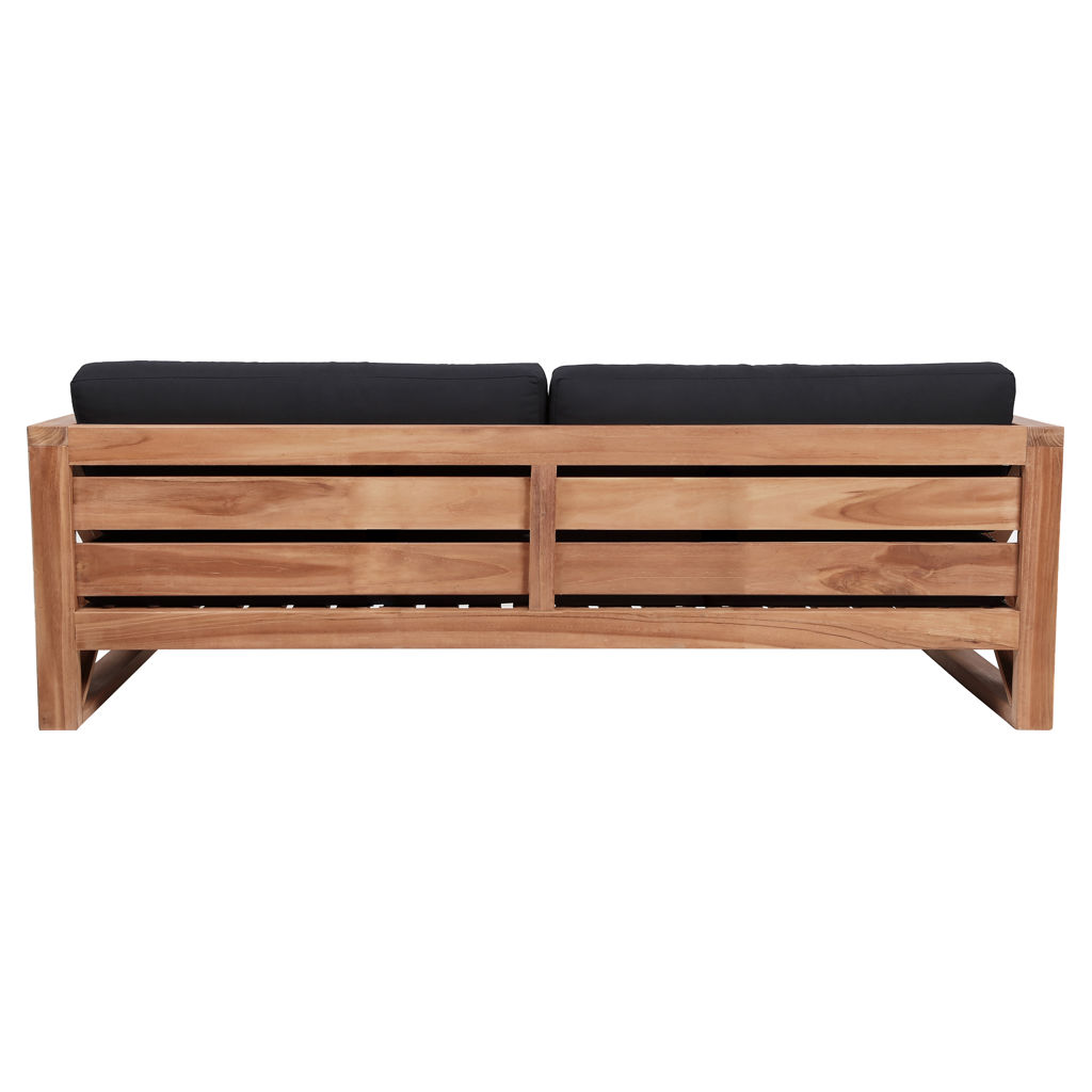 Fabriqué à partir de teck avec une finition naturelle et un tissu noir résistant à l'eau, ce canapé est résistant à la pourriture et aux parasites, ce qui lui permet de résister facilement à l'extérieur.