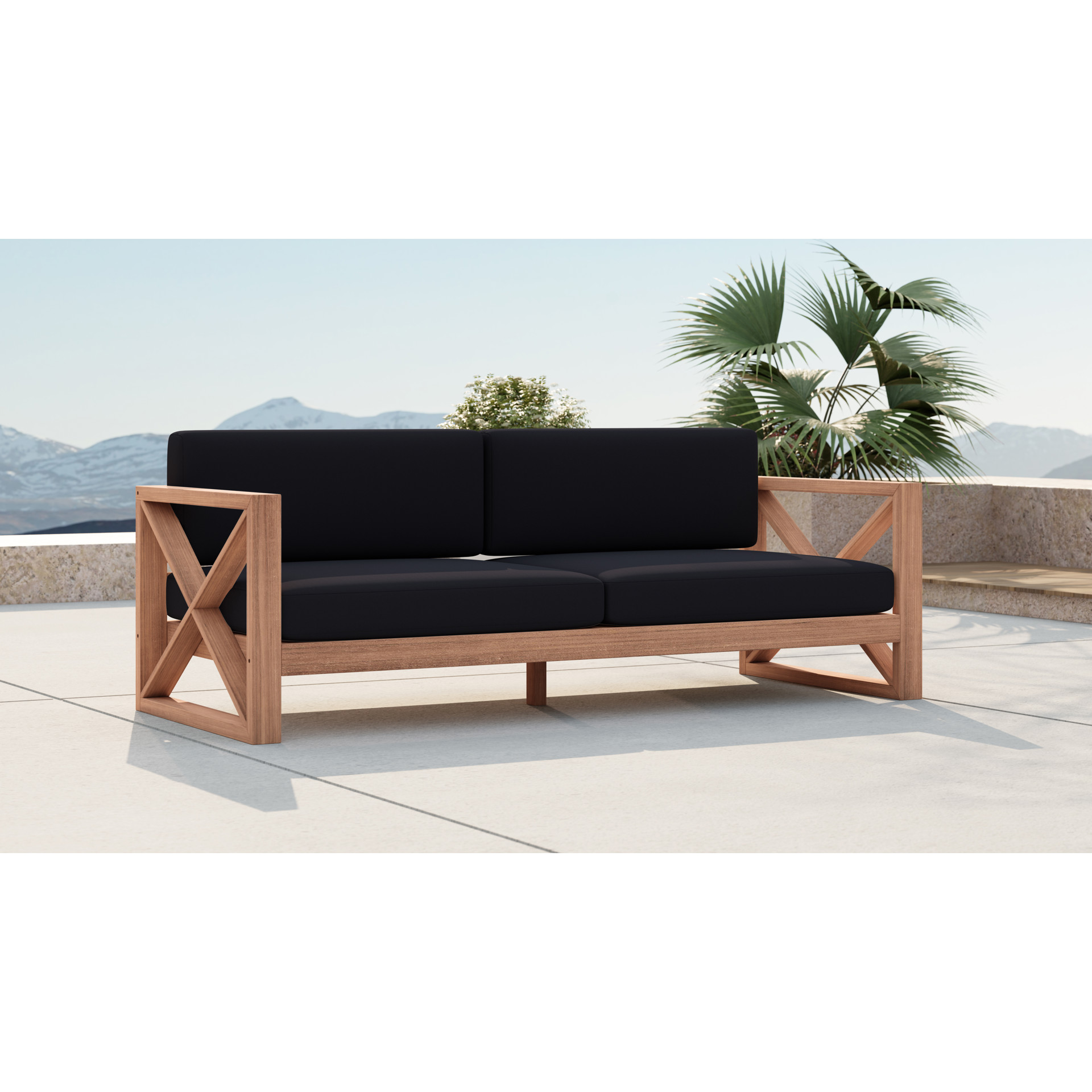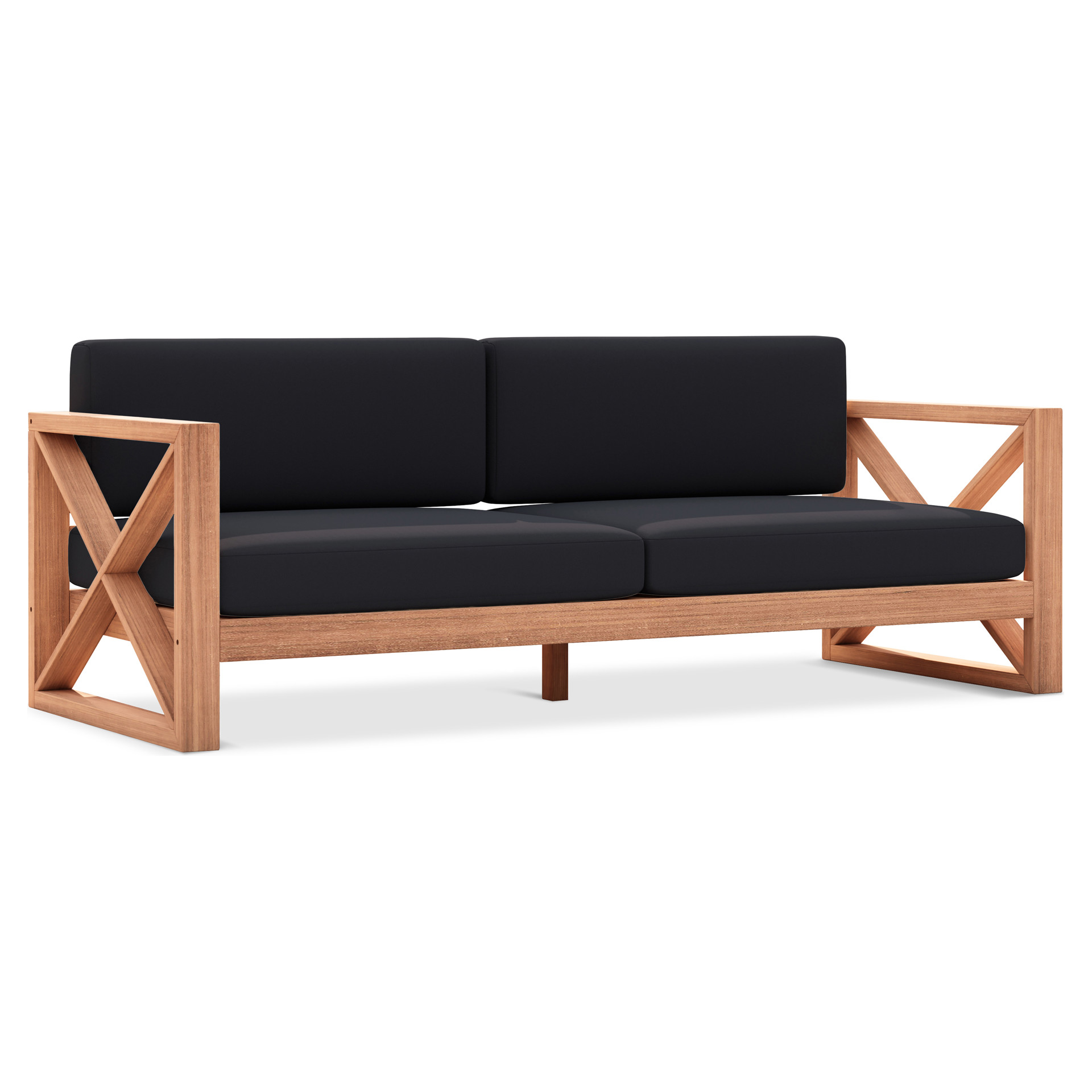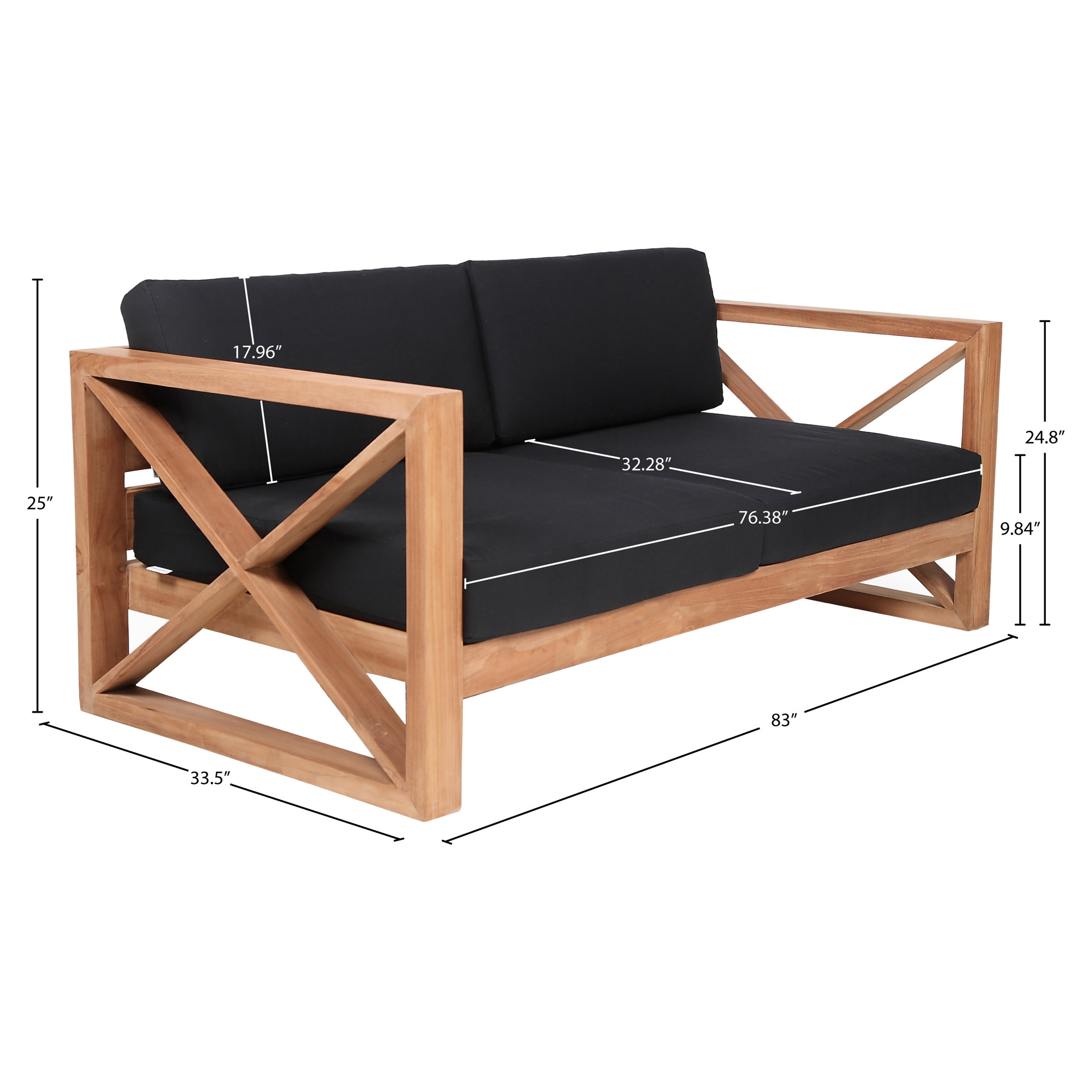 Fabriqué à partir de teck avec une finition naturelle et un tissu noir résistant à l'eau, ce canapé est résistant à la pourriture et aux parasites, ce qui lui permet de résister facilement à l'extérieur.
