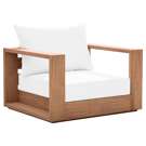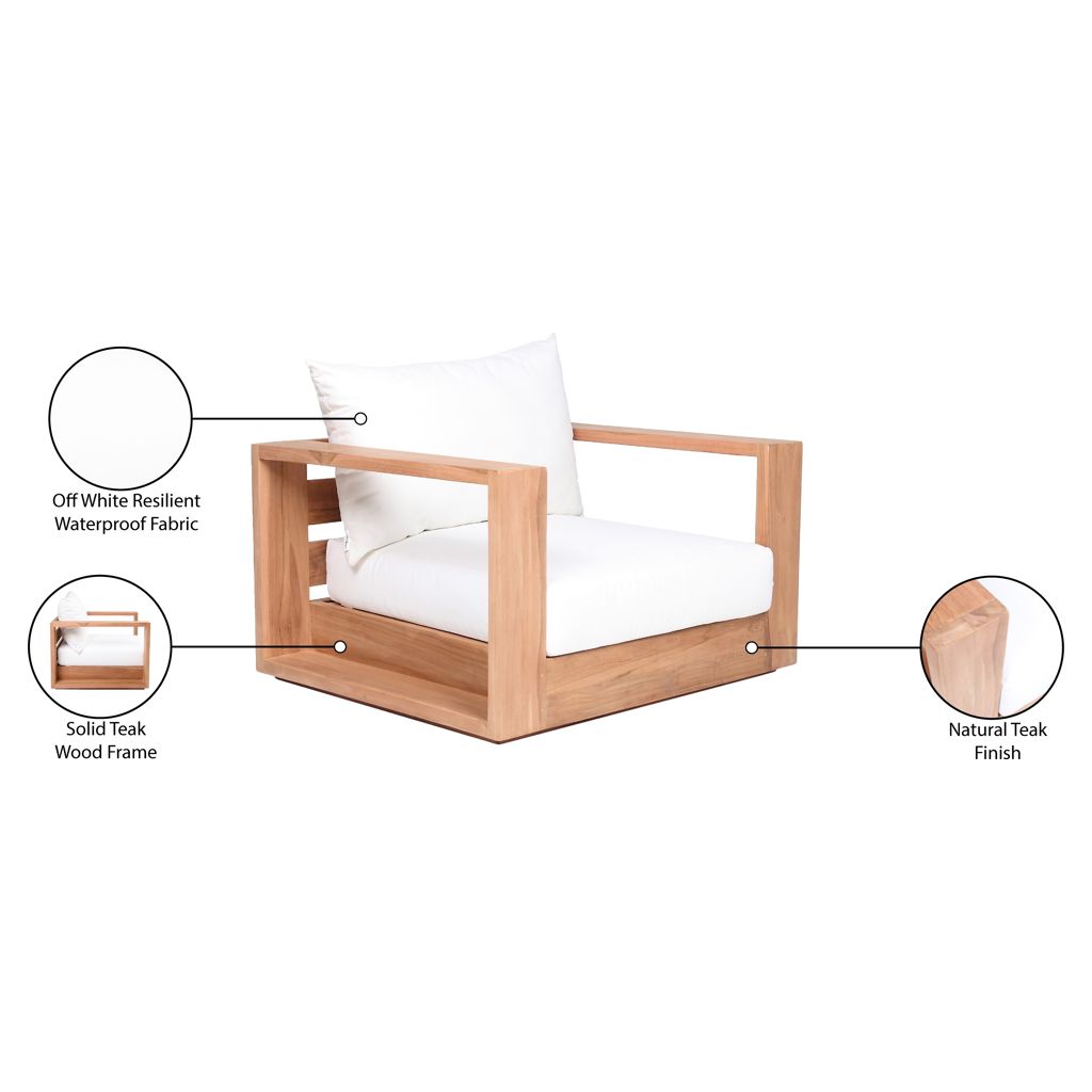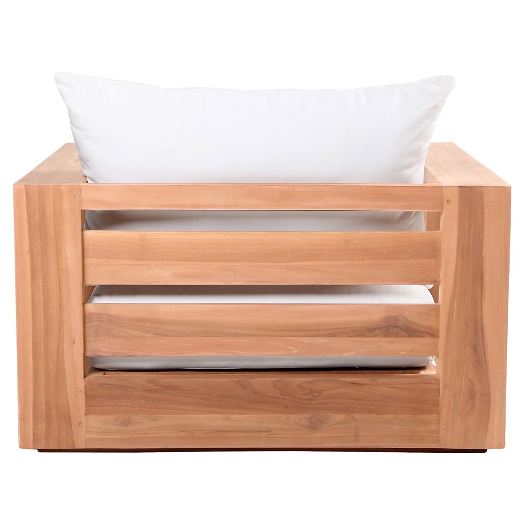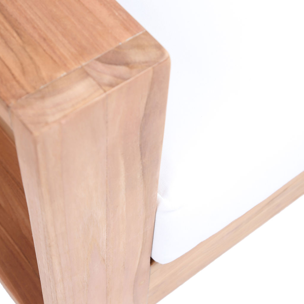 Faites de ce fauteuil de patio d'extérieur en teck Tulum l'endroit idéal pour détendre et divertir vos invités dans votre espace extérieur. Ce fauteuil est doté d'un tissu blanc résistant à l'eau, ce qui en fait l'endroit idéal pour reposer vos pieds et profiter de la compagnie de vos amis ou de votre famille tout en admirant le lever du soleil.