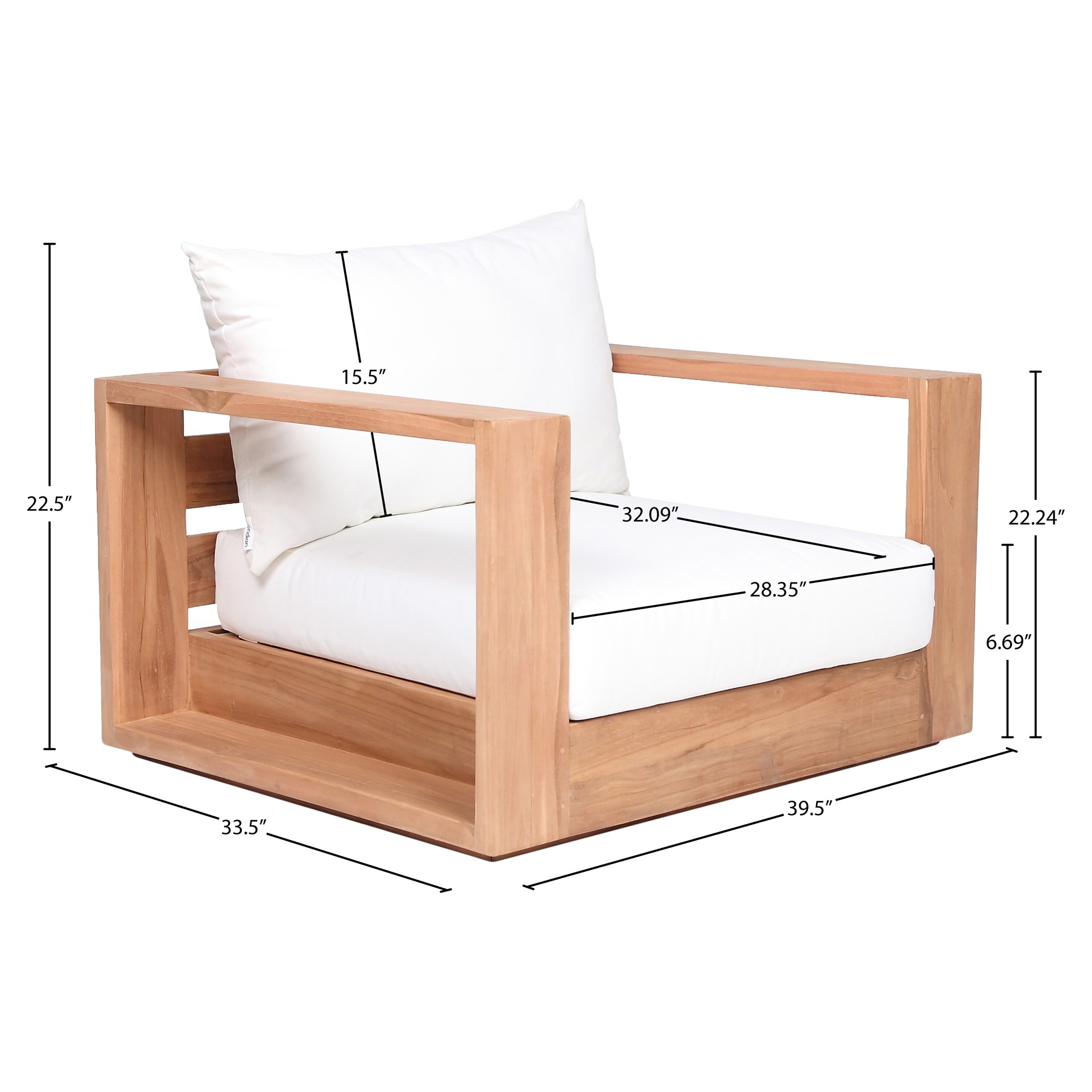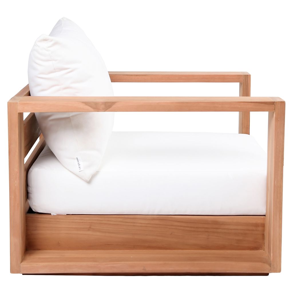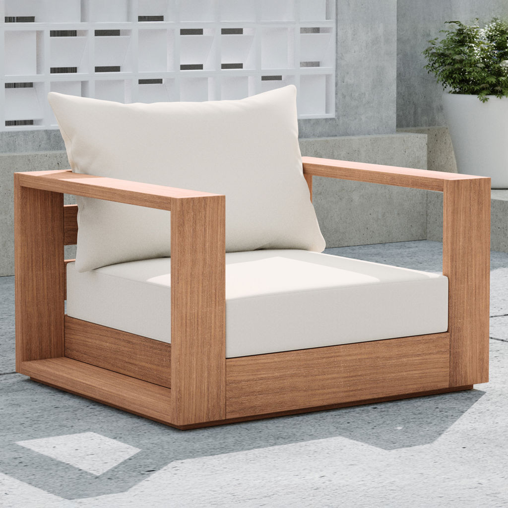 Faites de ce fauteuil de patio d'extérieur en teck Tulum l'endroit idéal pour détendre et divertir vos invités dans votre espace extérieur. Ce fauteuil est doté d'un tissu blanc résistant à l'eau, ce qui en fait l'endroit idéal pour reposer vos pieds et profiter de la compagnie de vos amis ou de votre famille tout en admirant le lever du soleil.