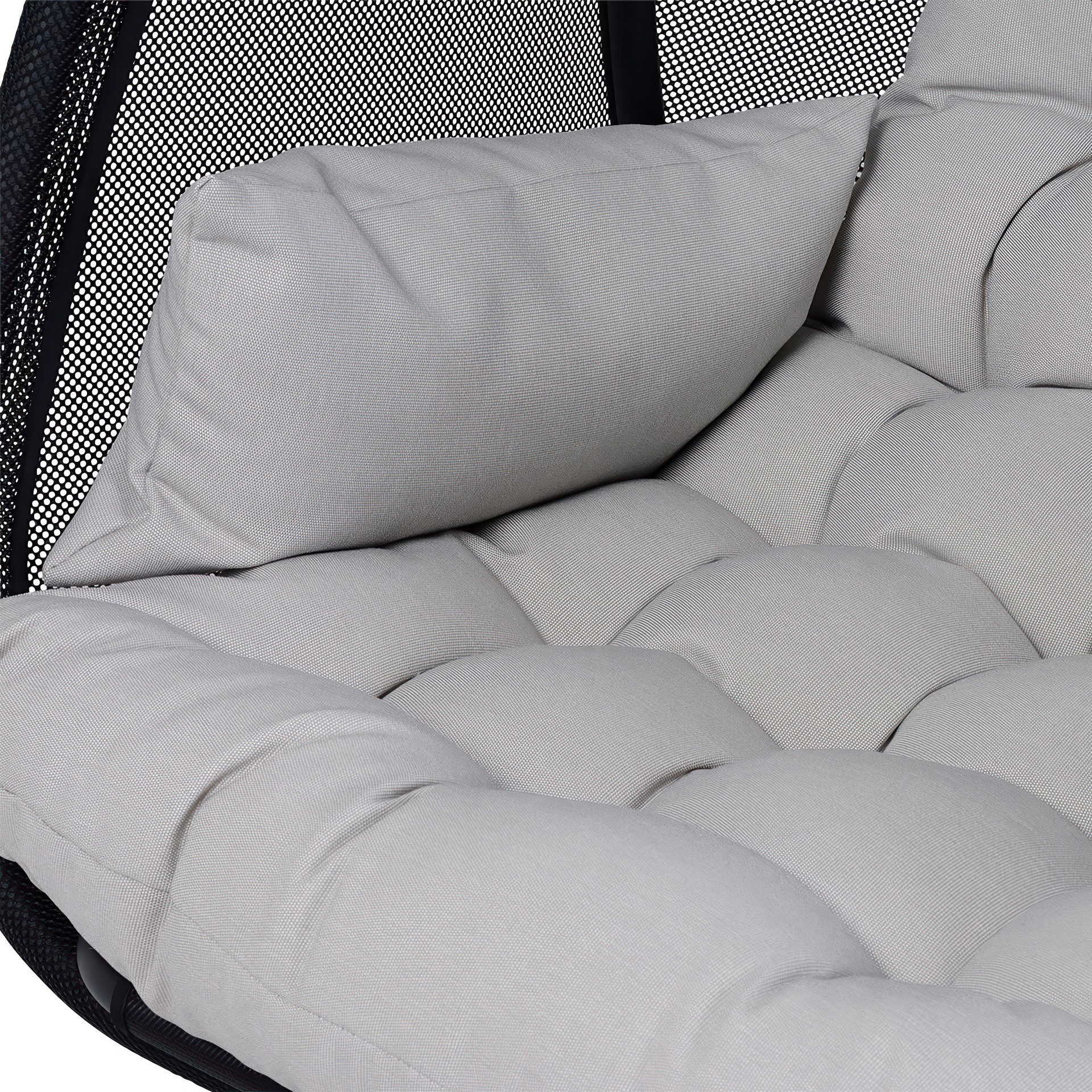 Avec des dimensions généreuses, la chaise mesure 43.3 po x 31.5 po x H 36 po, et lorsqu'elle est installée sur le support, elle occupe un espace de 49.6 po x 40.9 po x H 76.8 po.