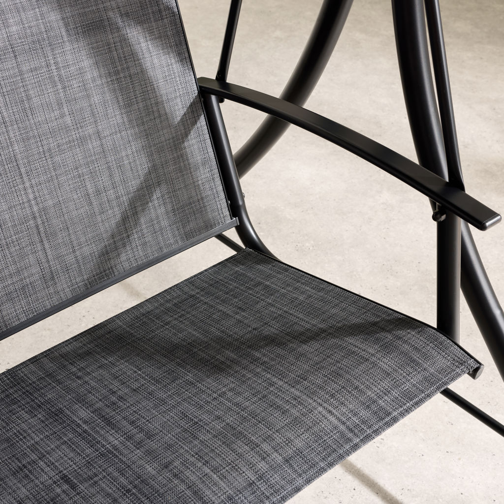 Fabriqué en acier et textilene, cette balançoire 3 places nécessite très peu d'entretien.