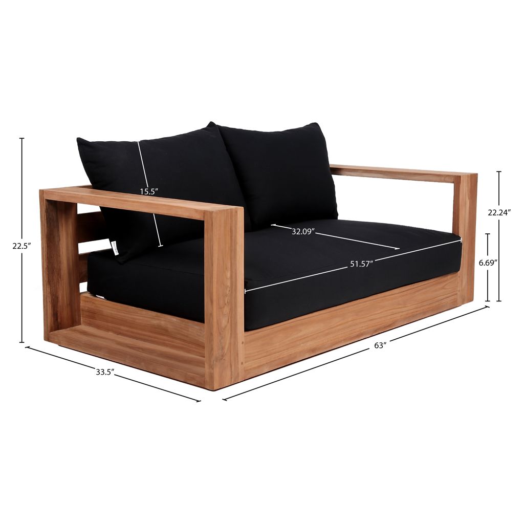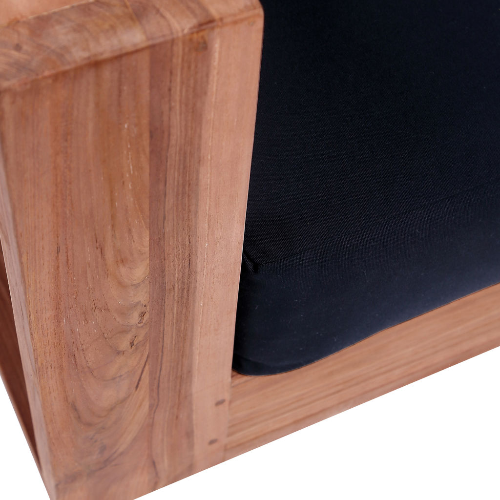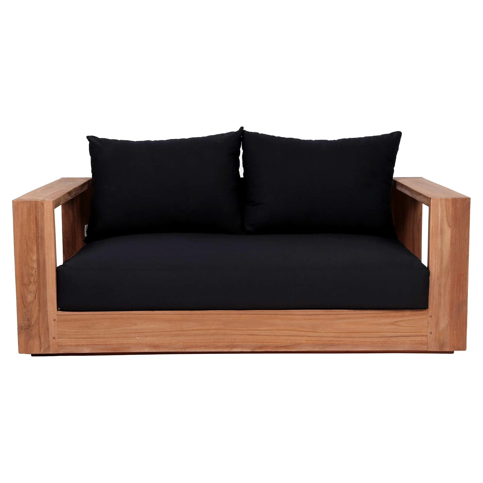 Faites de cette causeuse de patio extérieur en teck Tulum l'endroit idéal pour détendre et divertir vos invités dans votre espace extérieur. Cette causeuse est dotée d'un tissu noir résistant à l'eau, ce qui en fait l'endroit idéal pour reposer vos pieds et profiter de la compagnie de vos amis ou de votre famille tout en admirant le lever du soleil.