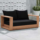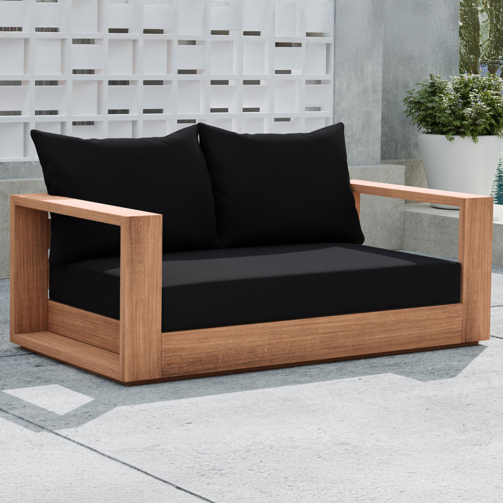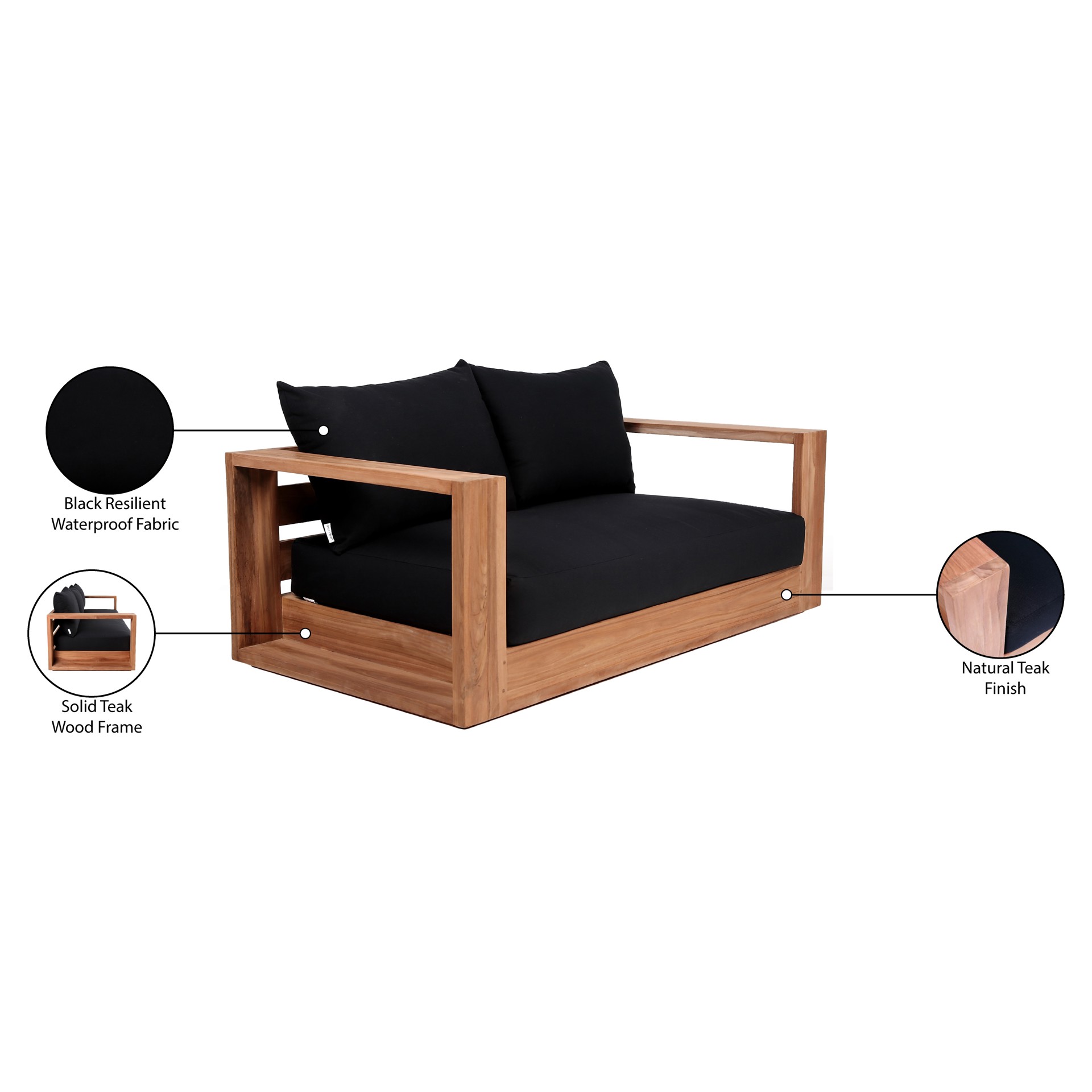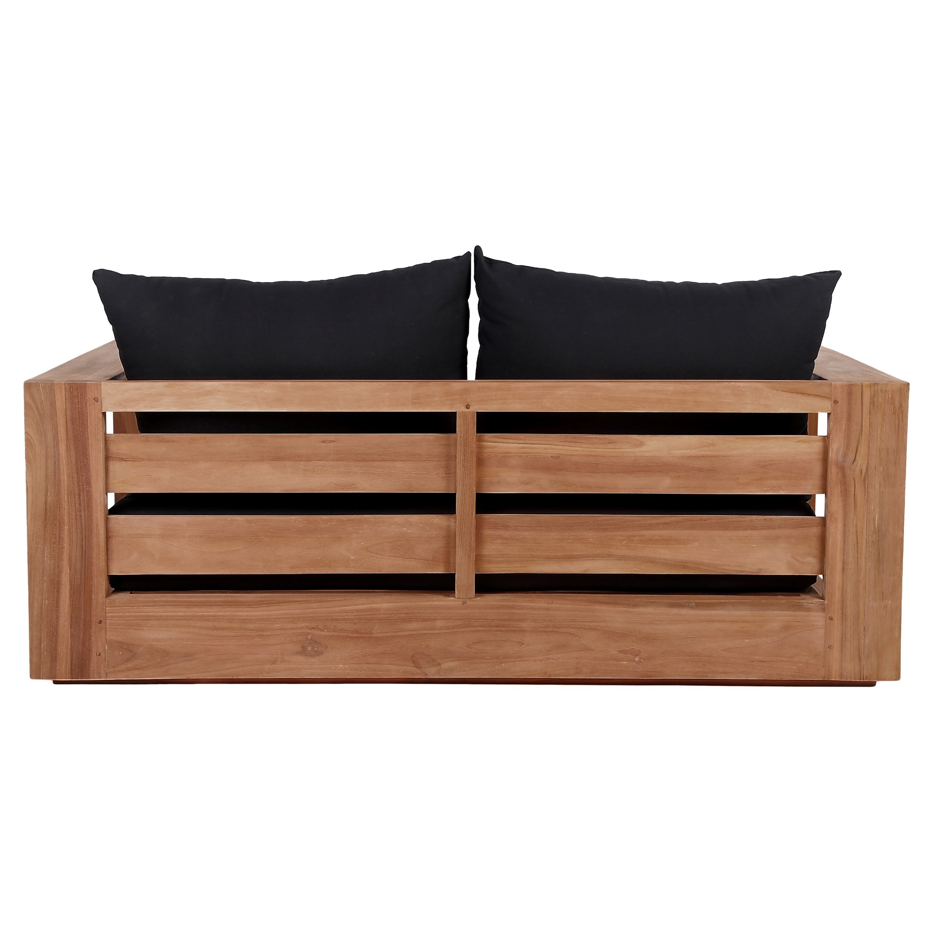 Faites de cette causeuse de patio extérieur en teck Tulum l'endroit idéal pour détendre et divertir vos invités dans votre espace extérieur. Cette causeuse est dotée d'un tissu noir résistant à l'eau, ce qui en fait l'endroit idéal pour reposer vos pieds et profiter de la compagnie de vos amis ou de votre famille tout en admirant le lever du soleil.